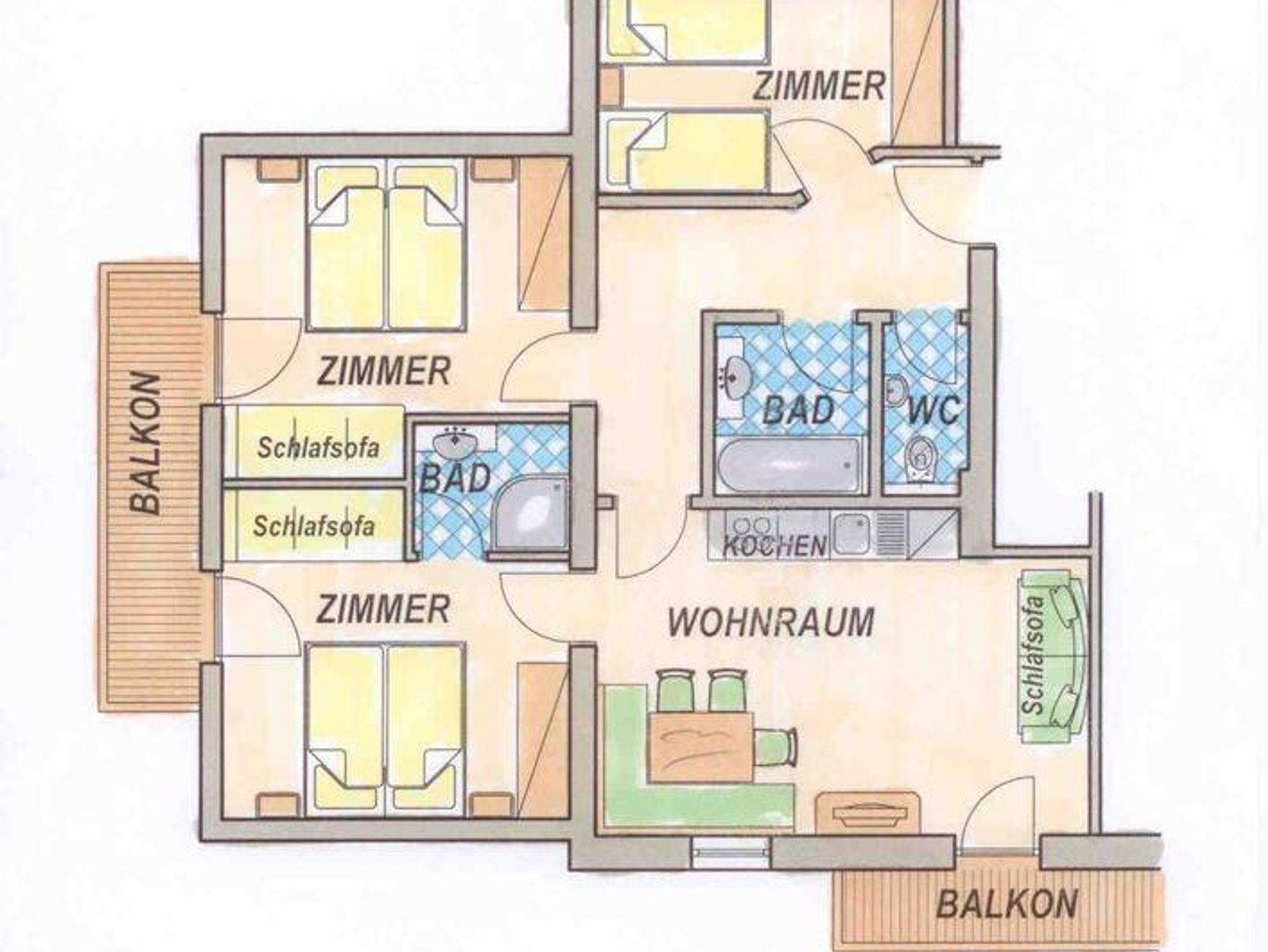 - zwei Schlafzimmer mit Doppelbett, zusätzlichem Schlafsofa und TV,