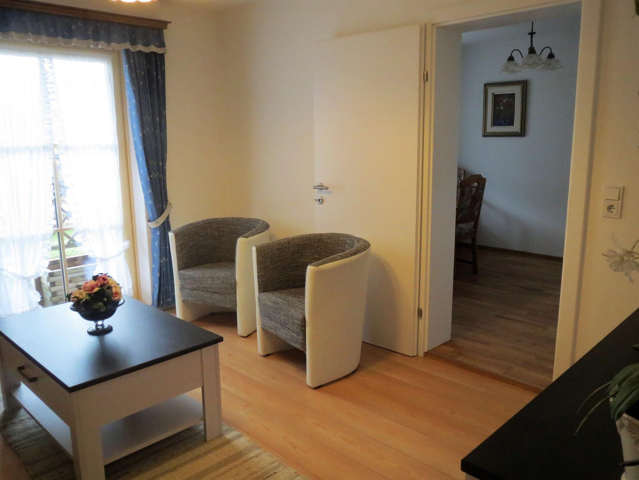 Ferienwohnung mit großer Terrasse, Schlafzimmer, Wohnzimmer, Küche mit Essecke, Geschirr und Wäsche ist genügend vorhanden, Dusche und WC, Föhn, Kosmetikspiegel, WLAN und 2x Flachbildfernseher. Preise ohne Verpflegung!