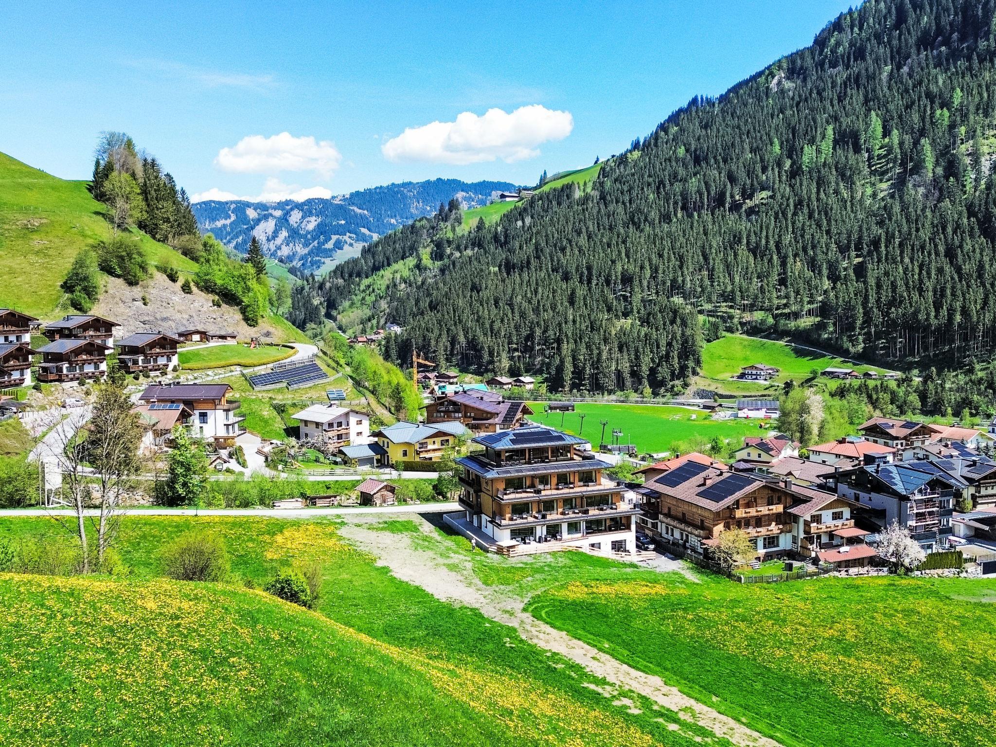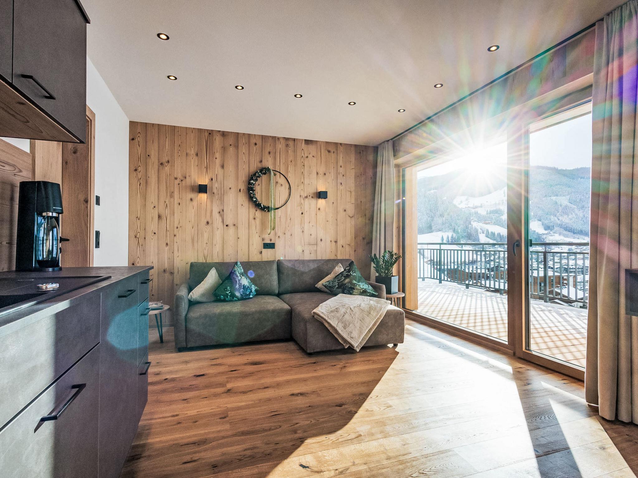 Modern, comfortable apartment block "More Mountain", 3 storeys, built in 2024. 10 apartments in the residence. Above Großarl, on the outskirts, 2 km from the centre of Großarl, directly by the skiing area. For shared use: table tennis. In the house: reception, lounge, WiFi, sauna (all included), infrared sauna, relaxation room, spa area, table tennis, lift, storage room for bicycles, sun terrace, storage room for skis, central heating system, ski boot dryer. Bread roll service. Storeroom available. Parking at the house, communal covered parking. E-charging station. Supermarket 700 m, restaurant 250 m, bicycle rental 350 m, 10 minute walk to the centre, bus stop 250 m, railway station "St. Johann im Pongau" 14 km, outdoor swimming pool 750 m. Golf course (18 hole) 14 km, tennis 800 m, minigolf 1 km, cycle lane 300 m, gondola lift 250 m, ski rental 350 m, ski bus stop, ski school 250 m, children's playground 1 km. Nearby attractions: Rucki Zucki Gaudi Alm Freizeitpark 1 km, Liechtensteinklamm 16 km, Eisriesenwelt Werfen 35 km, Krimmler Wasserfälle 100 km, Bad Gastein 49 km. Well-known ski regions can easily be reached: Skischaukel Großarltal-Dorfgastein 230 m, Panoramabahn Großarltal 650 m. Well-known lakes can easily be reached: Zeller See / Zell am See 50 km. Hiking paths: Tal der Almen Wanderwelt 7 km. Please note: In case of good snow conditions, the house is accessible on skis.