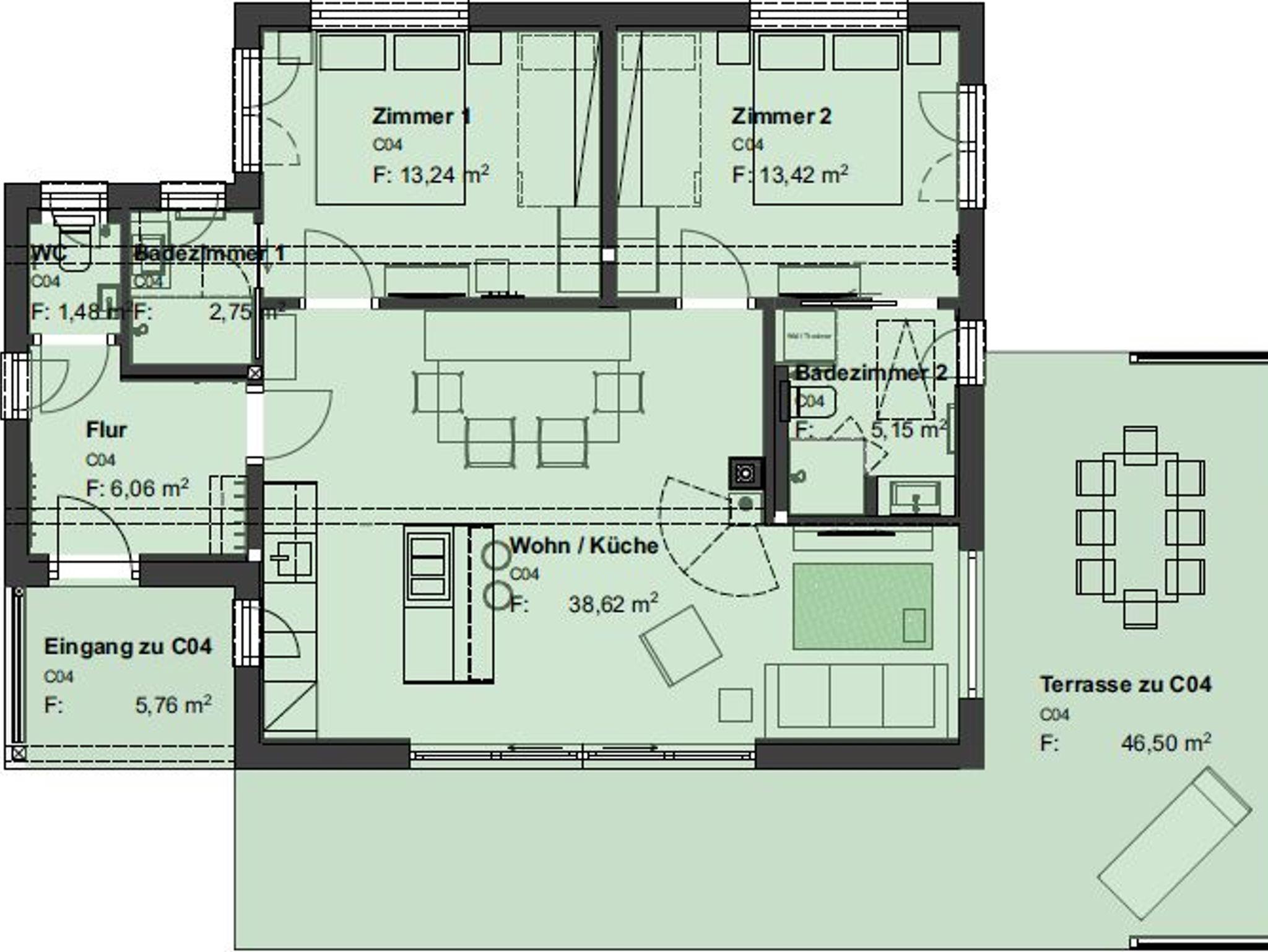 • 46 m² Sonnenterrasse mit Terrassenmöbel