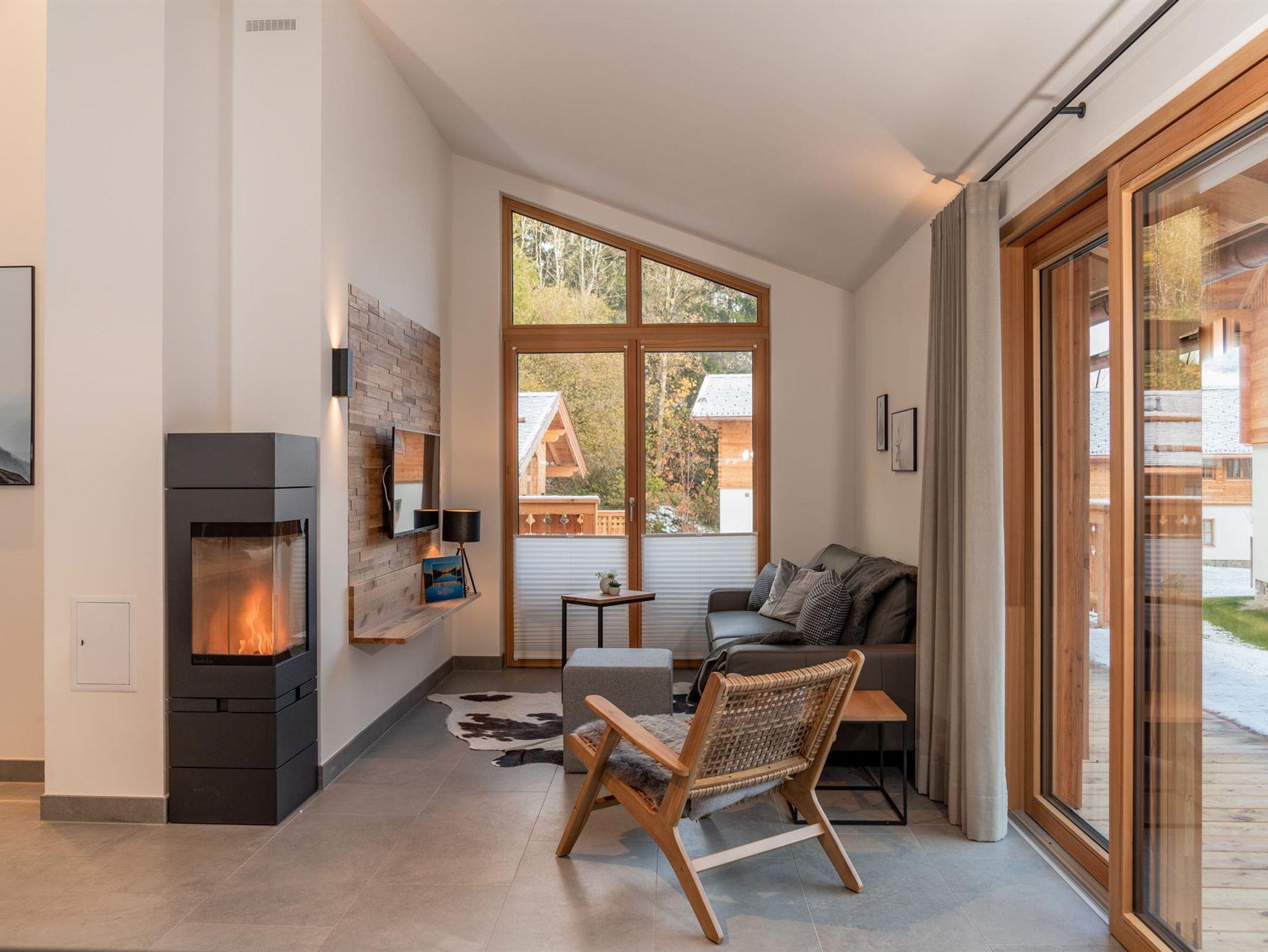 • Offener Kamin/Effektfeuer in vielen Chalets
