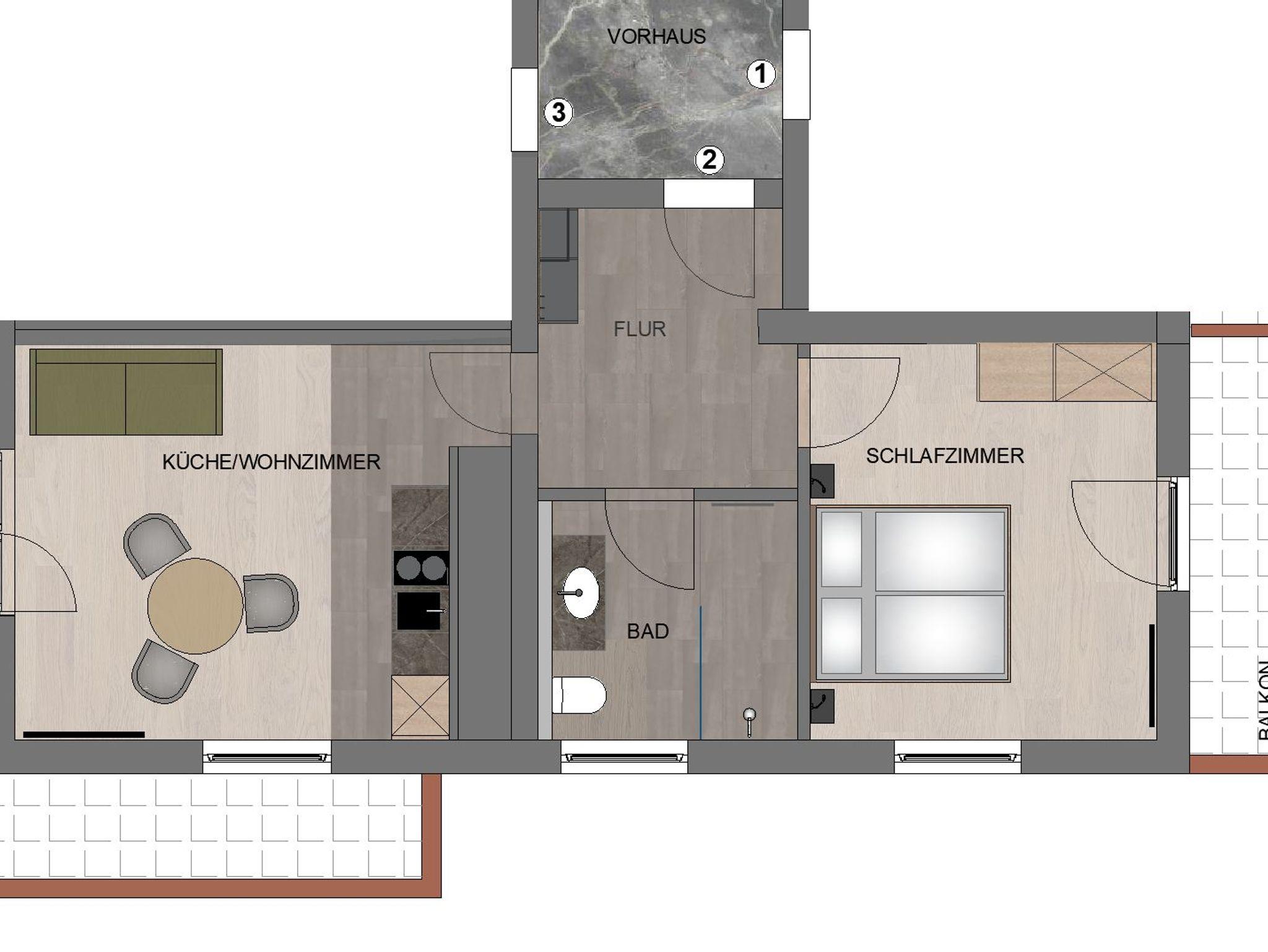 HAUSZEIT APPARTEMENTS, APPARTEMENT 2 - 1 Schlafraum, Dusche, WC