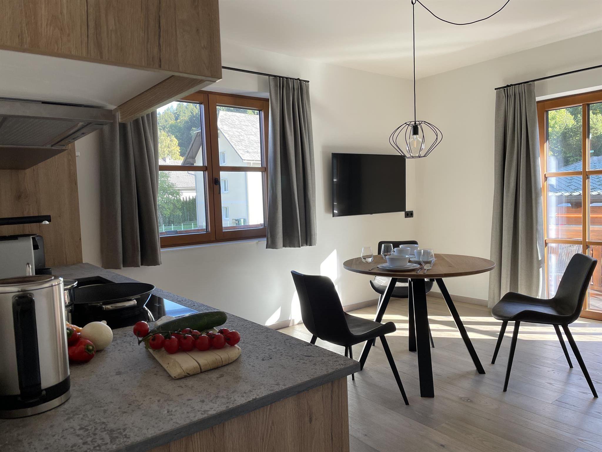 Wir kombinieren hochwertige moderne Ausstattung mit ländlichem Charme. Unsere Appartements von 29m² bis 51m² verfügen jeweils über einen Schlafraum, einen separaten Wohnraum mit vollausgestatteter Küche, ein geräumiges Bad und einen großzügigen Balkon mit Sitzmöglichkeit.