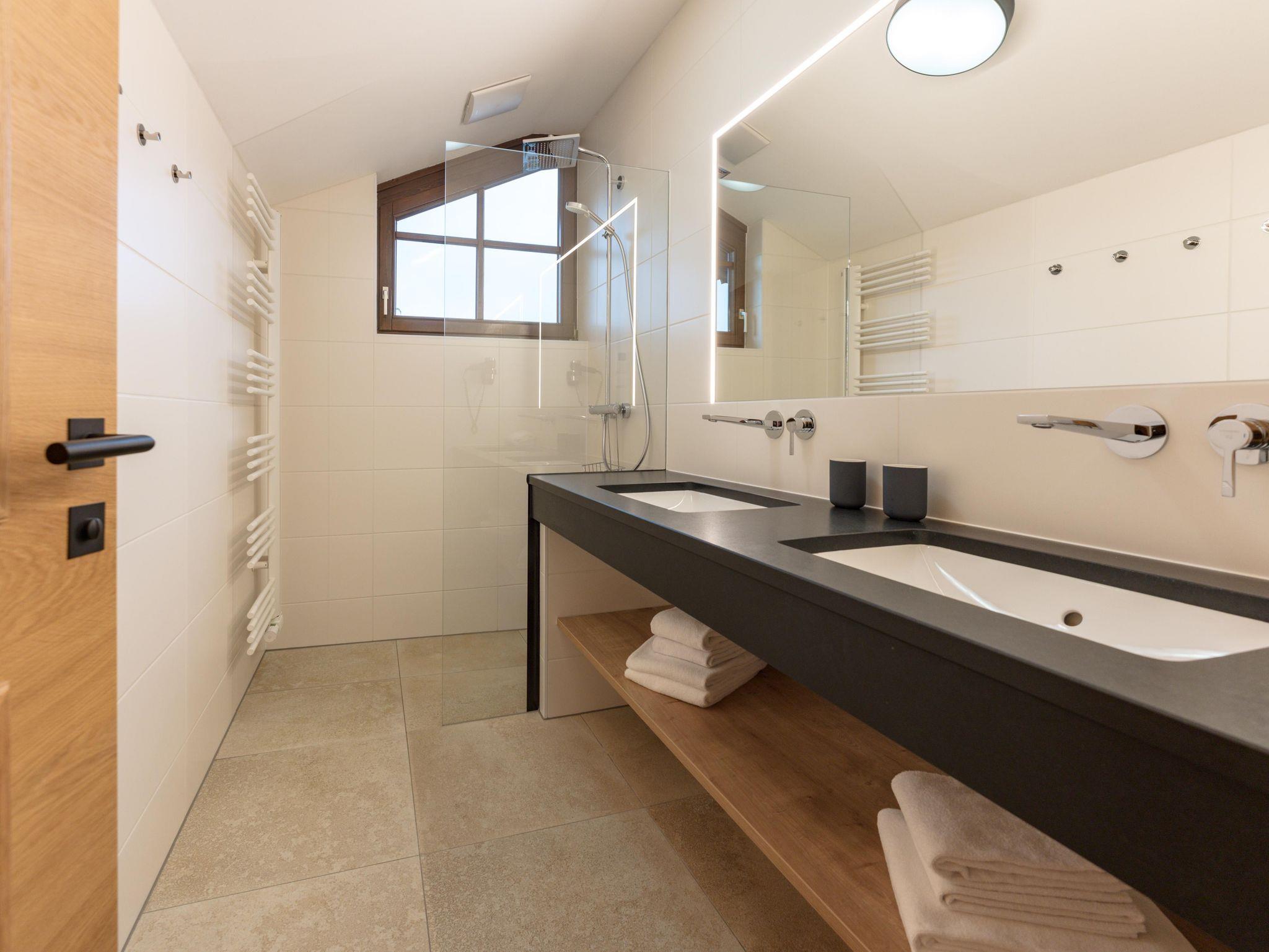 - 1 Bad mit Dusche, Doppelwaschtisch und Fön