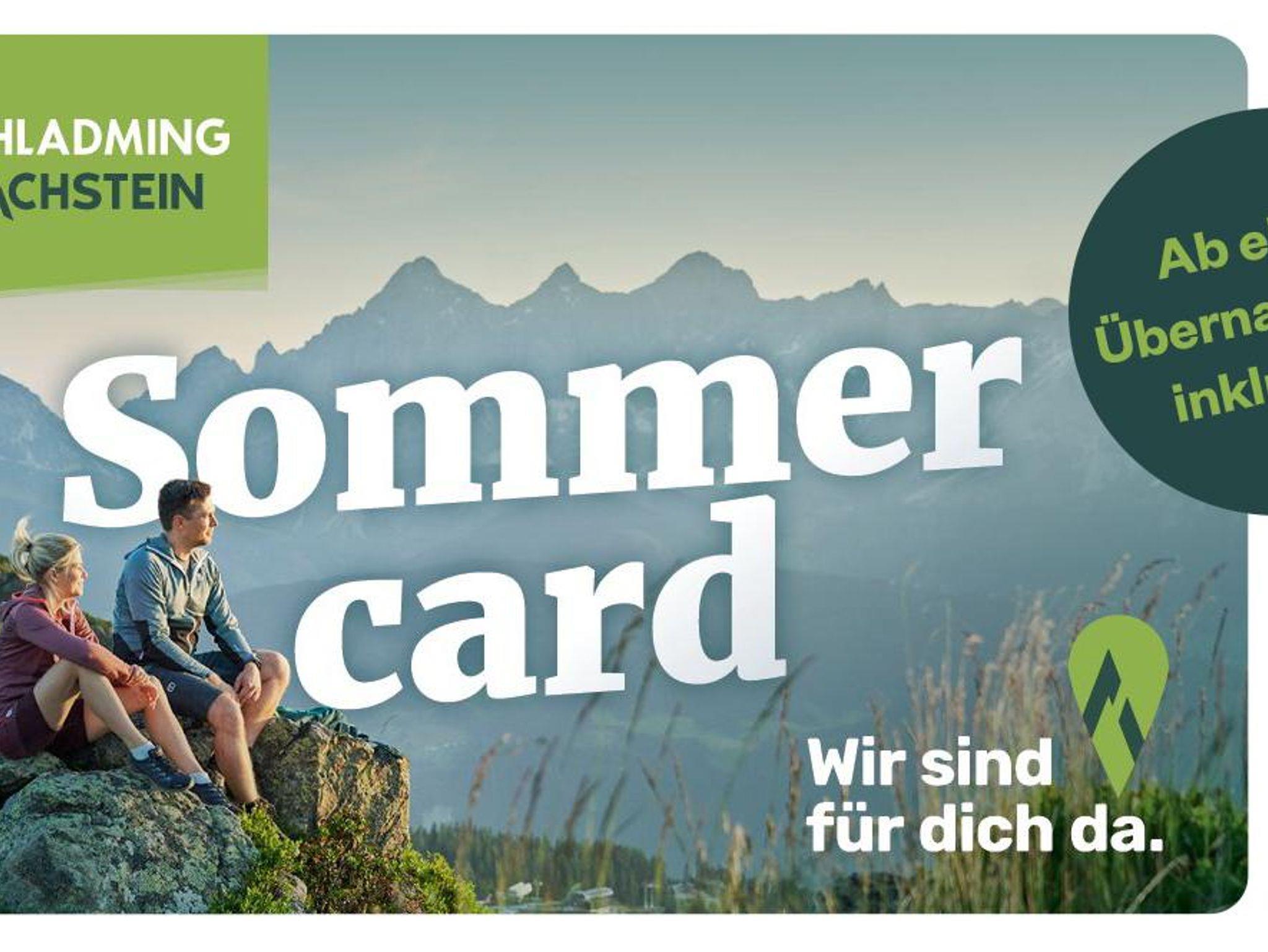 Inklusive ist die Schladming-Dachstein Sommercard mit über 100 gratis Freizeitleistungen wie freie Fahrt mit den Bergbahnen, freier Eintritt in fast alle Freizeiteinrichtung uvm., und unsere Bonuscard mit vielen Vorteilen und Boni in regionalen Shops, Restaurants, Bike Rental Discounts, Skiverleih uvm.