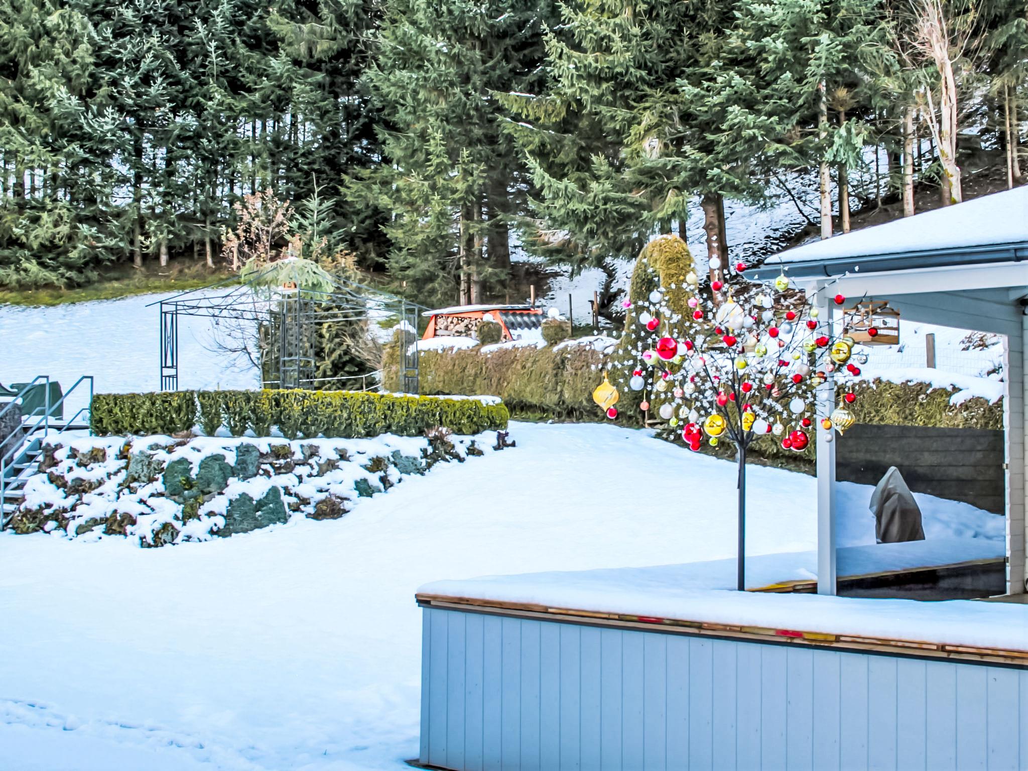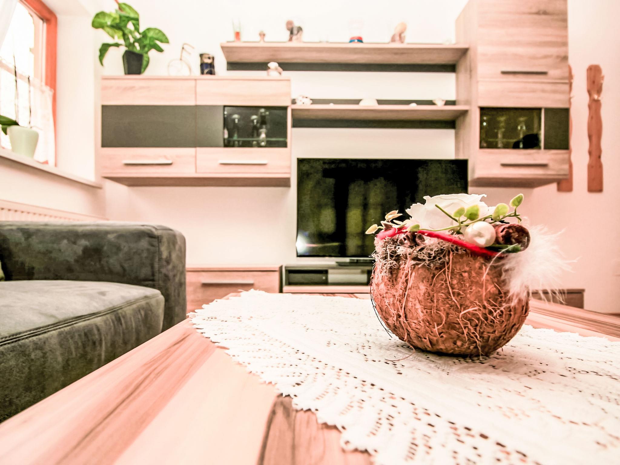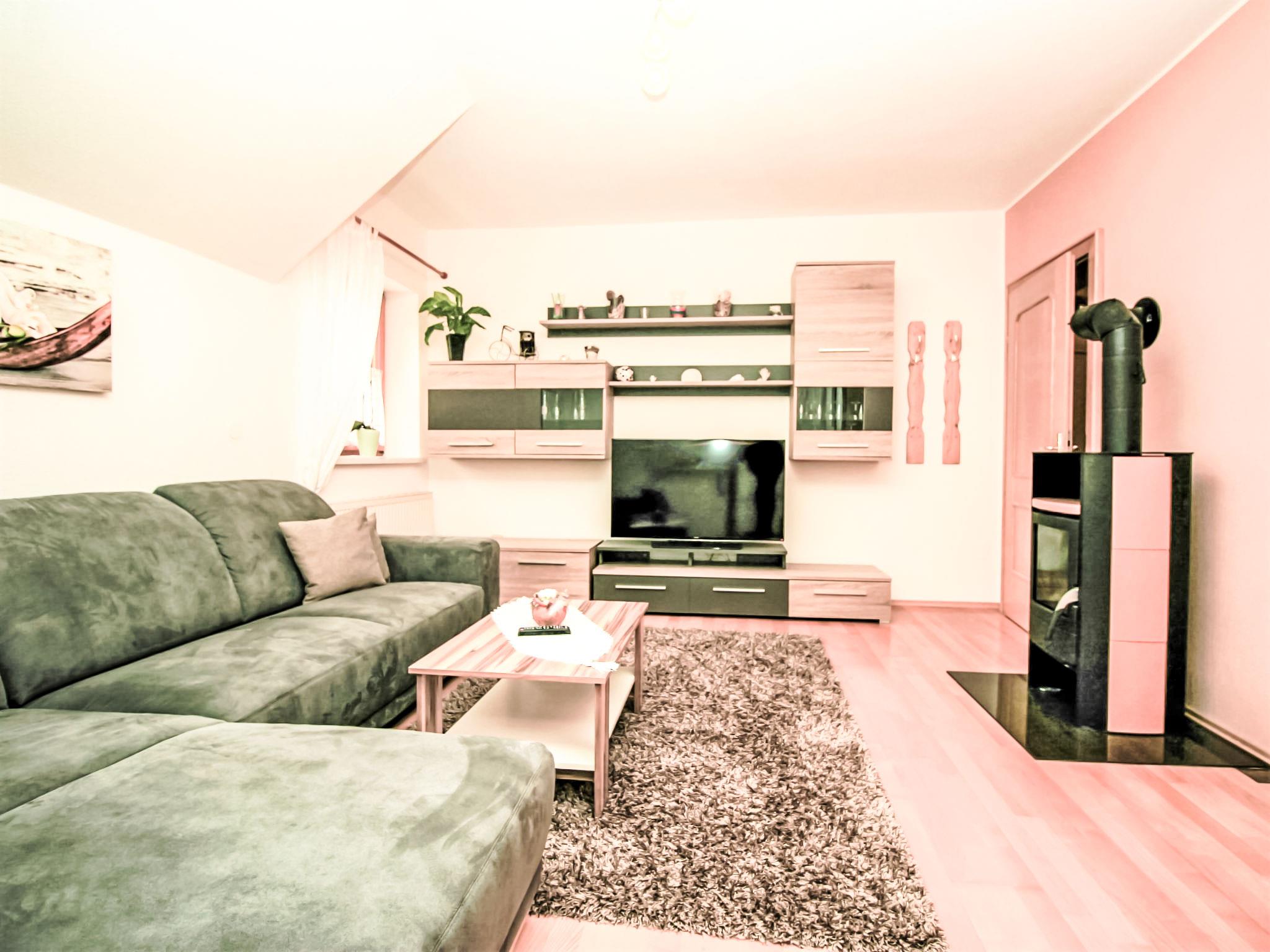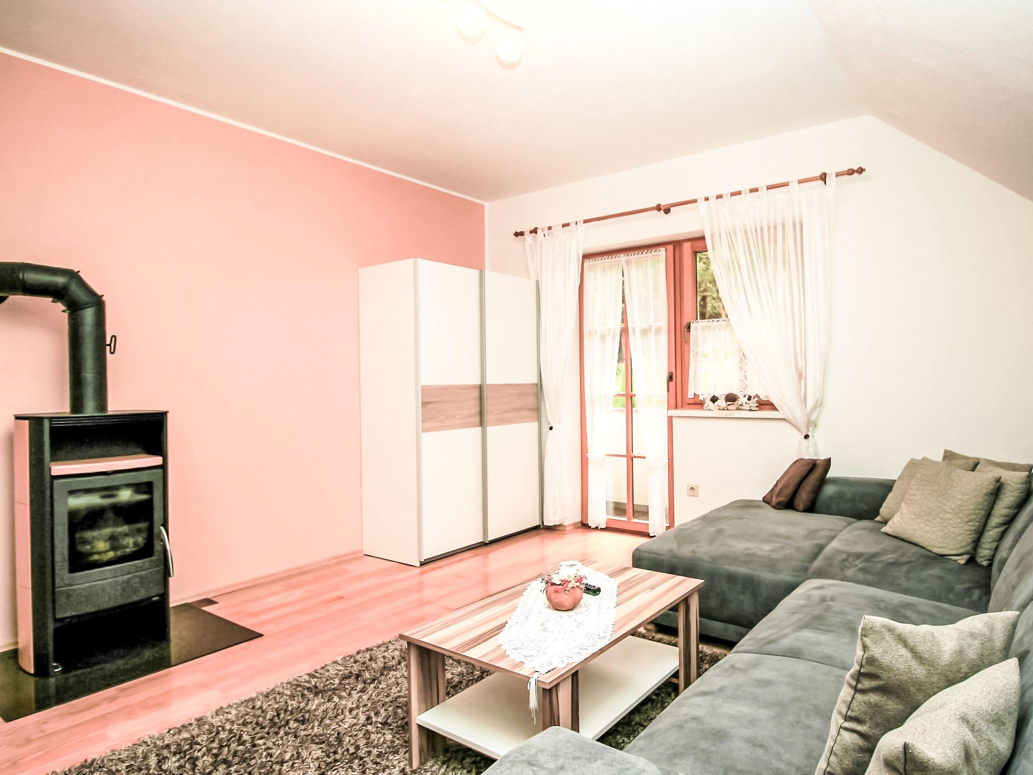 3-room apartment 60 m2 on 1st floor. Comfortable and tasteful furnishings: entrance hall. Large living room with Scandinavian wood stove and satellite TV. 1 double bedroom with shower/WC. Kitchen-/living room (oven, dishwasher, 4 ceramic glass hob hotplates, freezer, electric coffee machine, combination microwave) with dining table, radio. On the lower ground floor: 25 m2, Studio with 1 double bed, shower/WC and satellite TV. 2 balconies, patio, porch. Balcony furniture, barbecue, deck chairs. View of the mountains and the resort. Facilities: hair dryer. Internet (WiFi, free). Please note: one double bedroom is outside the apartment. Non-smoking house. Smoke alarm. The very well-kept garden is equipped with a covered pavilion, a cozy garden house with heating and a covered terrace, as well as a garden grill. Relaxing and unwinding included! SUMMER CARD included! Maximum occupancy 4 people.