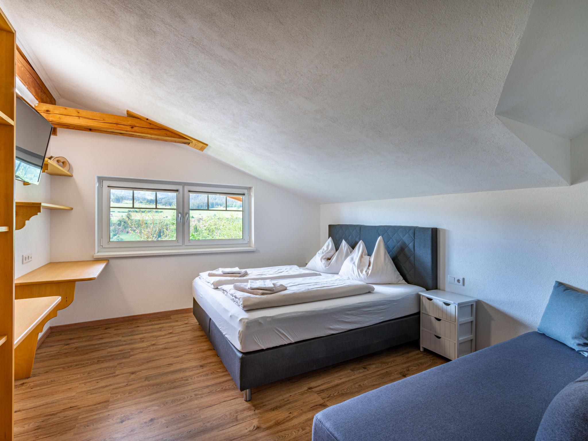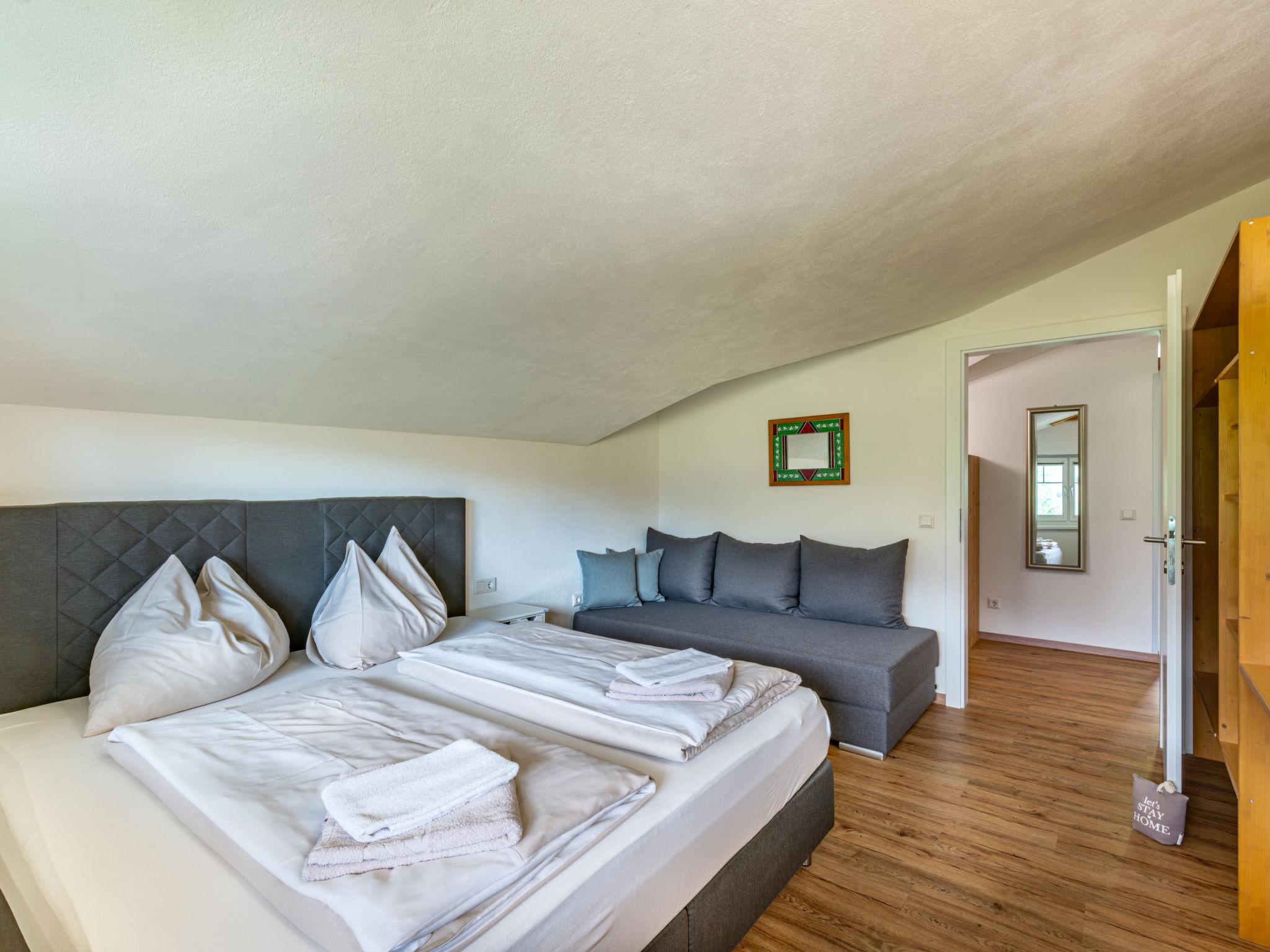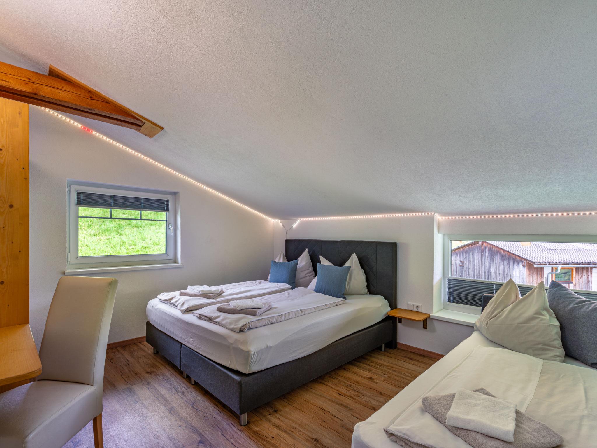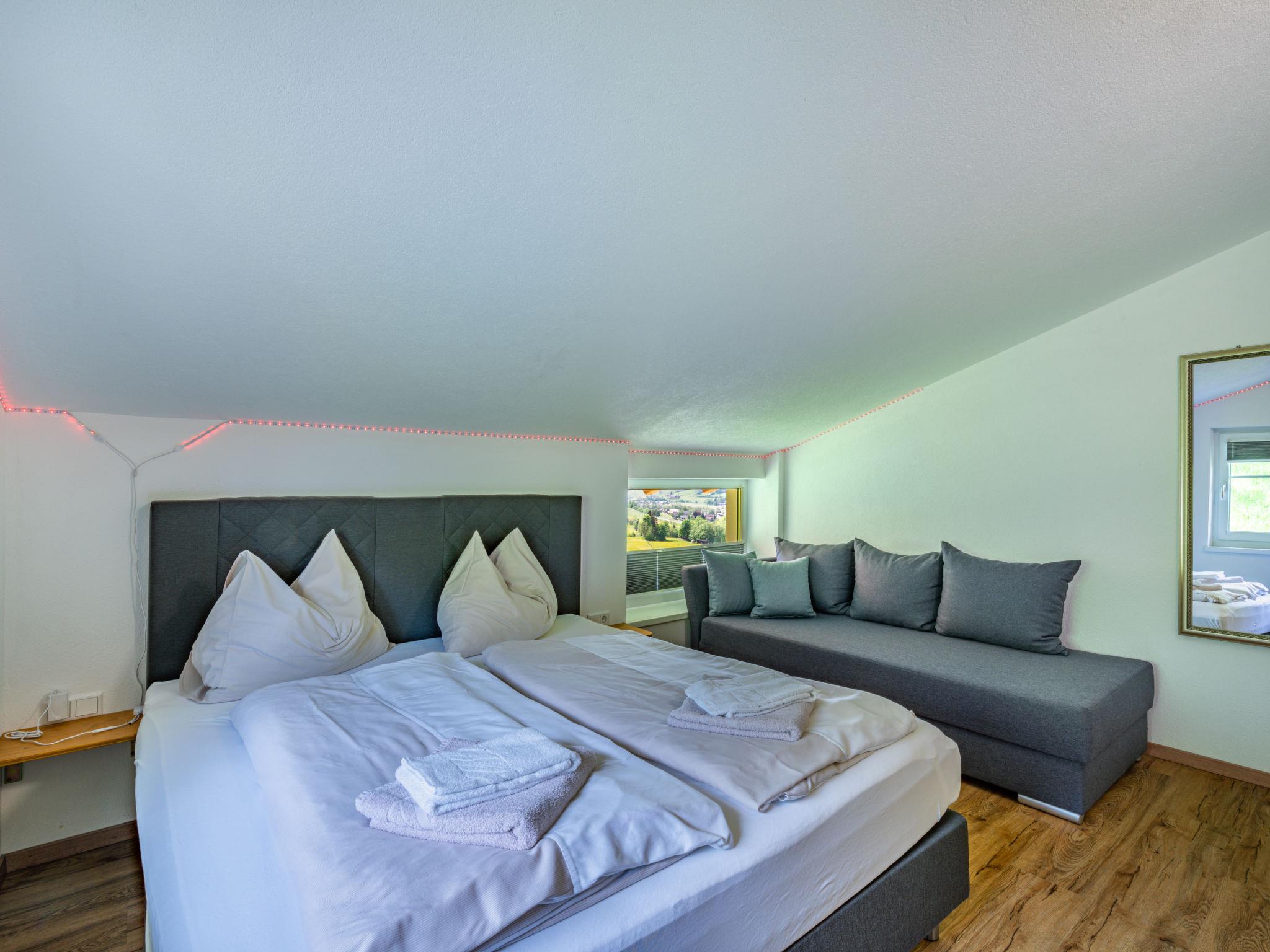 "Mawa", 3-room apartment 106 m2, on the top floor. Object suitable for 6 adults + 2 children. Partly with sloping ceilings, cosy furnishings: living/sleeping room with 1 double sofabed, dining table, satellite TV and international TV channels (flat screen). 2 rooms, each room with 1 sofabed, 1 double bed, satellite TV and international TV channels (flat screen). Open kitchen (oven, dishwasher, 4 ceramic glass hob hotplates, toaster, kettle, electric coffee machine). Shower, sep. WC, double hand-basin. Heating. Parquet floors. Beautiful panoramic view of the mountains and the valley. Facilities: Internet (WiFi, free). Please note: non-smokers only. Note: Access via external spiral staircase or internal entrance. The hot tub is only available during the summer months between May 1st and October 31st and remains closed during the winter.