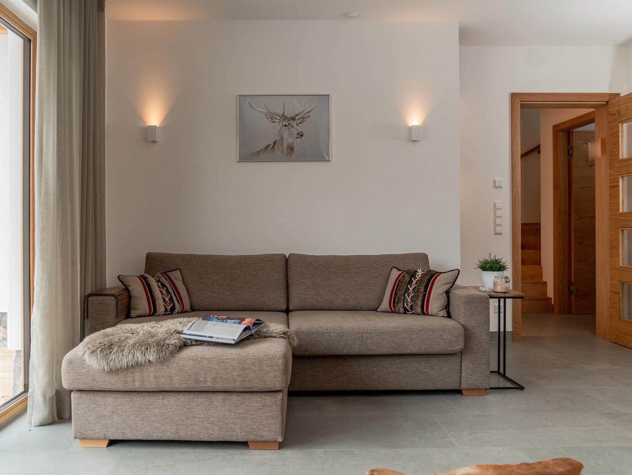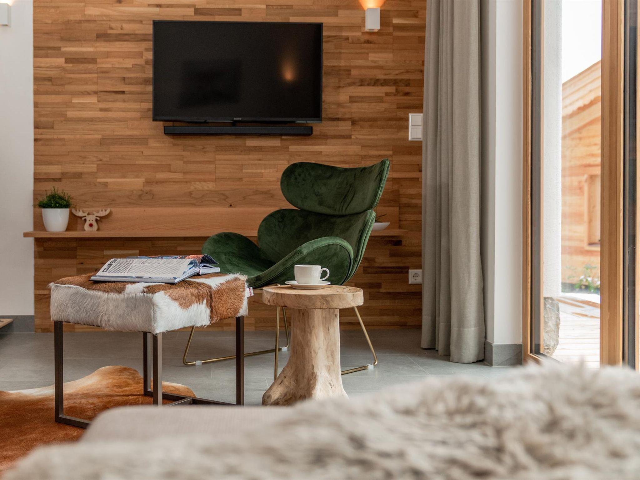 Alle Chalets sind nach SÜDEN ausgerichtet und tauchen dadurch in warmes Tageslicht ein. Die großzügigen Glasfronten und die luftigen Raumhöhen bis zu 5m verbinden alpin-moderne Interieur mit modernster Technologie.