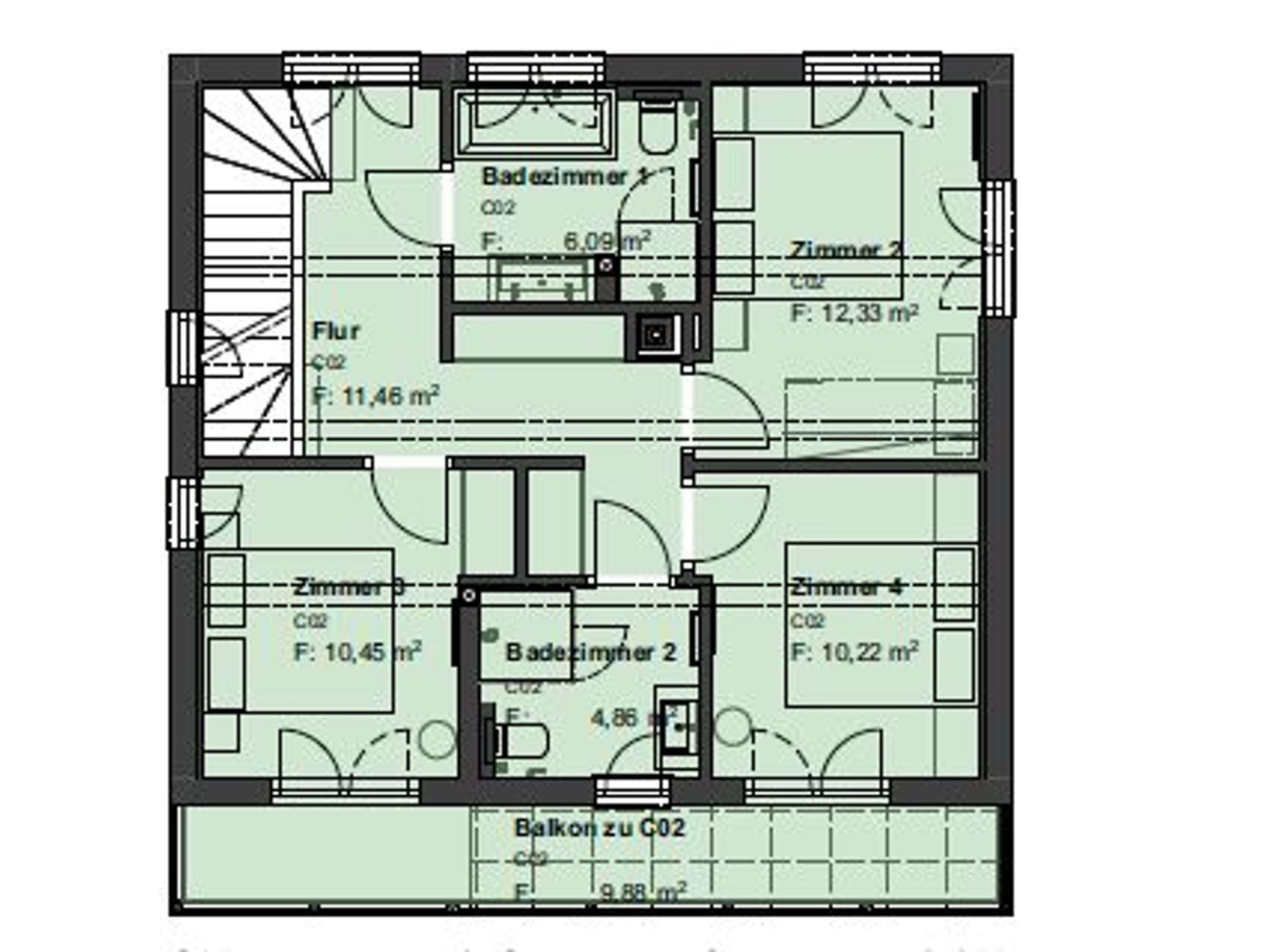• 2-4 Badezimmer mit Dusche/Badewanne