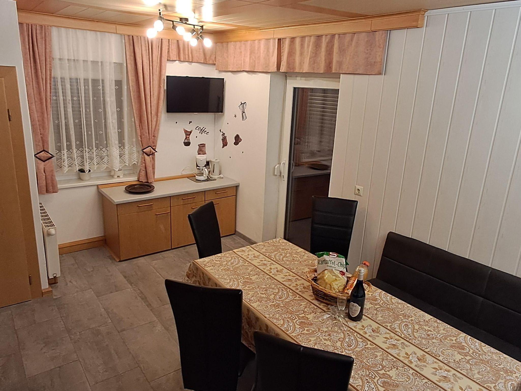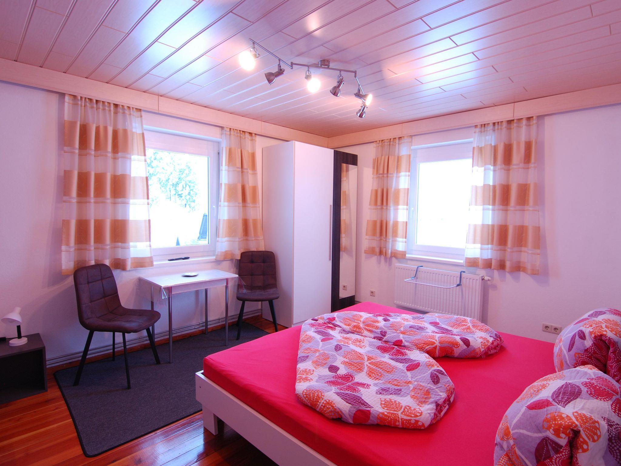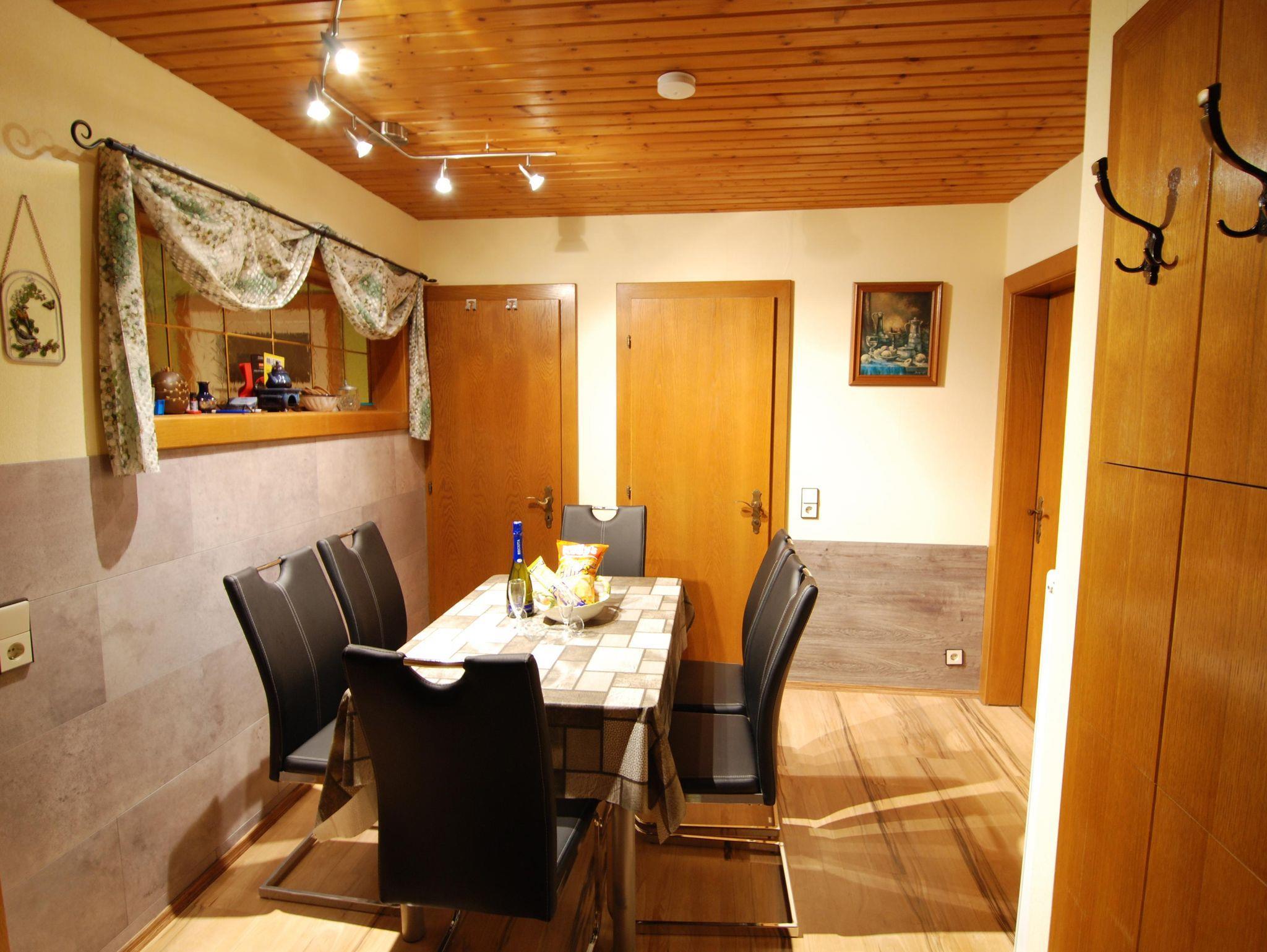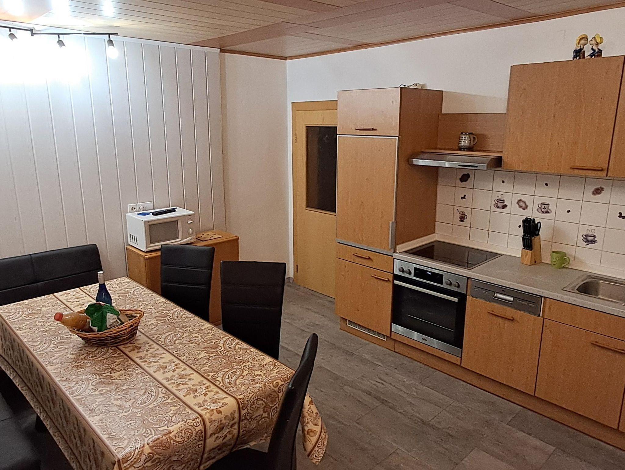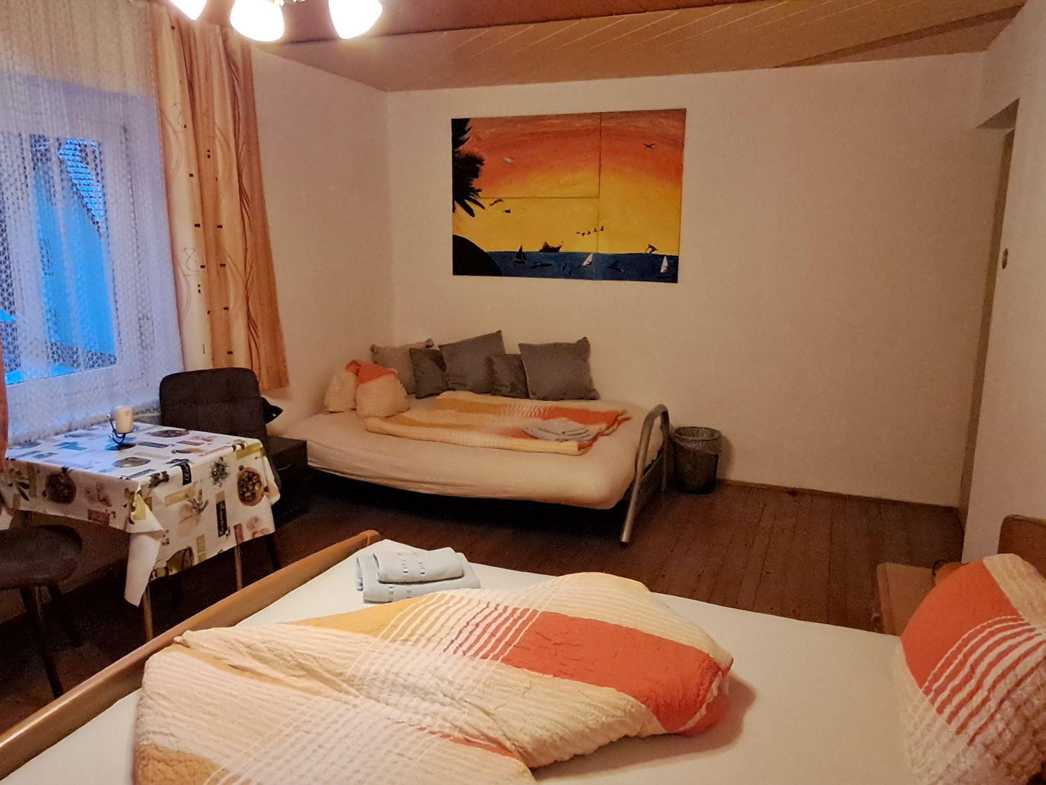 Unsere Ferienwohnung Waldblick verfügt über drei getrennte große Schlafzimmer, eine Wohnküche mit Sat./TV, ein Badezimmer mit Dusche/WC, einen Vorraum und einen geräumigen Balkon. Diese Wohnung ist komplett eingerichtet mit Geschirrspüler, Mikrowelle, Wasserkocher, Backofen, Kühlgefrierkombination, Kochtöpfe, Geschirr, Bettwäsche, Handtücher, ... und vieles mehr.