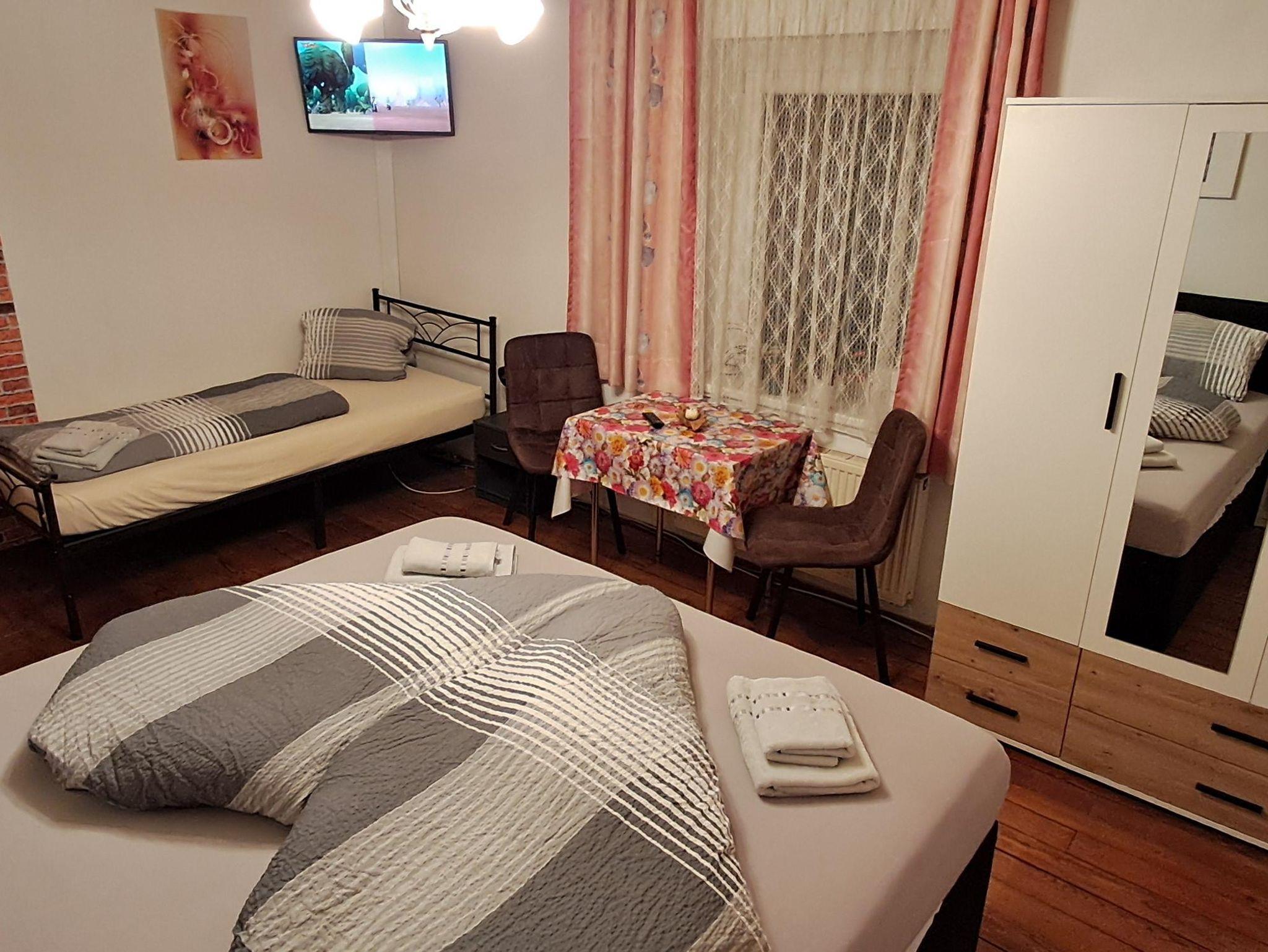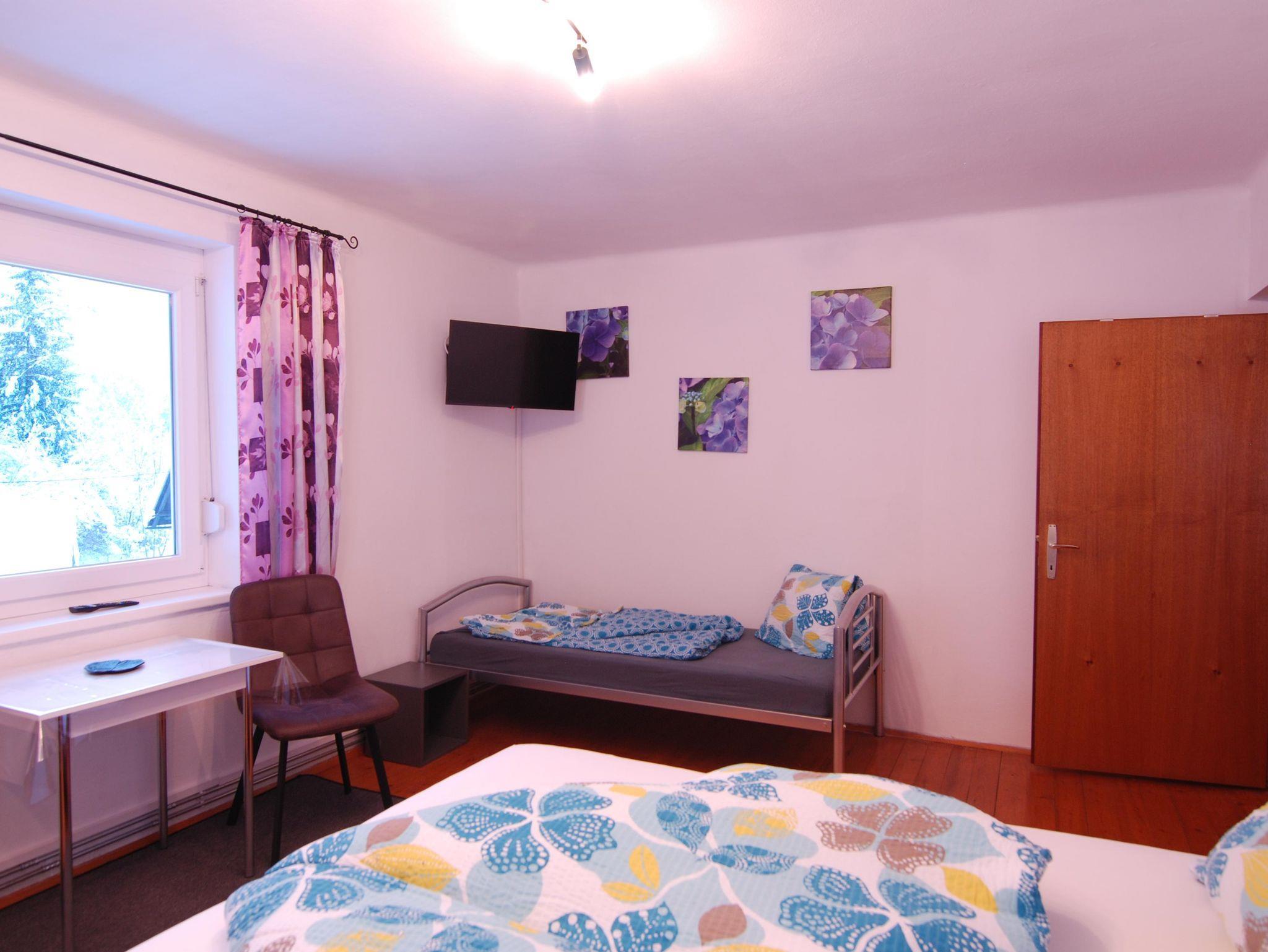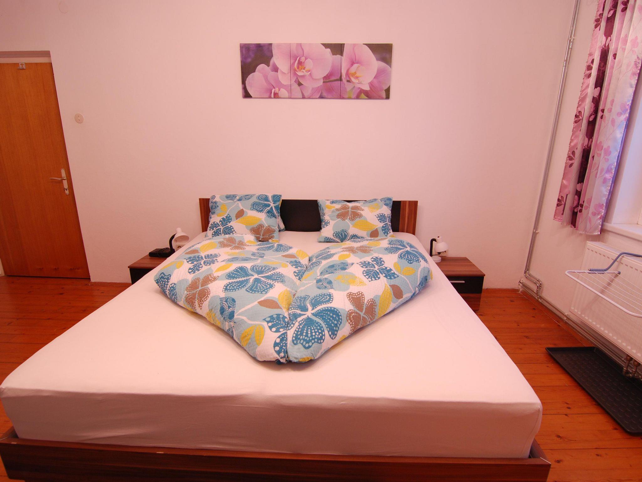 In zwei Zimmern befinden sich jeweils ein Doppelbett sowie ein Einzelbett mit TV. Im dritten Zimmer steht ein Erwachsenen - Stockbett für bis zu 4 Personen. In unserer Ferienwohnung gibt es auch einen schönen Vorraum mit Garderobe. Das Badezimmer verfügt über eine Dusche, ein WC und einen schönen Waschbereich. In der Küche findet man genügend Platz für bis zu 10 Personen. Mit einem großen Esstisch und einem Fernseher mit Satellitenanschluss steht auch gemütlichen Fernsehabenden nichts im Wege. Direkt von der Küche aus kommt man auf den Balkon und kann die wundervolle Aussicht genießen.
