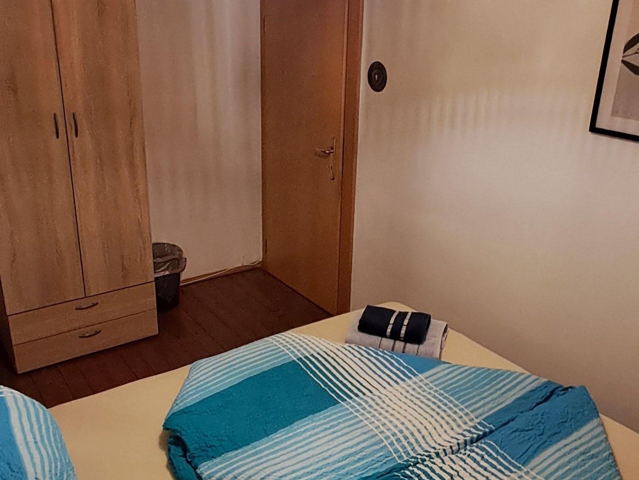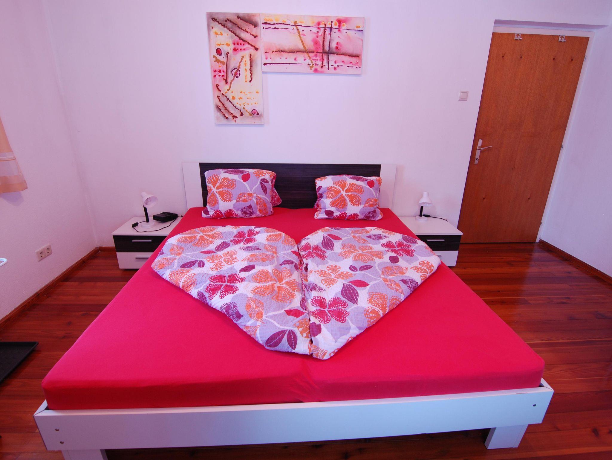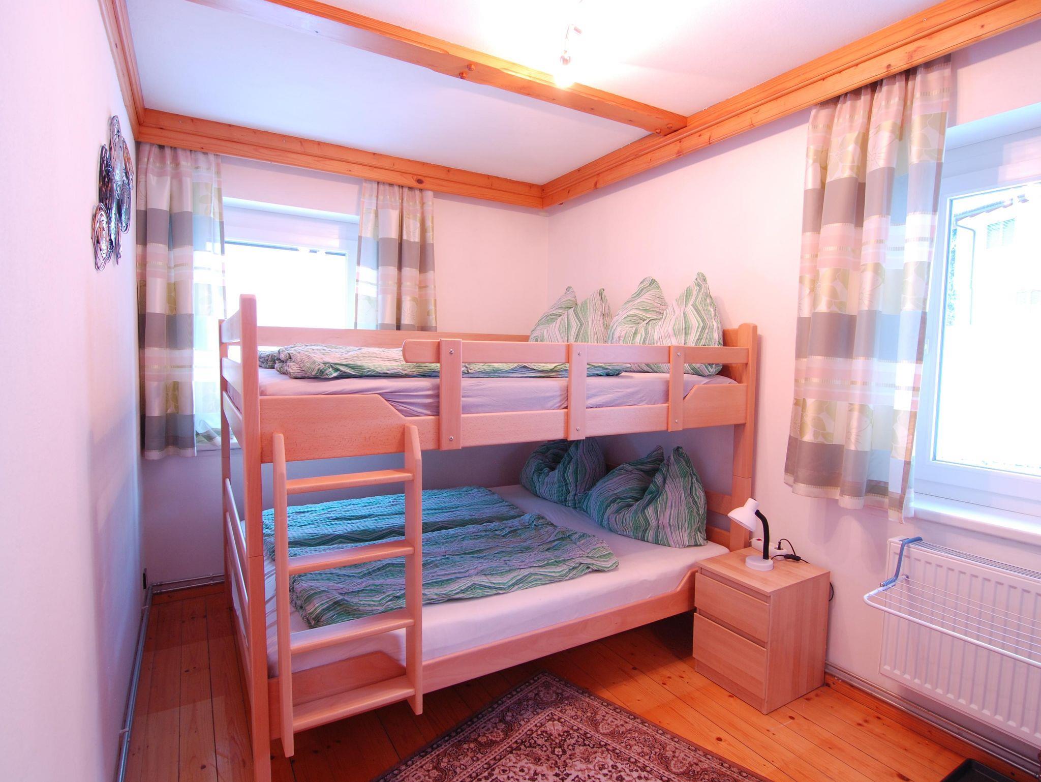 In zwei Zimmern befinden sich jeweils ein Doppelbett sowie ein Einzelbett mit TV. Im dritten Zimmer steht ein Erwachsenen - Stockbett für bis zu 4 Personen. In unserer Ferienwohnung gibt es auch einen schönen Vorraum mit Garderobe. Das Badezimmer verfügt über eine Dusche, ein WC und einen schönen Waschbereich. In der Küche findet man genügend Platz für bis zu 10 Personen. Mit einem großen Esstisch und einem Fernseher mit Satellitenanschluss steht auch gemütlichen Fernsehabenden nichts im Wege. Direkt von der Küche aus kommt man auf den Balkon und kann die wundervolle Aussicht genießen.