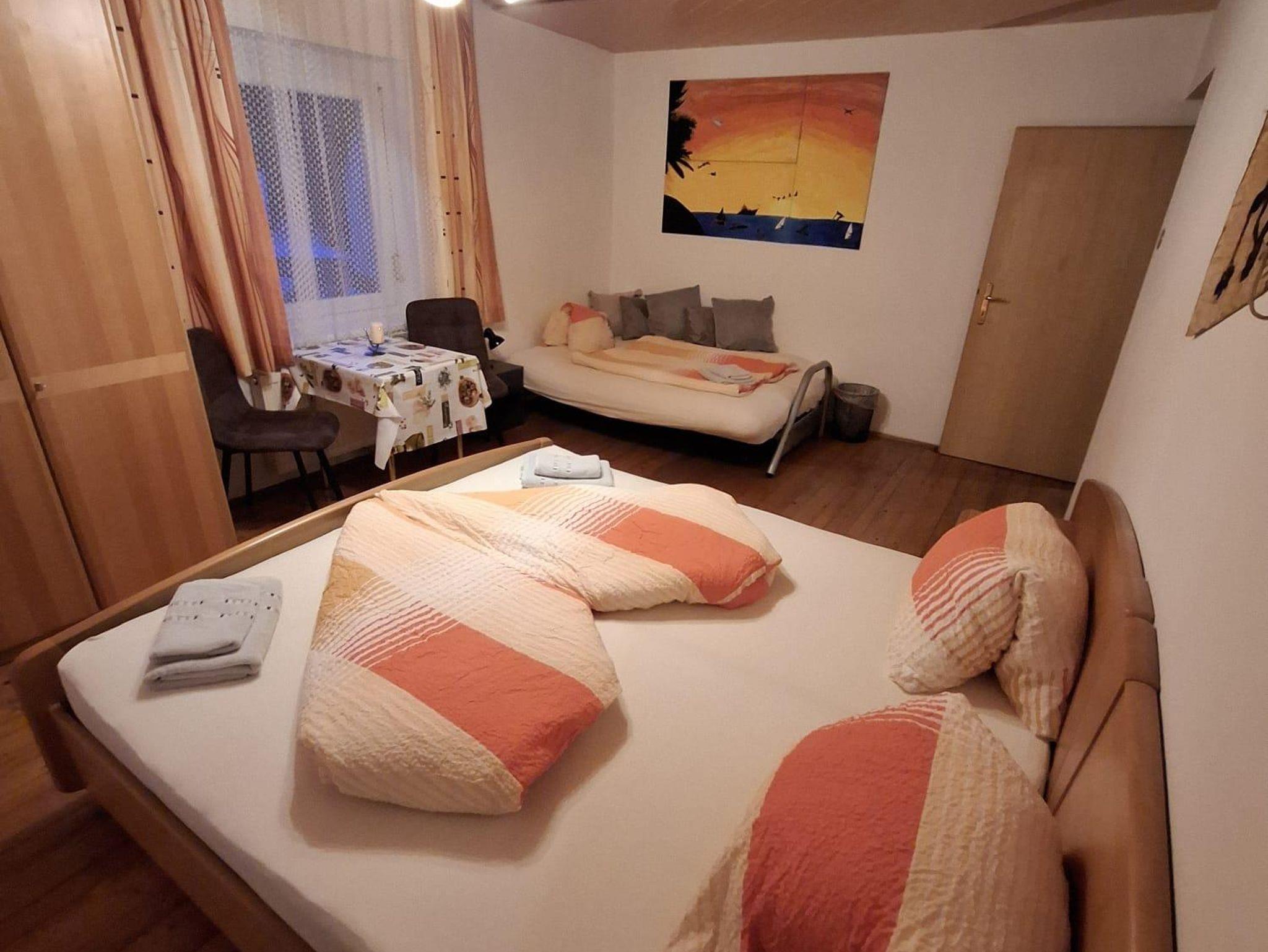 In beiden Schlafzimmern befindet sich ein Doppelbett und im Wohnzimmer befindet sich eine Wohnzimmercouch mit Doppelbettfunktion. Das Badezimmer verfügt über eine Dusche, ein WC und einen schönen Waschbereich. Die Küche ist durch eine Schiebetür vom Esszimmer getrennt. Das Esszimmer bietet genug Platz für bis zu 6 Personen. Der vorhandene Balkon bietet eine wunderschöne Aussicht auf ganz Hermagor. Mit einer großen Wohnzimmercouch und einem Fernseher mit Satellitenanschluss bietet diese Ferienwohnung alles für gemütliche Fernsehabende.