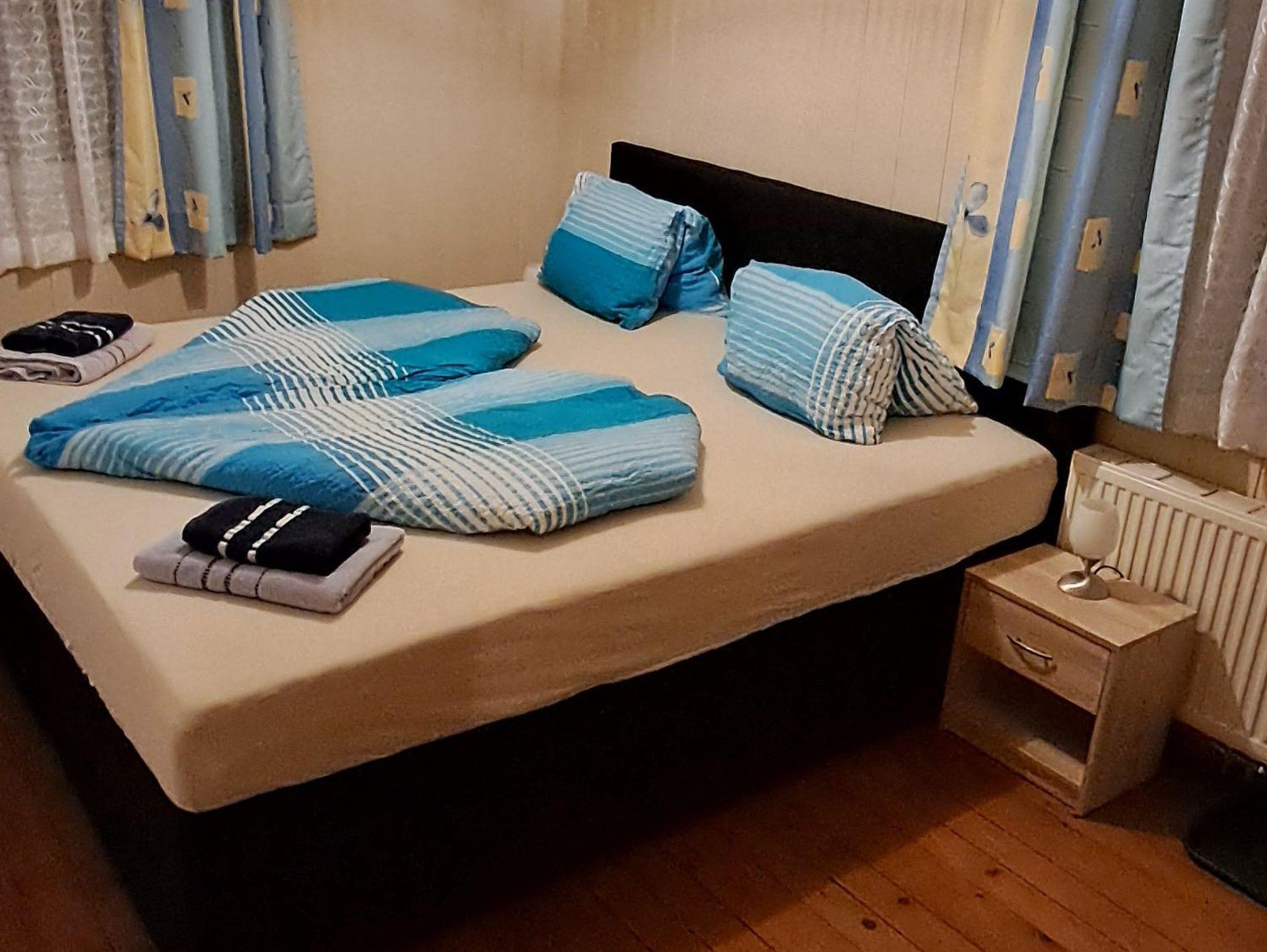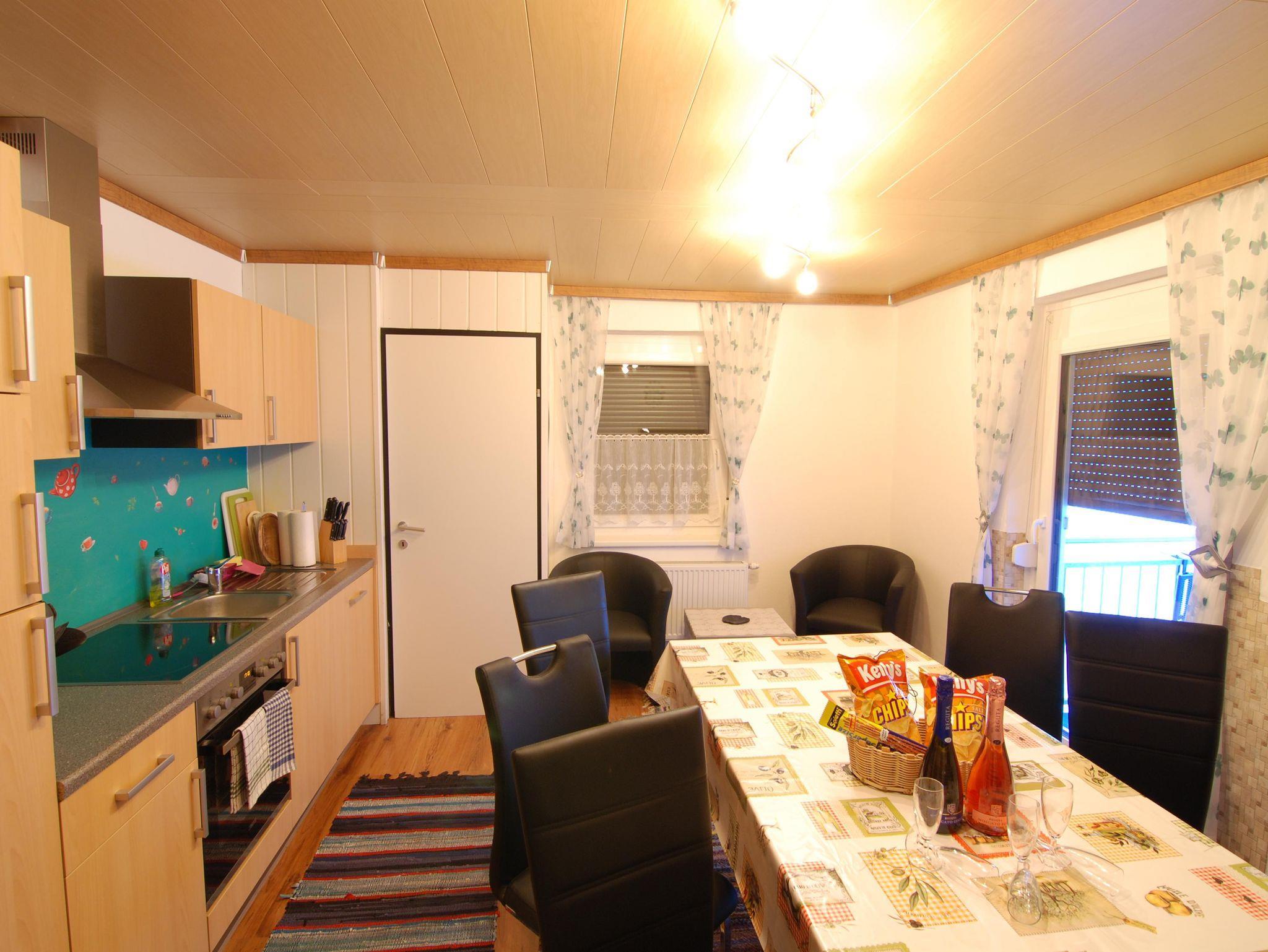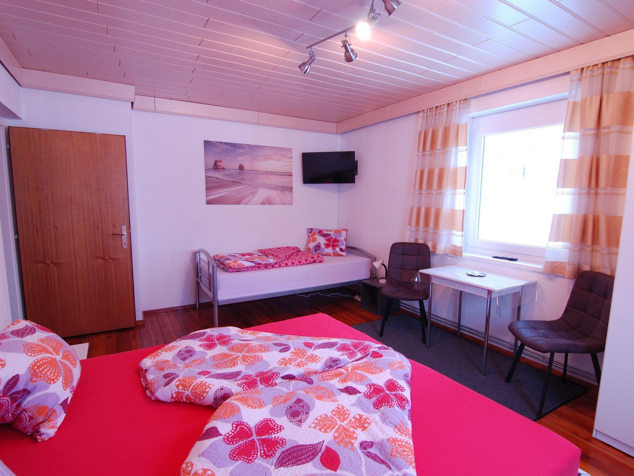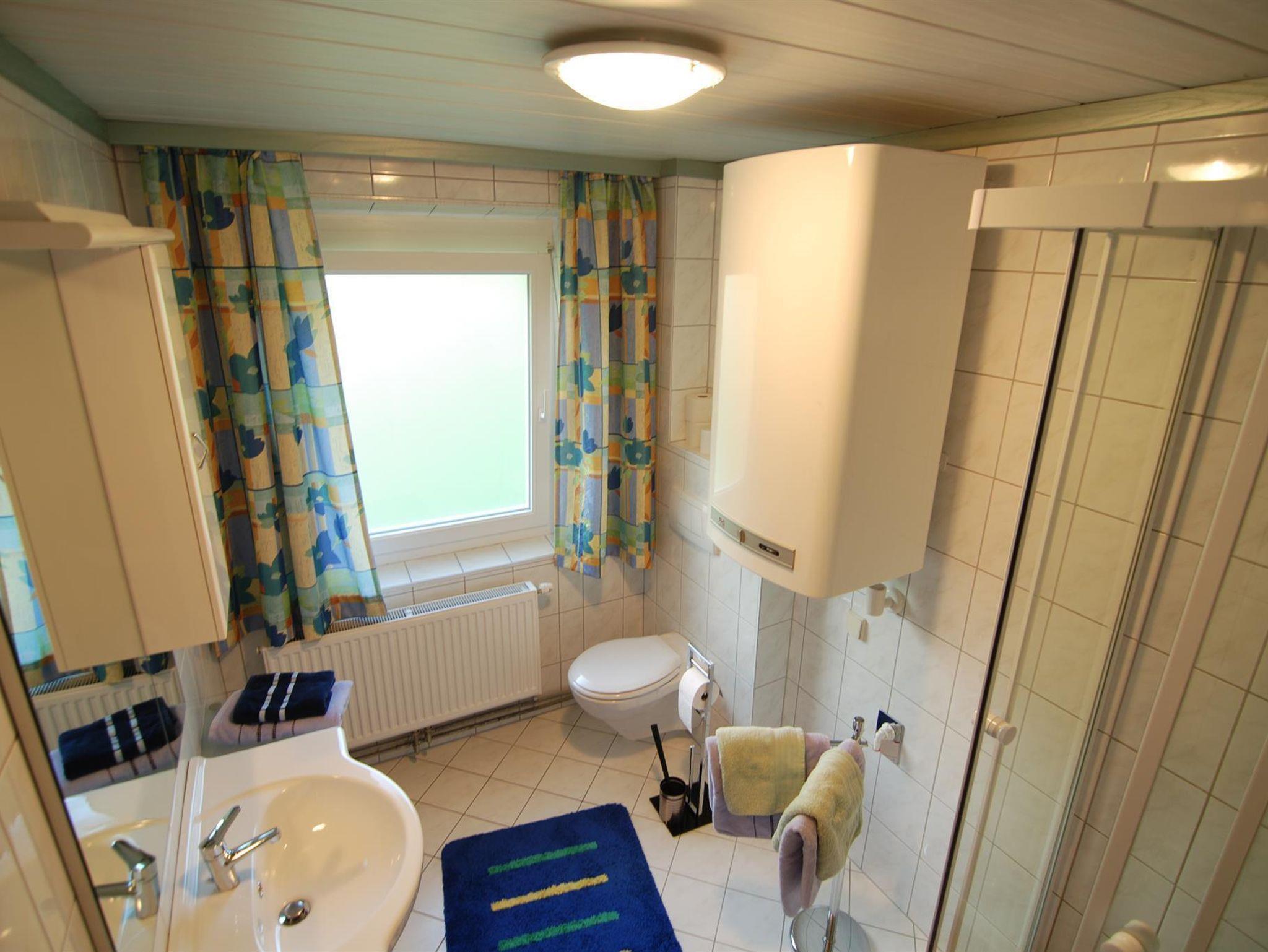 In zwei Zimmern befinden sich jeweils ein Doppelbett sowie ein Einzelbett und ein TV. Im dritten Zimmer steht ein weiteres Doppelbett. In unserer Ferienwohnung gibt es auch einen schönen Vorraum mit Garderobe. Das Badezimmer verfügt über eine Dusche, ein WC und einen schönen Waschbereich. In der Küche findet man genügend Platz für bis zu 8 Personen. Mit einem großen Esstisch und einem Fernseher mit Satellitenanschluss steht auch gemütlichen Fernsehabenden nichts im Wege. Direkt von der Küche aus kommt man auf die Terasse und in den angrenzenden Garten mit Kamingrill. Dort kann man gemütliche Grillabende genießen.