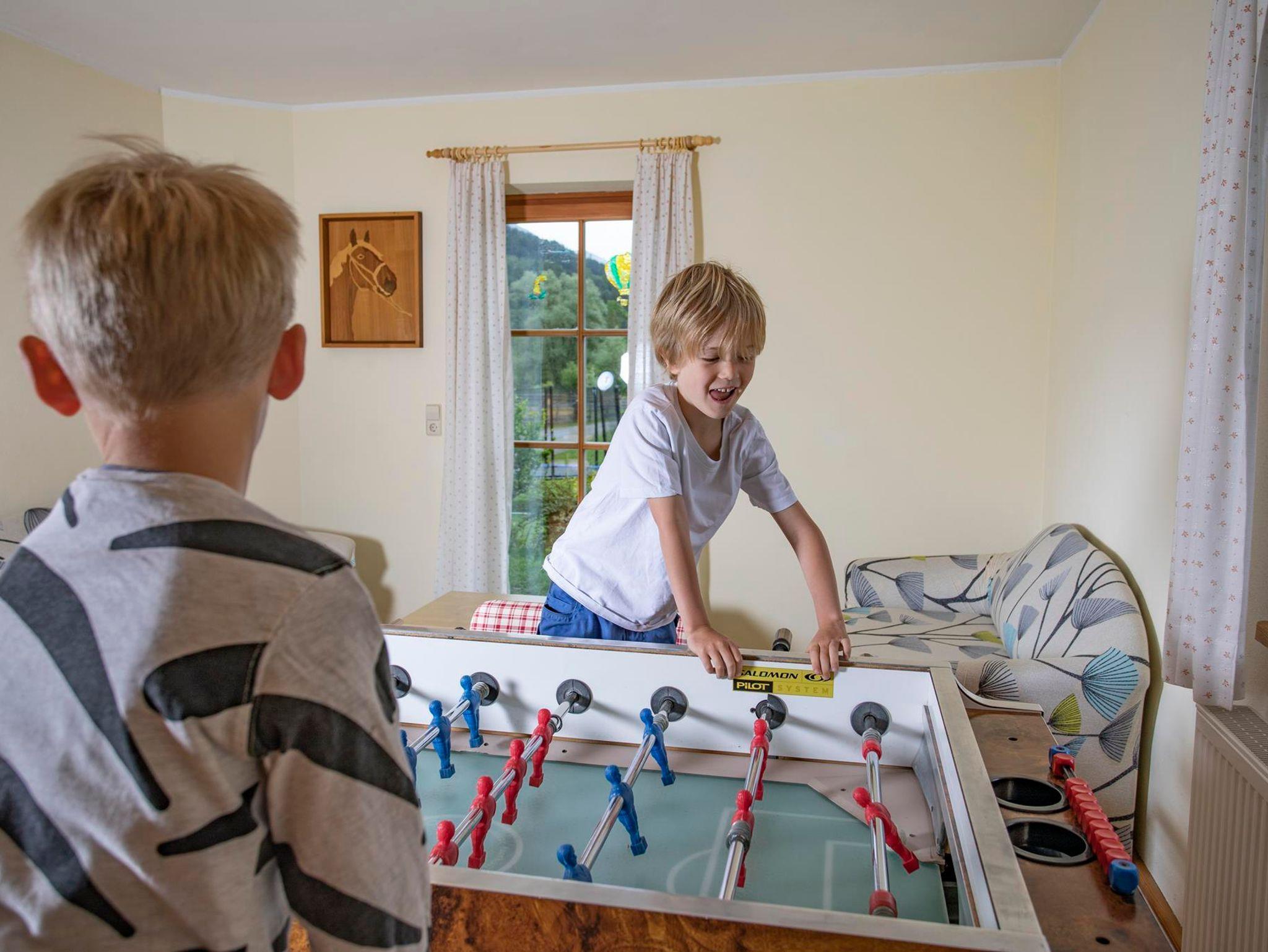 Über 10.000 m² Spiel- und Liegewiese, Kinderspielhaus und Kinderspielzimmer, Jugendraum mit Tischfußball, verschiedene Spielgeräte, bis 10 Fahrräder für groß und klein mit Kindersitzen sowie das bei Kindern sehr beliebte Go Kart. Die Ponys bürsten, mit den Katzen Spielen, die Schweinderln füttern und kratzen, die Tiere streicheln und natürlich die Mithilfe und Mitarbeit im Stall.
