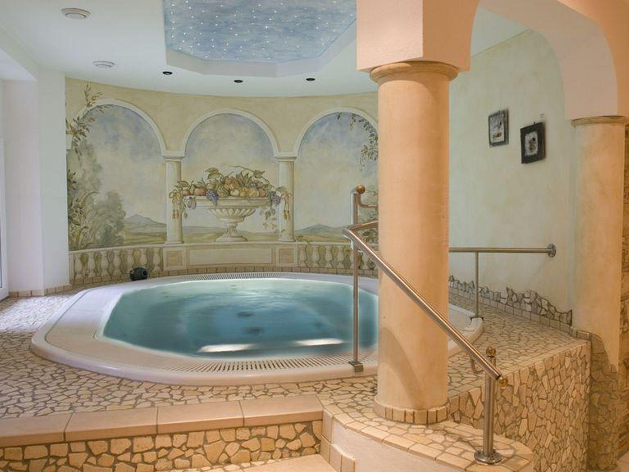 großzügiger Whirlpool, ein Kneippwasserfall, Erlebnisduschen und Ruheliegen auf Sie.