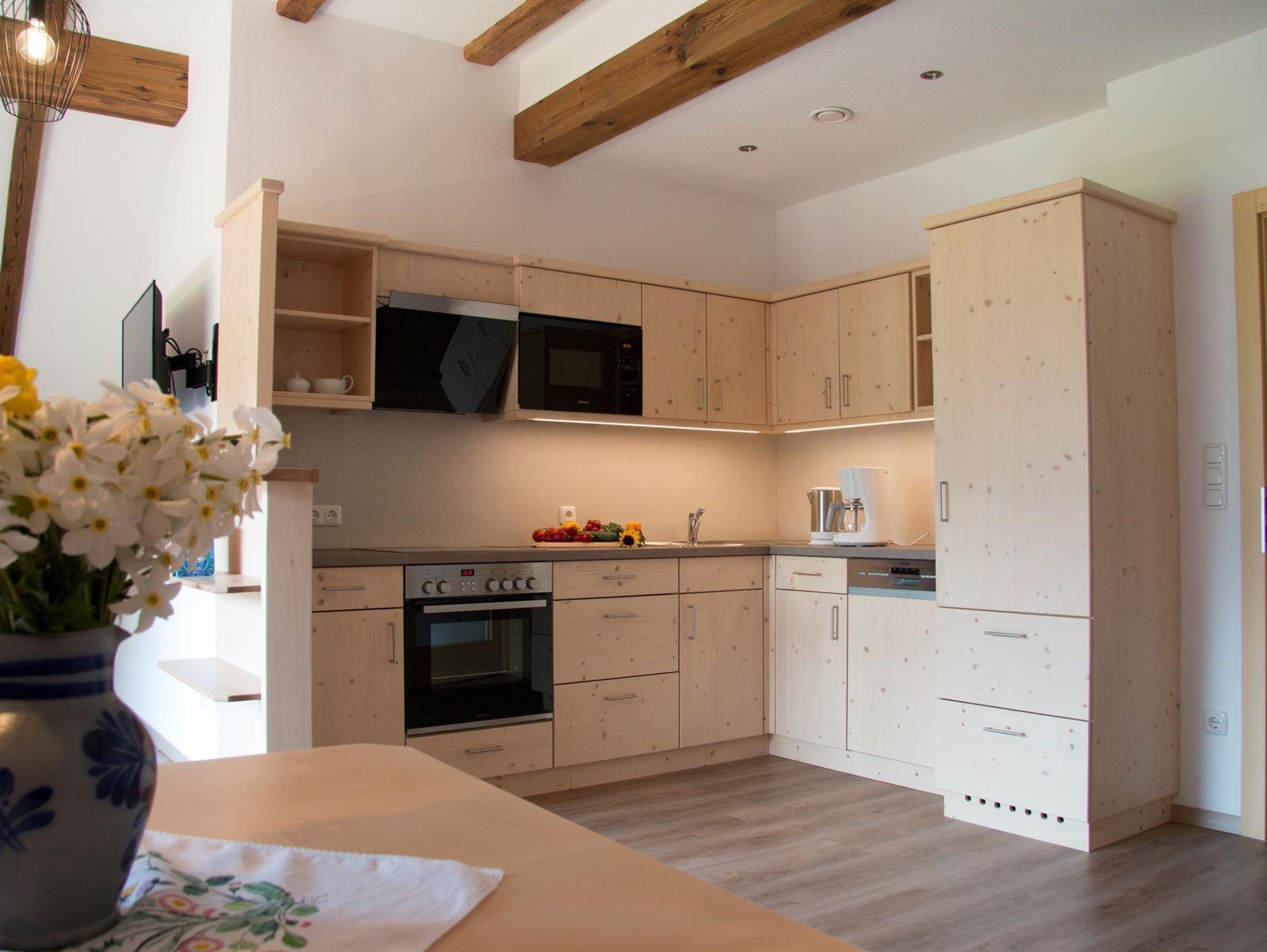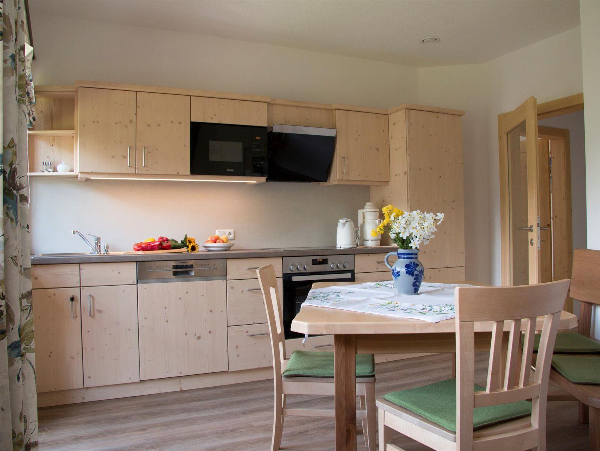 Ferienwohnung 60 m² im neu errichteten Gästehaus mit 2 getrennten Schlafzimmern, gerüumige Wohnküche mit Schlafsofa, gratis Internet, großer Balkon mit herrlichem Ausblick auf viele 2000er, Freizeitraum, Panoramasauna im Haus. Wir bieten Ihnen ein Brötchenservice oder auf Wunsch verwöhnen wir Sie mit einem Frühstück. Viele Tiere zum Streicheln und Liebhaben am Hof. Im Sommer ist die Pyhrn Priel Card inclusive ( gratis benützung der Bergbahnen,..) und im Winter gratis Skibus direkt vorm Haus.