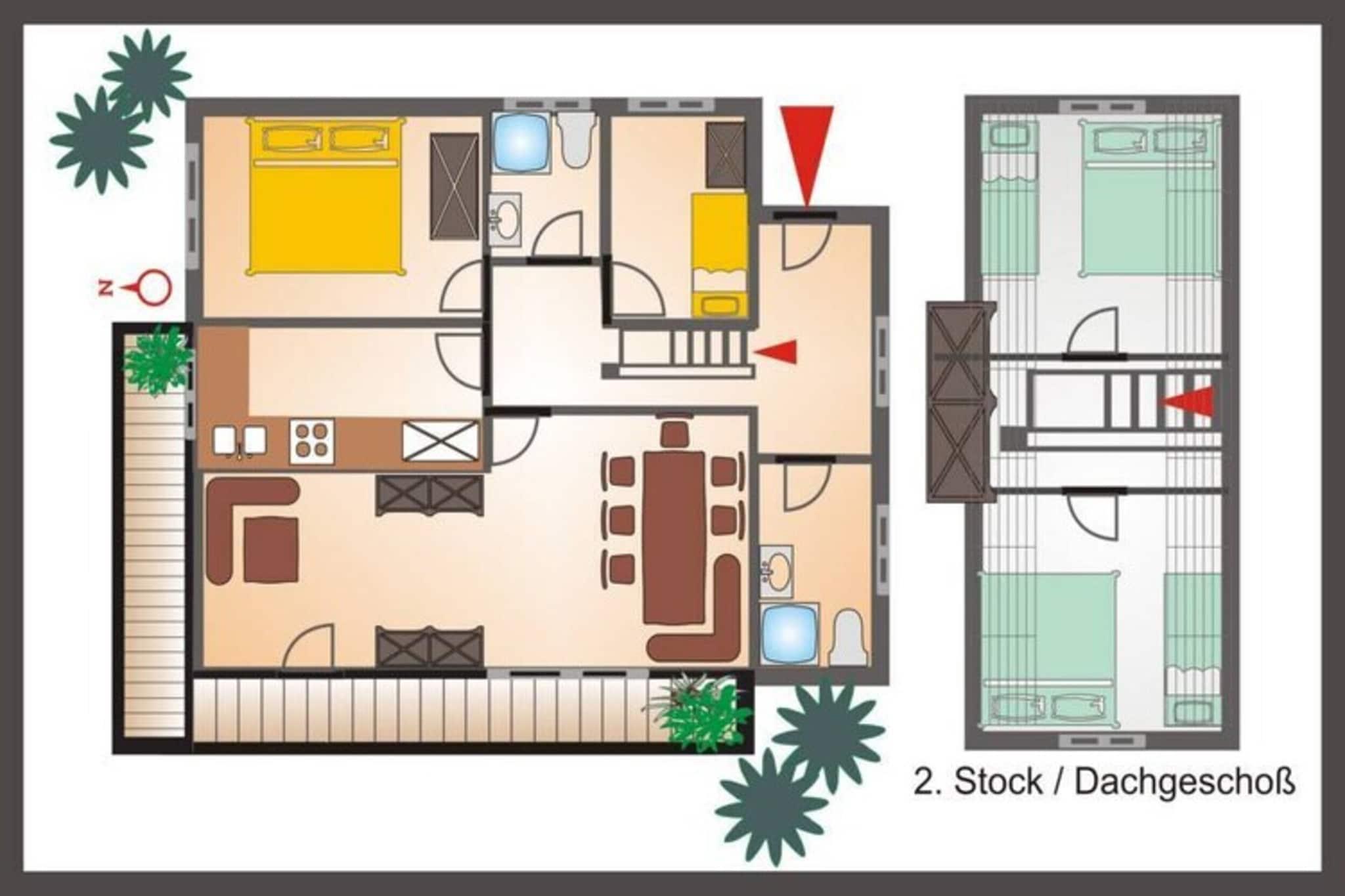 Ground floor: (Kitchen(dining table, hob(4 ring stoves, ceramic), coffee machine(fully automatic), oven, dishwasher, fridge-freezer), Living/diningroom, bedroom(double bed, TV(satellite)), bedroom(double bed, TV(satellite)), bathroom(shower, toilet, hairdryer)) ski storage, grill, sauna(shared with other guests), heating(gas), terrace, garden, garden furniture, parking