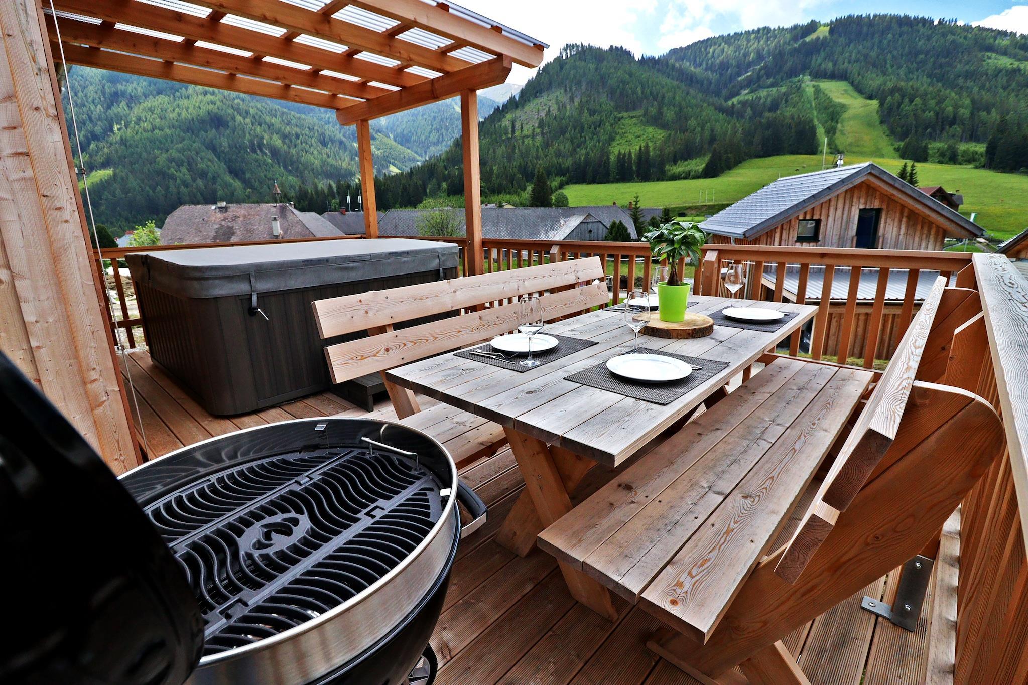 Discover the perfect alpine retreat in the heart of Hohentauern village. This premium chalet, offering 100 m² of luxurious living space, comfortably accommodates up to 8 guests, ensuring a memorable stay for families or groups. The chalet features four beautifully appointed bedrooms, including one with bunk beds for children, and three with comfortable double beds. Two modern bathrooms, each with a shower and hairdryer, add convenience for all guests. After a day of adventure, unwind in the soothing Finnish sauna or relax in the outdoor whirlpool, both designed for your ultimate comfort. Your furry friends are most welcome here! In winter, Styria transforms into the "white heart of Austria" with exceptional skiing opportunities. In summer, the region is renowned for its beautiful lakes, thermal spas, and the impressive Hohe Tauern Mountain range. With over 200 sunny days per year and a reliable snow cover, this chalet is the perfect destination for an unforgettable vacation throughout the year. Enjoy the stunning alpine views from the furnished terrace and balcony, ideal for savoring your morning coffee or evening relaxation. The open kitchen is fully equipped with a ceramic hob, oven, dishwasher, and fridge with freezer compartment. Essential appliances like a toaster, kettle, and coffee maker, along with all necessary cutlery and cookware, are also provided.