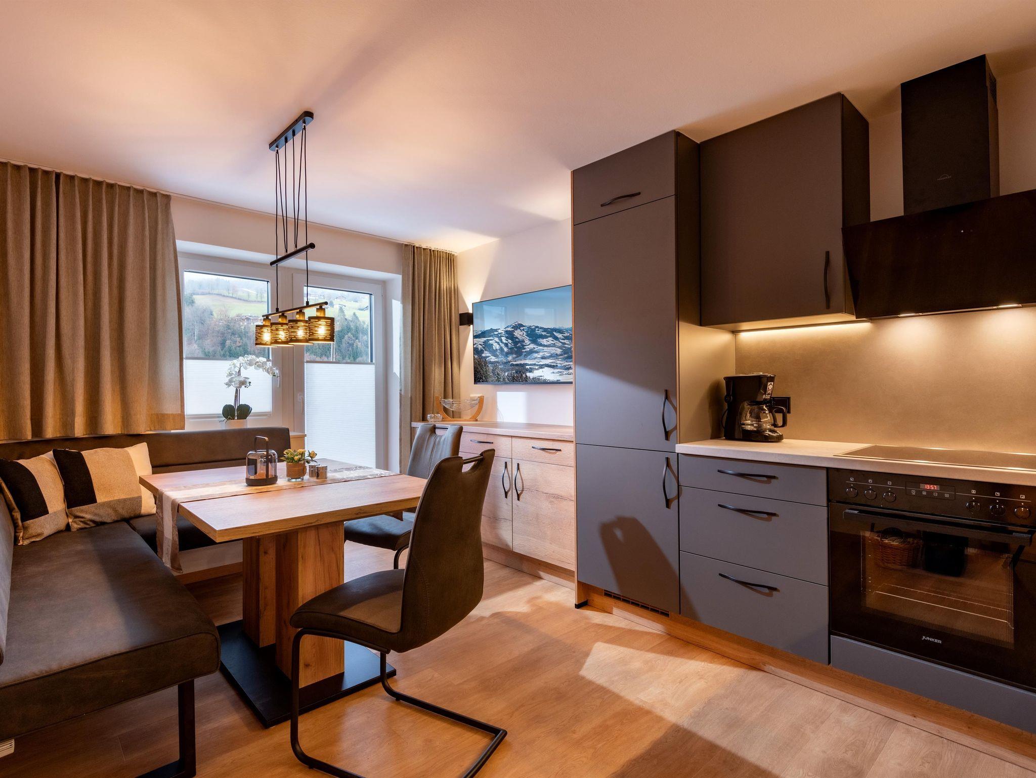 Die neu errichtete Ferienwohnung „Maria Theresia“ in Hopfgarten, ist eine von insgesamt drei Wohnungen unseres Hauses. Das Appartement befindet sich im Erdgeschoss mit einer großzügig angelegten Terrasse. Eine Garage für Auto und Fahrräder, sowie ein weiterer Abstellplatz stehen zur Verfügung. Wir befinden uns an einer Waldgrenze mit freiem Blick auf die Hohe Salve. Die Bergbahnen, der Badesee mit Spielplatz und das Ortsgebiet von Hopfgarten liegen ca. 1 km Fußmarsch entfernt.