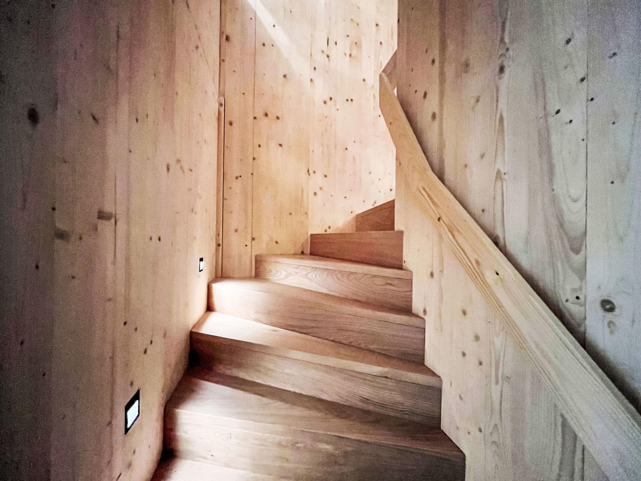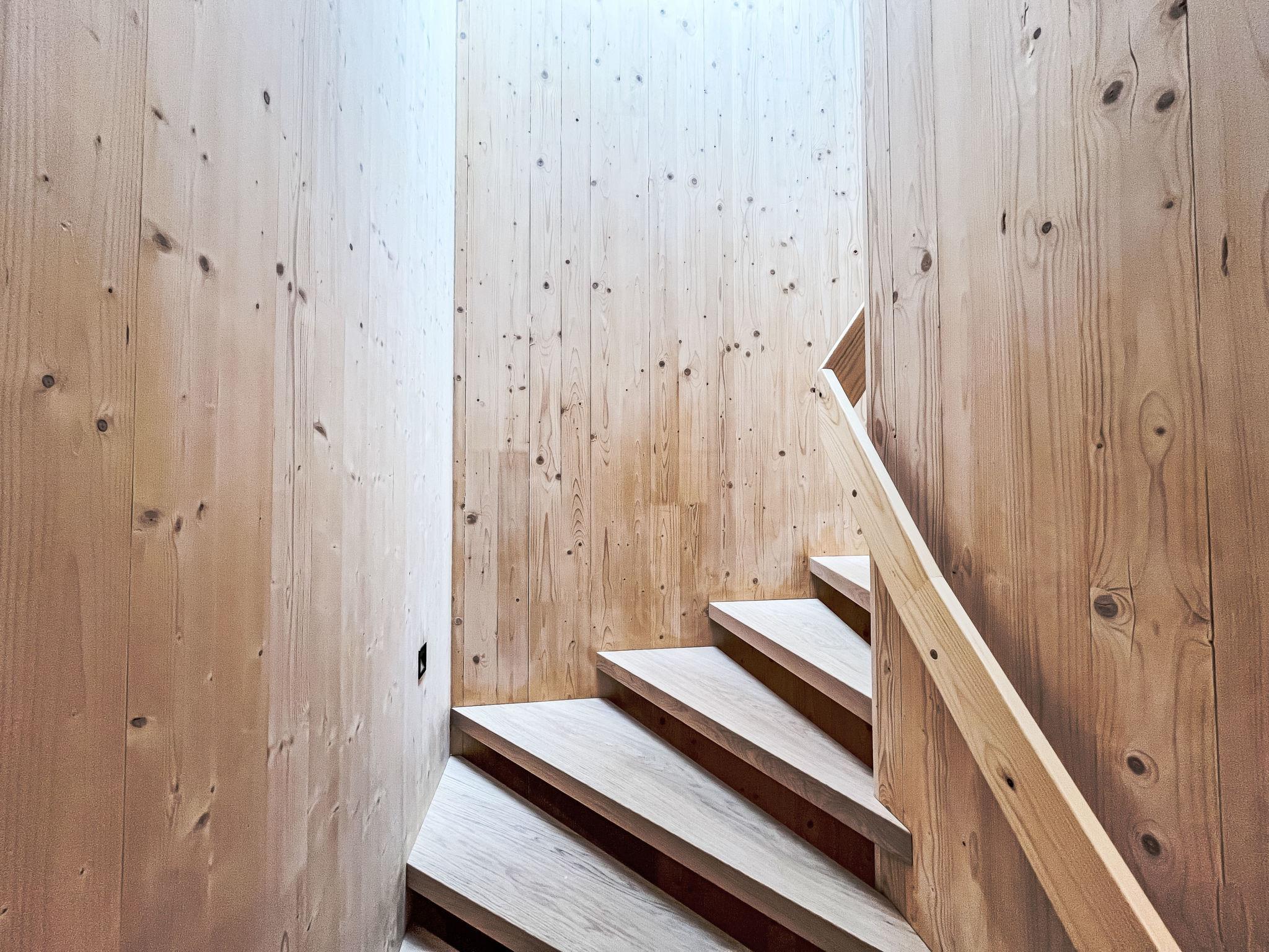 "Appartement für 8 Personen mit Sauna", 4-room apartment 90 m2 on 3 levels. Bright, modern furnishings: living/sleeping room with 1 double sofabed, dining table, satellite TV and international TV channels (flat screen). Exit to the terrace. Kitchenette (oven, dishwasher, 4 ceramic glass hob hotplates, electric coffee machine). Sep. WC, Sauna. Heating. Upper floor: 1 double bedroom. Shower/WC. 2nd upper floor: 2 double bedrooms. Shower/WC. Terrace 10 m2. Terrace furniture. Beautiful view of the mountains. Facilities: sauna, hair dryer. Internet (WiFi, free). Please note: non-smokers only. Maximum 1 pet/ dog allowed. The property is one of a type of property or apartment.