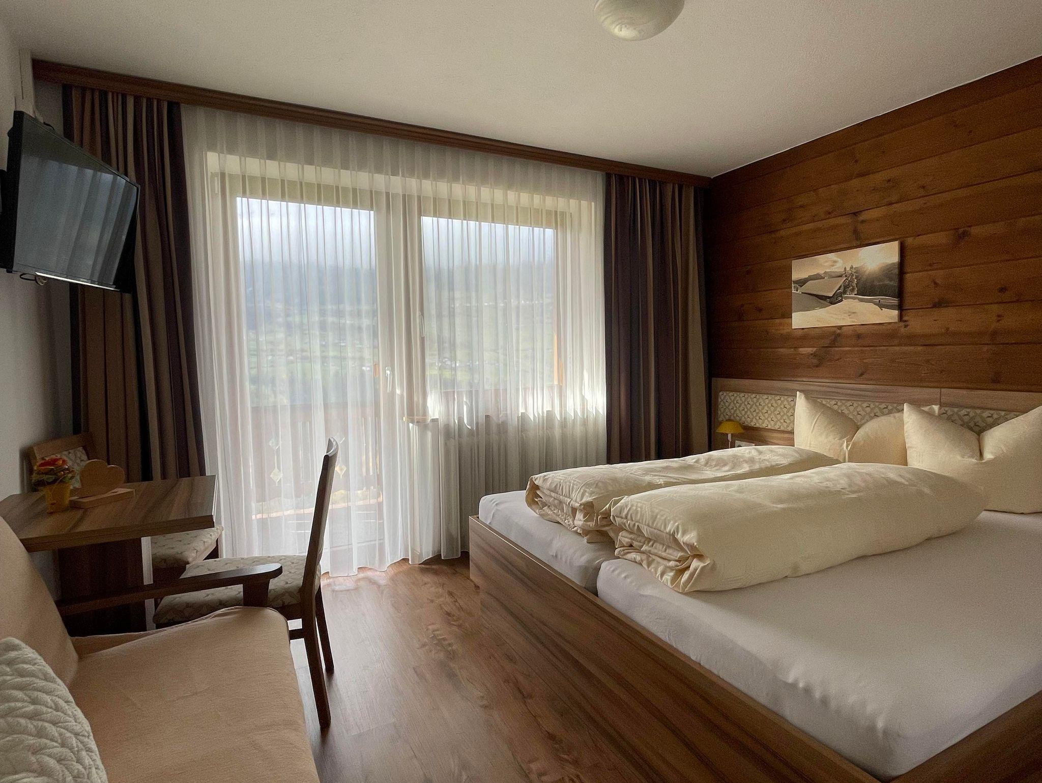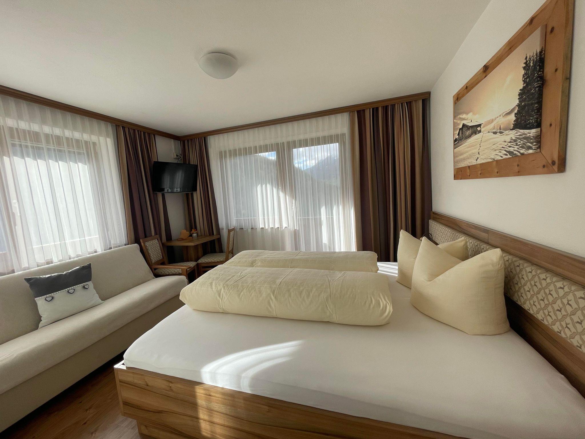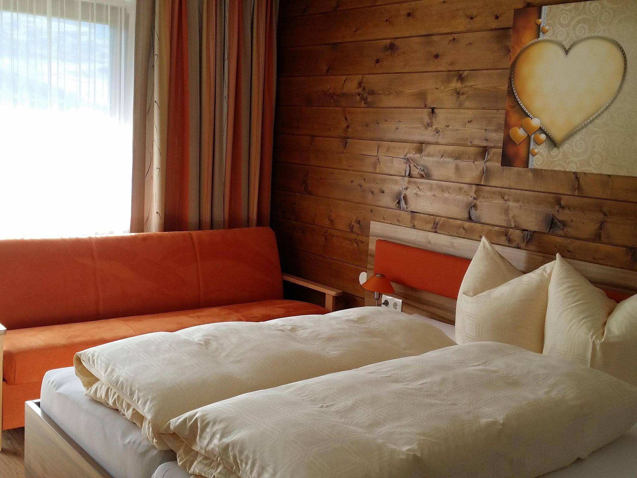 Gemütliches Zimmer mit schönem Balkon. Jeweils mit Couch, die für die 3. Person ausgezogen wird.