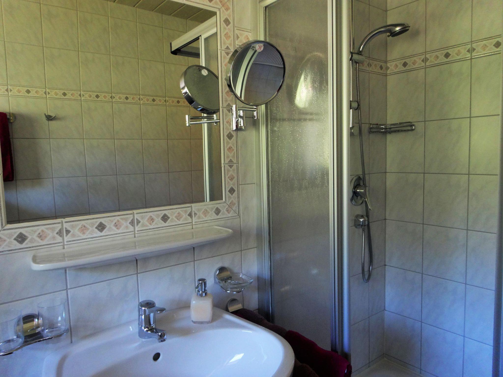 Das Badezimmer ist ausgestattet mit einer Badewanne oder einer Dusche, Waschbecken und Fön sowie ein WC. Frische Hand- und Duschtücher werden kostenlos zur Verfügung gestellt.