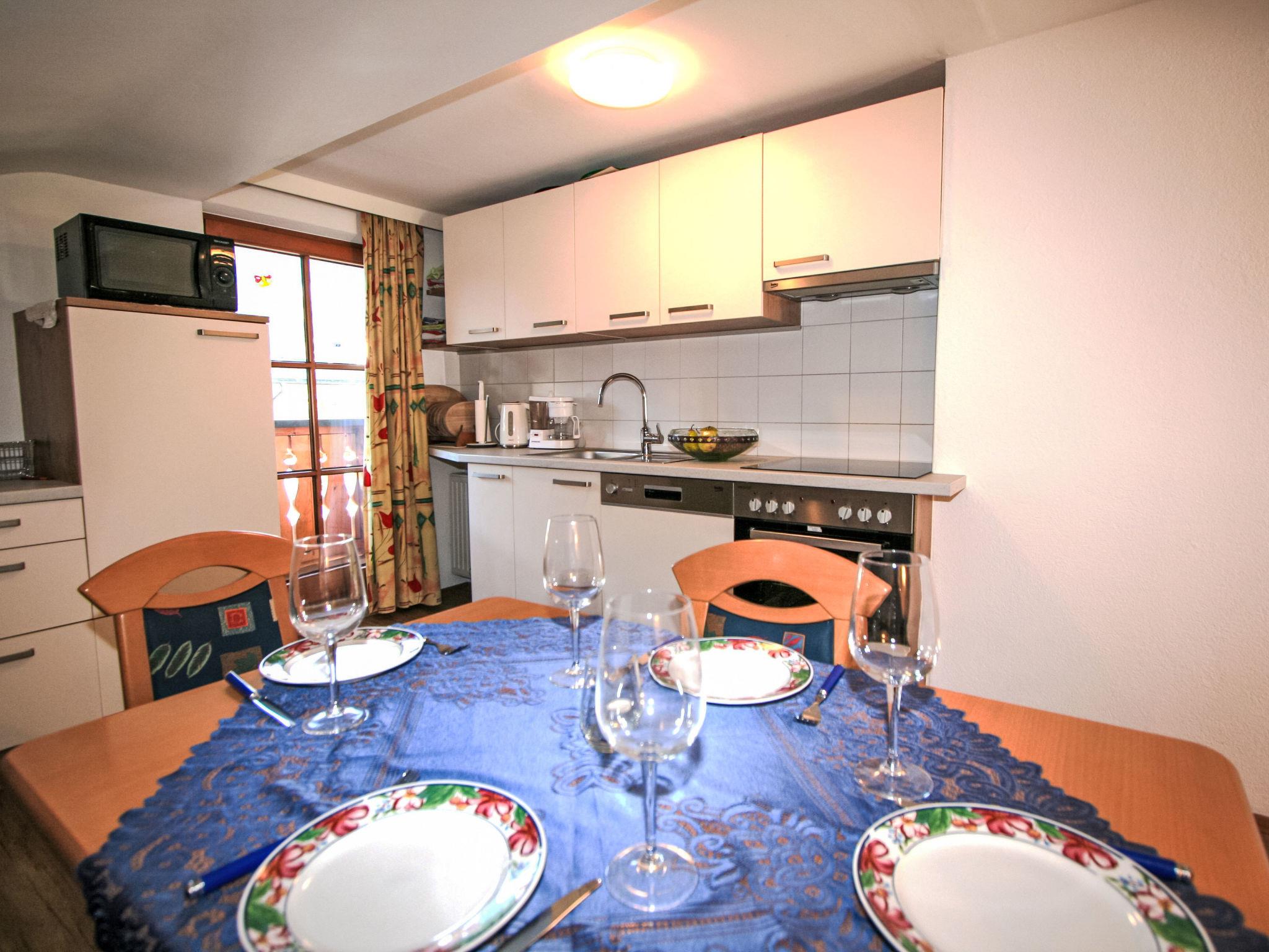 3-room apartment 60 m2 on 2nd floor. Partly with sloping ceilings, rustic and cosy furnishings: entrance hall. 1 double bedroom with hand-basin. Exit to the balcony. Living/sleeping room with 1 double sofabed and satellite TV (flat screen), tiled stove. Kitchen-/living room (oven, dishwasher, 4 ceramic glass hob hotplates, microwave) with 1 sofabed, dining nook and radio. Exit to the balcony. Shower/WC. Balcony. Beautiful view of the mountains. Facilities: Internet (WiFi). 1 closet room. From the living/bedroom you can access the kitchen (through room). Parquet floors.