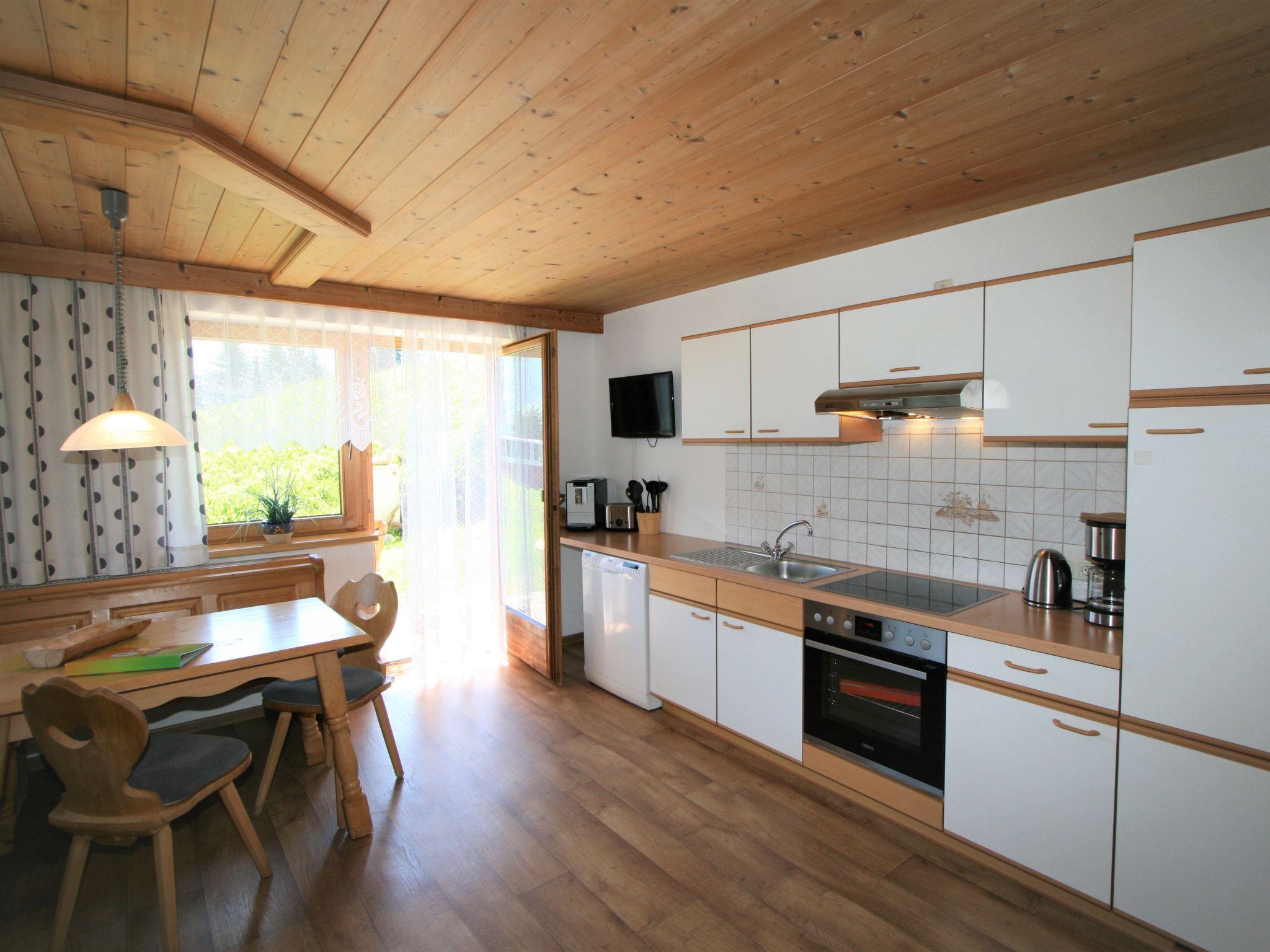 "Luxner", 3-room apartment 45 m2, on the ground floor. Object suitable for 3 adults + 2 children. Rustic furnishings: 1 room with 1 sofabed and 1 double bed. 1 small room with 1 x 2 bunk beds (80 cm, length 180 cm). Kitchen-/living room (oven, dishwasher, 4 ceramic glass hob hotplates, toaster, kettle, electric coffee machine) with dining table, 1 double sofabed and satellite TV (flat screen). Exit to the terrace. Shower/WC. Oil heating. Terrace. Terrace furniture. Marvellous view of the mountains. Facilities: children's high chair, baby cot. Internet (WiFi, free). Bed layout is flexible. There are more sleeping options available than the maximum number of people allowed which may, however, not be exceeded. When there are less than the maximum number of guests staying at the property, not all of the bedrooms will be available for use.