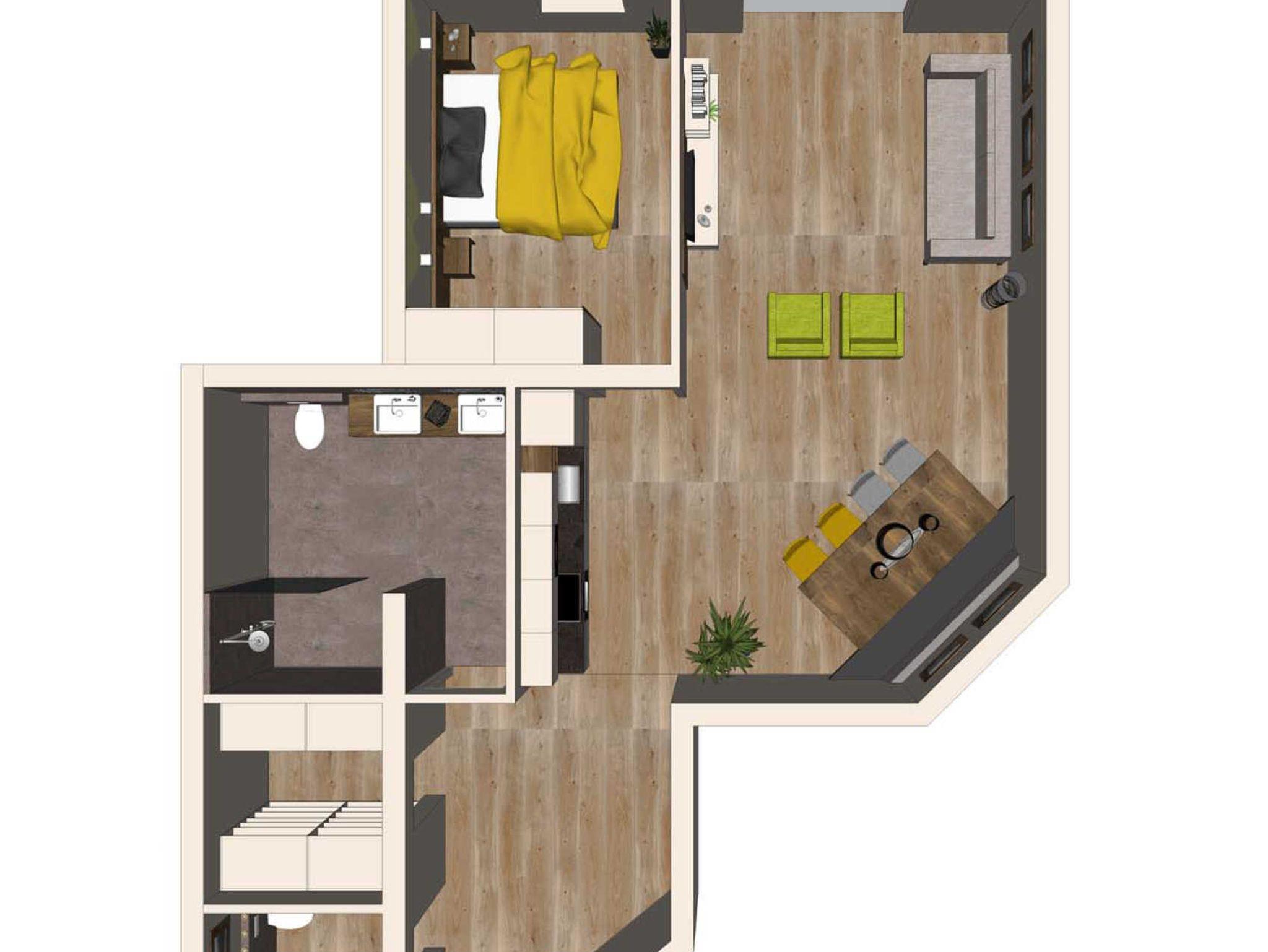 Mit 1 Schlafzimmer und einer Schlafcouch für 2 Personen bietet das Apartment Platz für 2-4 Personen. Das technische Equipment in der Küche reicht von einer Nespresso Kaffeemaschine und einem Wasserkocher, über Kühlschrank mit Gefrierfach, bis hin zu High-Tech Ceranherd. Wohn-/Aufenthaltsraum, Safe, Suite-Pads, Wi-Fi, Flat- TV, Badezimmer mit Dusche/WC, 1 separates WC, Schrankraum und Balkon.