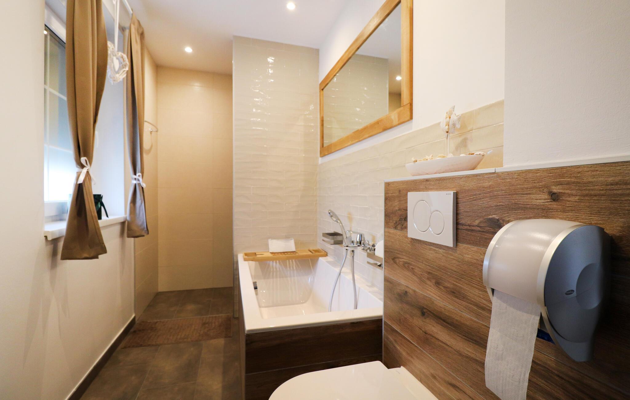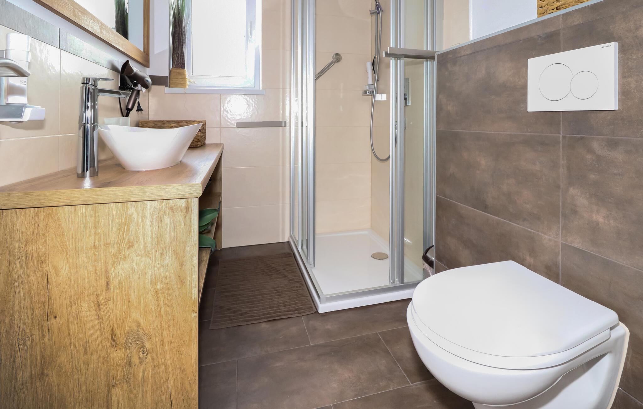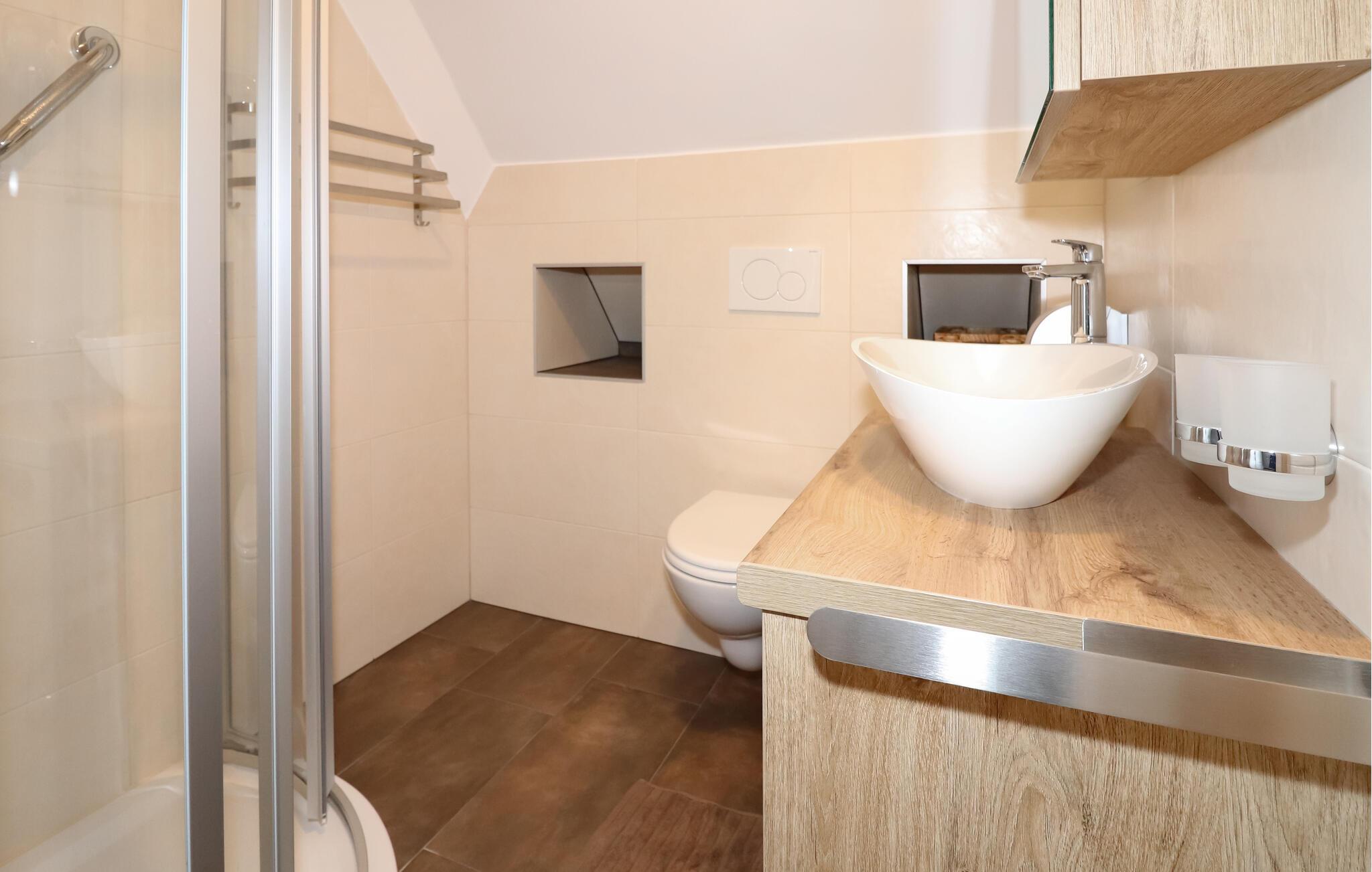 - WC mit warmem und kaltem Wasser, Dusche und Badewanne