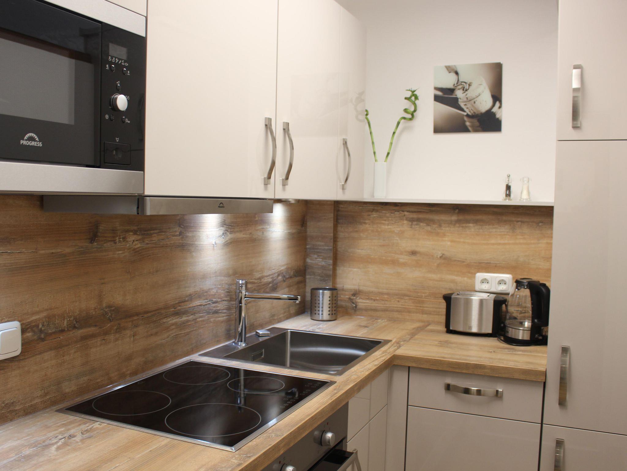 vollausgestattete Küche, Badewanne, Flat-screen TV, WLAN, kostenlose Parkplätze, 1 Boxspringbett für 2 Personen, 1 Schlafsofa 1 Person, Esstisch, Balkonmöbel auf der großzügigen Loggia