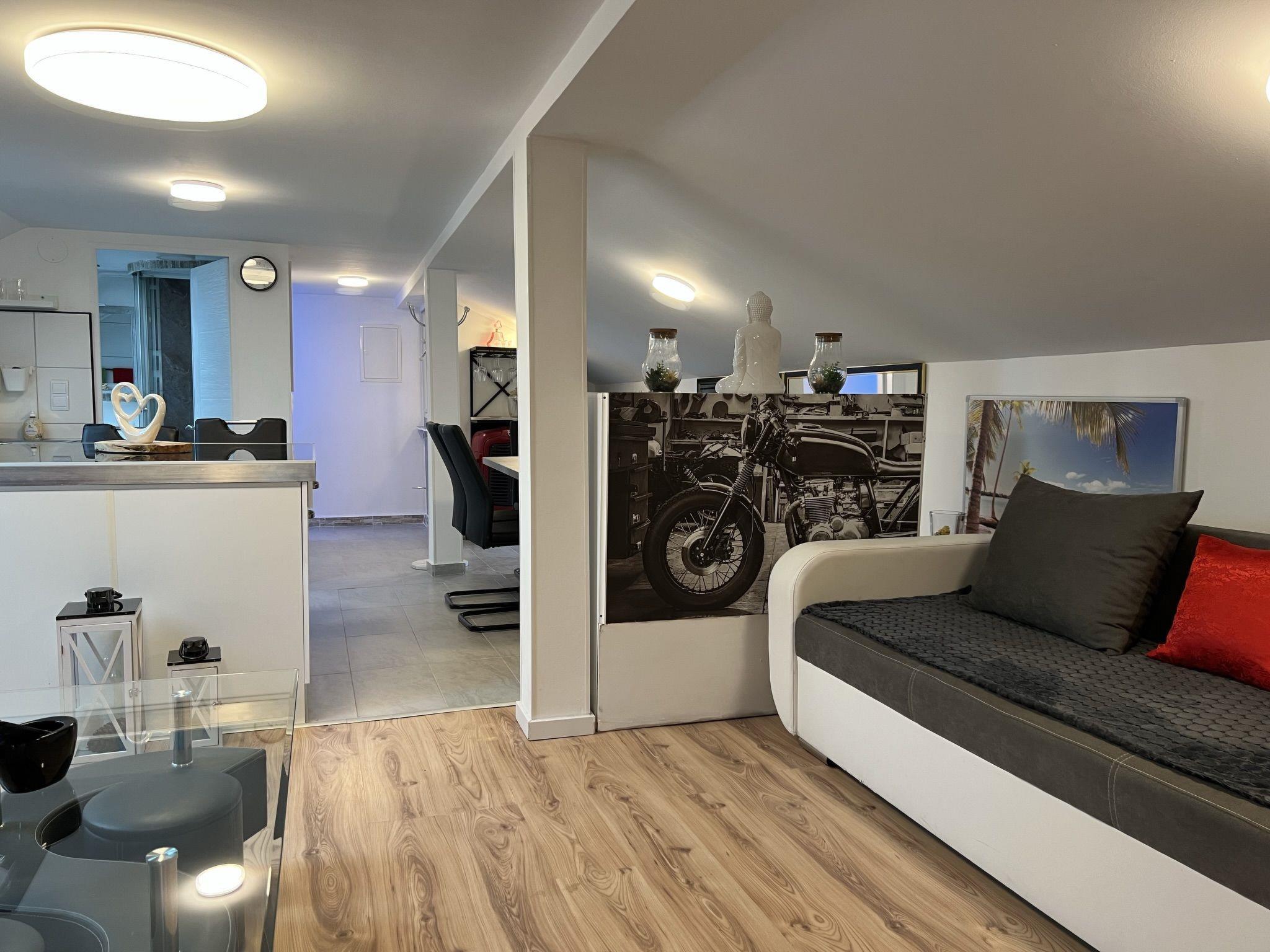 2-room apartment 70 m2 on 1st floor. Spacious and bright, partly with sloping ceilings, renovated in 2022, very comfortable and stylish furnishings: living/sleeping room with sloping ceilings with rooflight with 2 double sofabeds, TV and international TV channels (flat screen). 1 double bedroom with Dressing room. Open kitchen (4 hot plates, oven, dishwasher, kettle, microwave, electric coffee machine) with dining table and bar. Shower/WC. Electric heating. Parquet floors. Very beautiful view of the mountains. Facilities: washing machine, hair dryer. Internet (WiFi, free). Please note: non-smokers only. Maximum 2 pets/ dogs allowed.