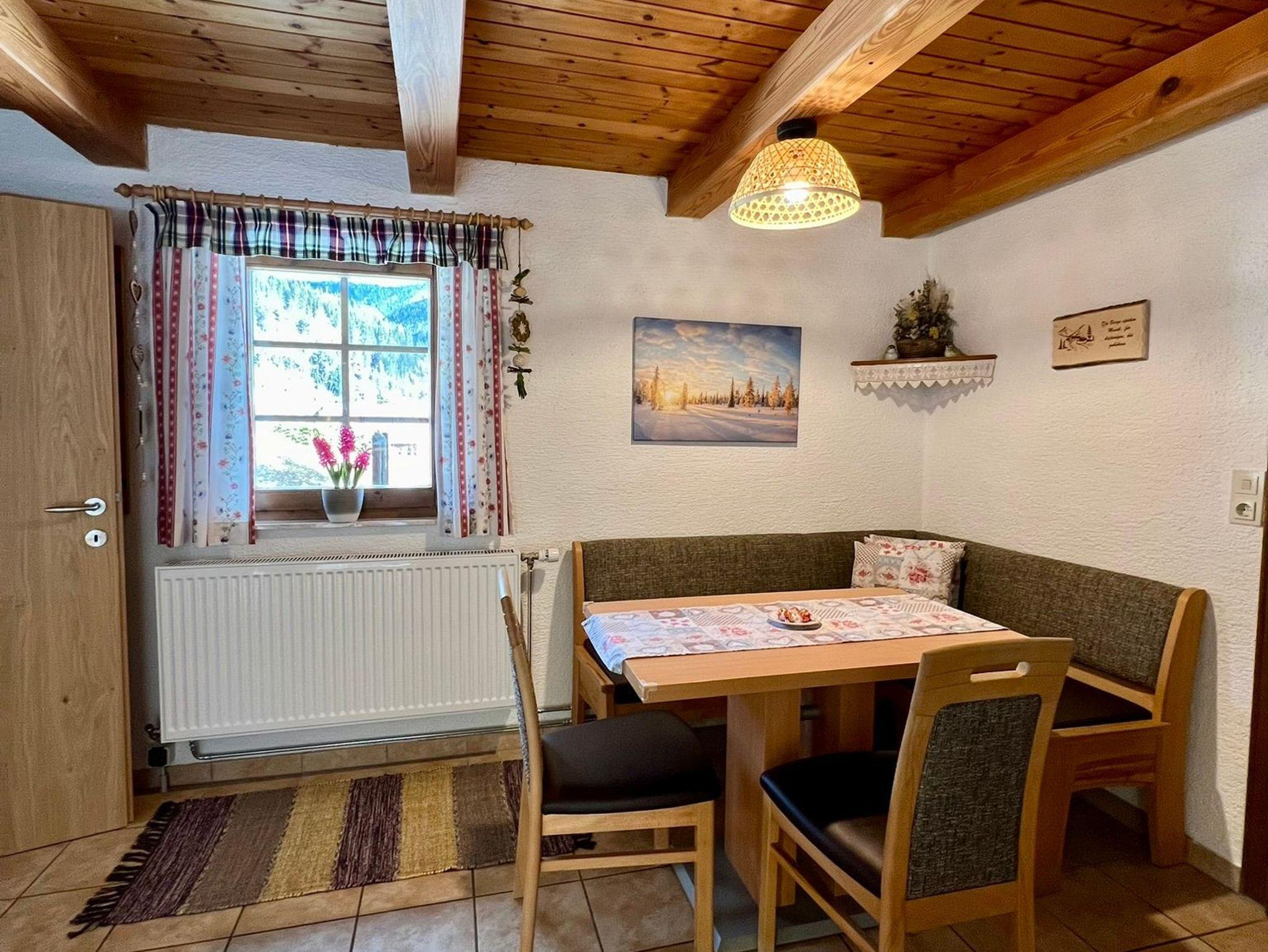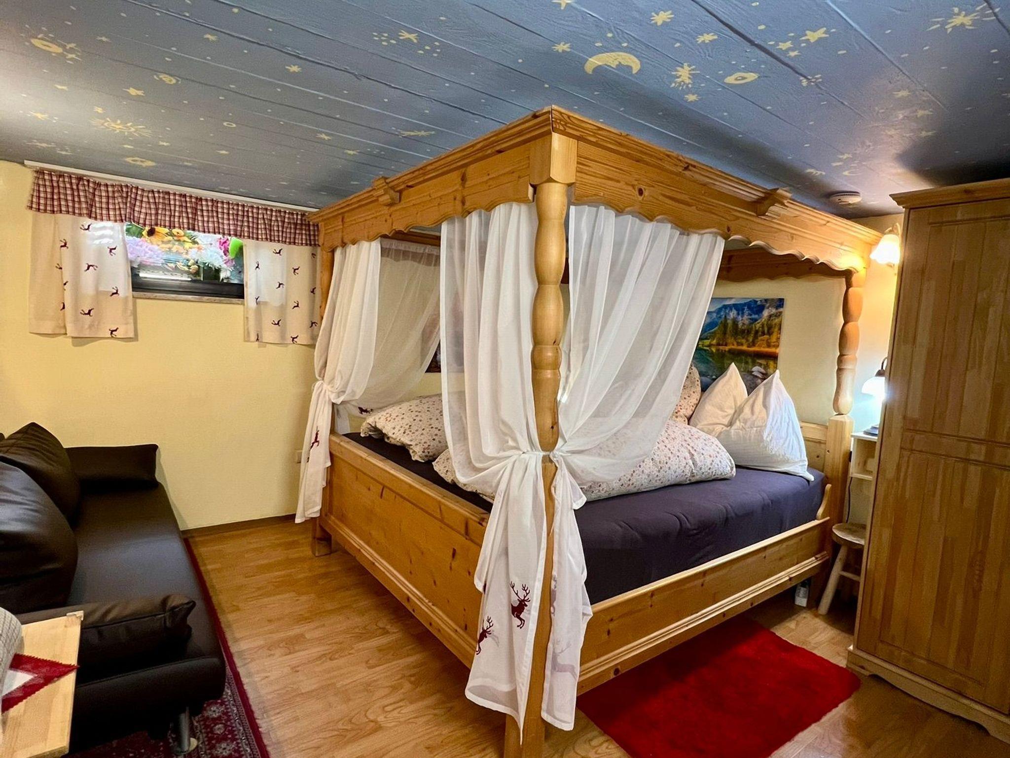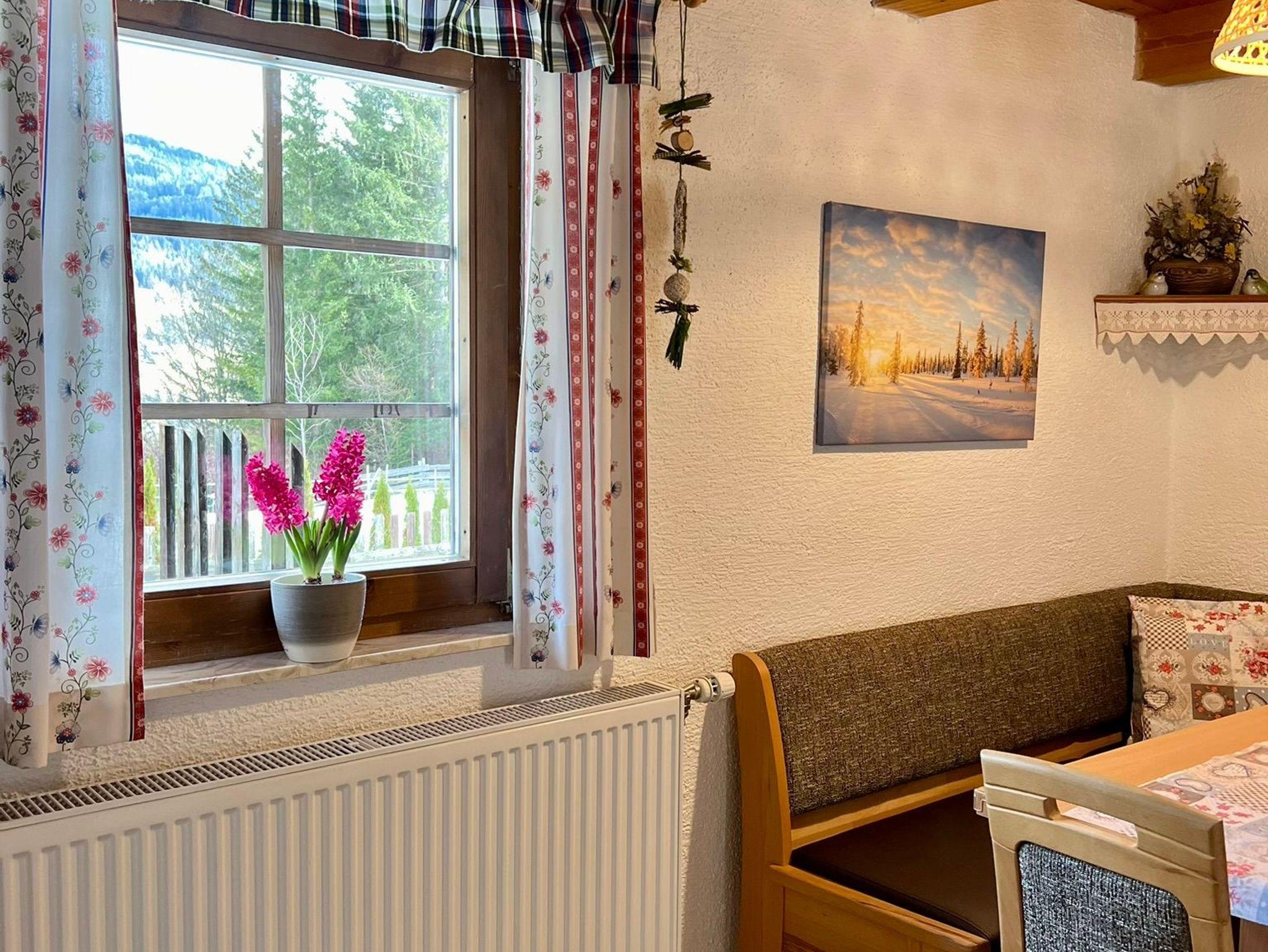 Die rustikale Hütte hat schöne Räume in Erd- und Untergeschoß, eine möblierte Terrasse, Holzkohlegrill, gratis Garage, Kachelofen, gemütlichen Wohn-Essbereich mit schönen Holzmöbeln sowie einem duftendem Zirbenbett und einem Himmelbett, Samsung Sat-TV in jedem Schlafzimmer, Bodenheizung und Zentralheizung sowie eine große barrierefreie Dusche und WLAN im gesamten Gebäude bieten allen Komfort.