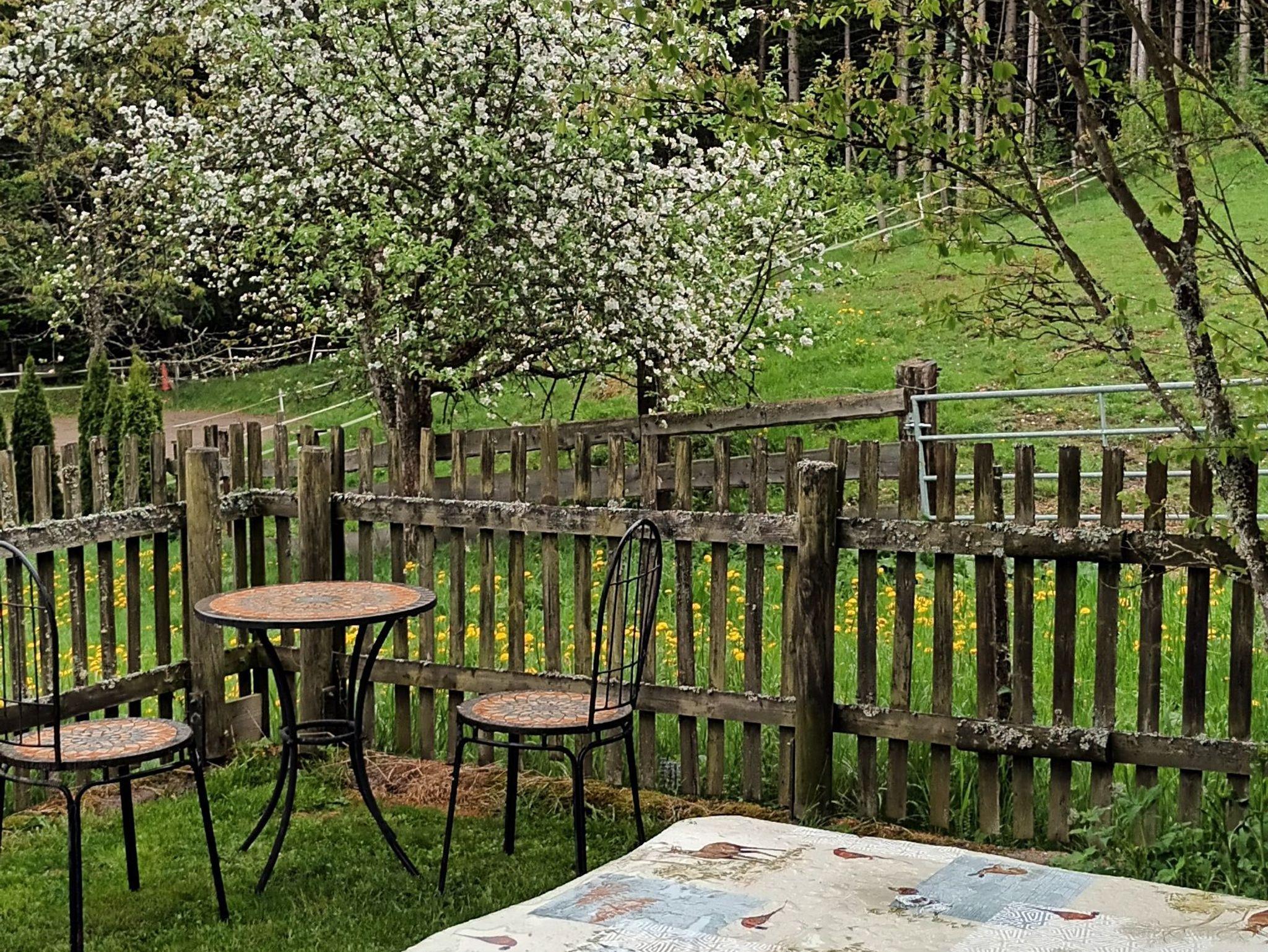Im umzäunten Garten rund um die Hütte laden Bänkchen zum Sonnensitzen ein und ganz nebenbei kann Ihr Hund sich so richtig austoben. Die große Garage ist gratis benutzbar und in der Holzhütte lagert genug Brennholz für lange Grillabende oder Kachelofenfeuer.