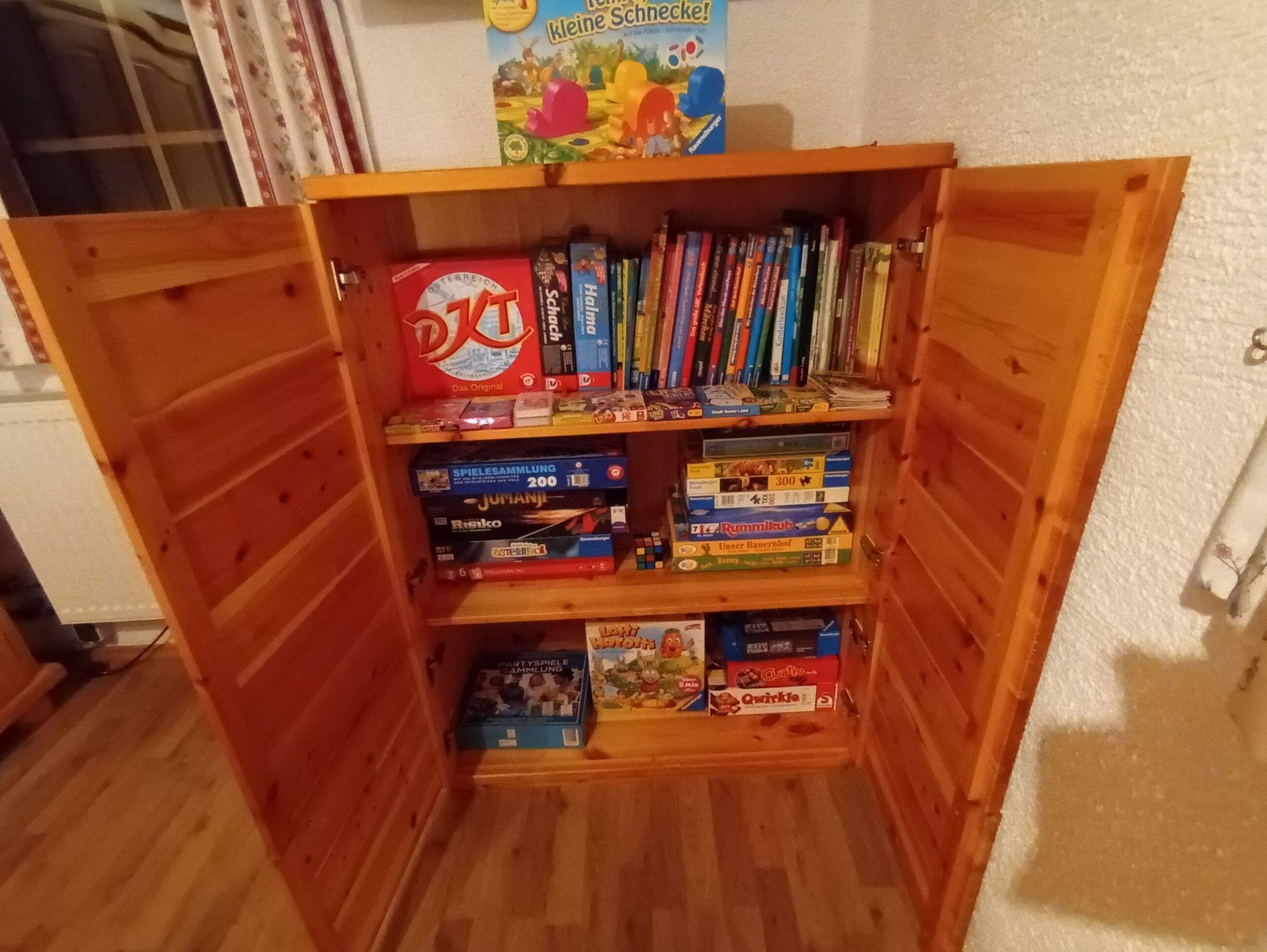 Flur mit schöner Landhauskommode und vielen aktuellen Büchern.