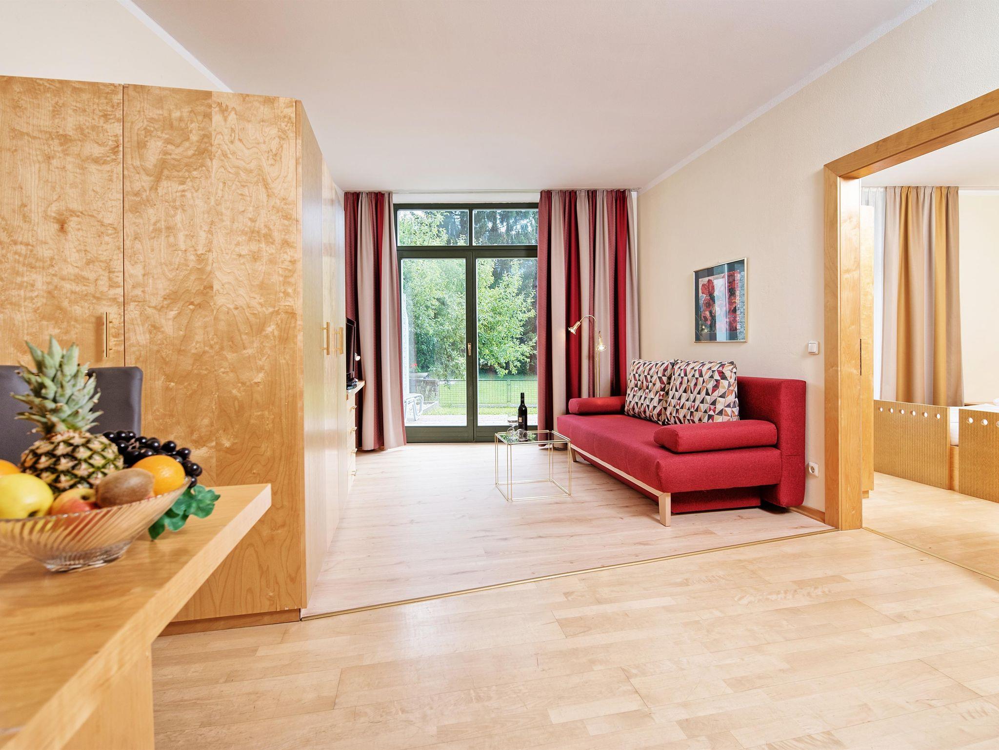 Viel Grün ums Haus! Weitläufige Grünflächen an unserem Hotel bieten die Möglichkeit auf beqemen Gartenliegen der Sonne zu frönen oder sich im kühlen Schatten der Apfelbäume in ein Buch zu vertiefen. Familien mit Kindern wissen die verkehrssichern Spielflächen für Fussball und Volleyball zu schätzen, der Spielplatz und die Tischtennisanlage sind stets gut besuchte Highlights in jedem Kinderurlaub.