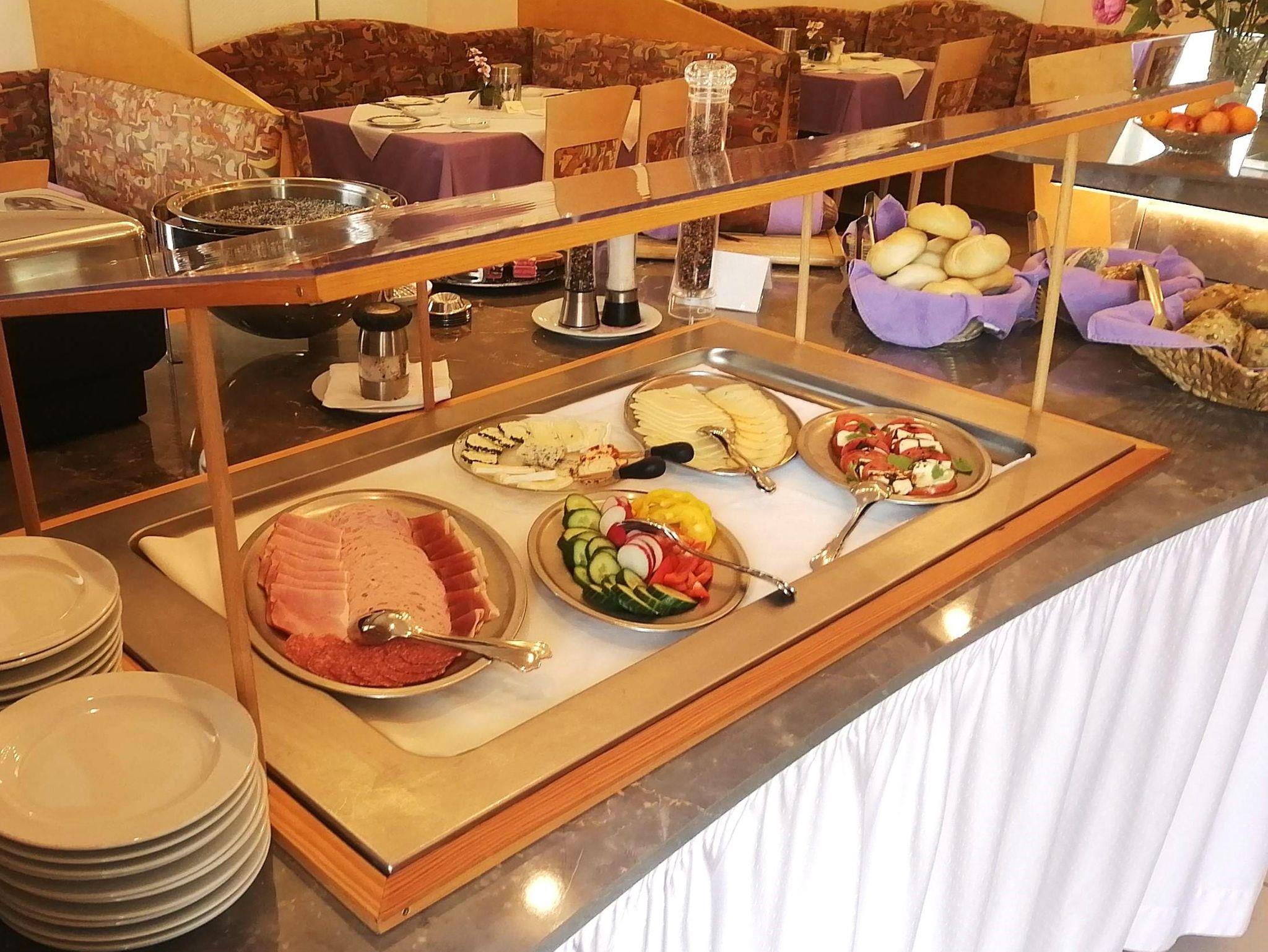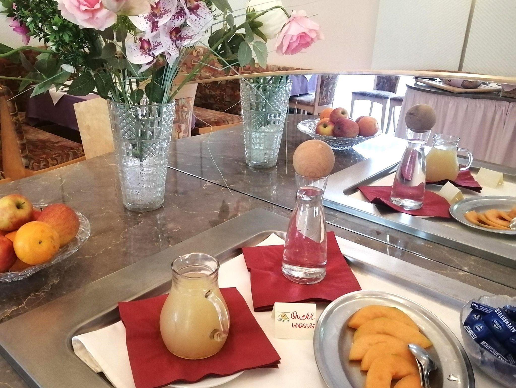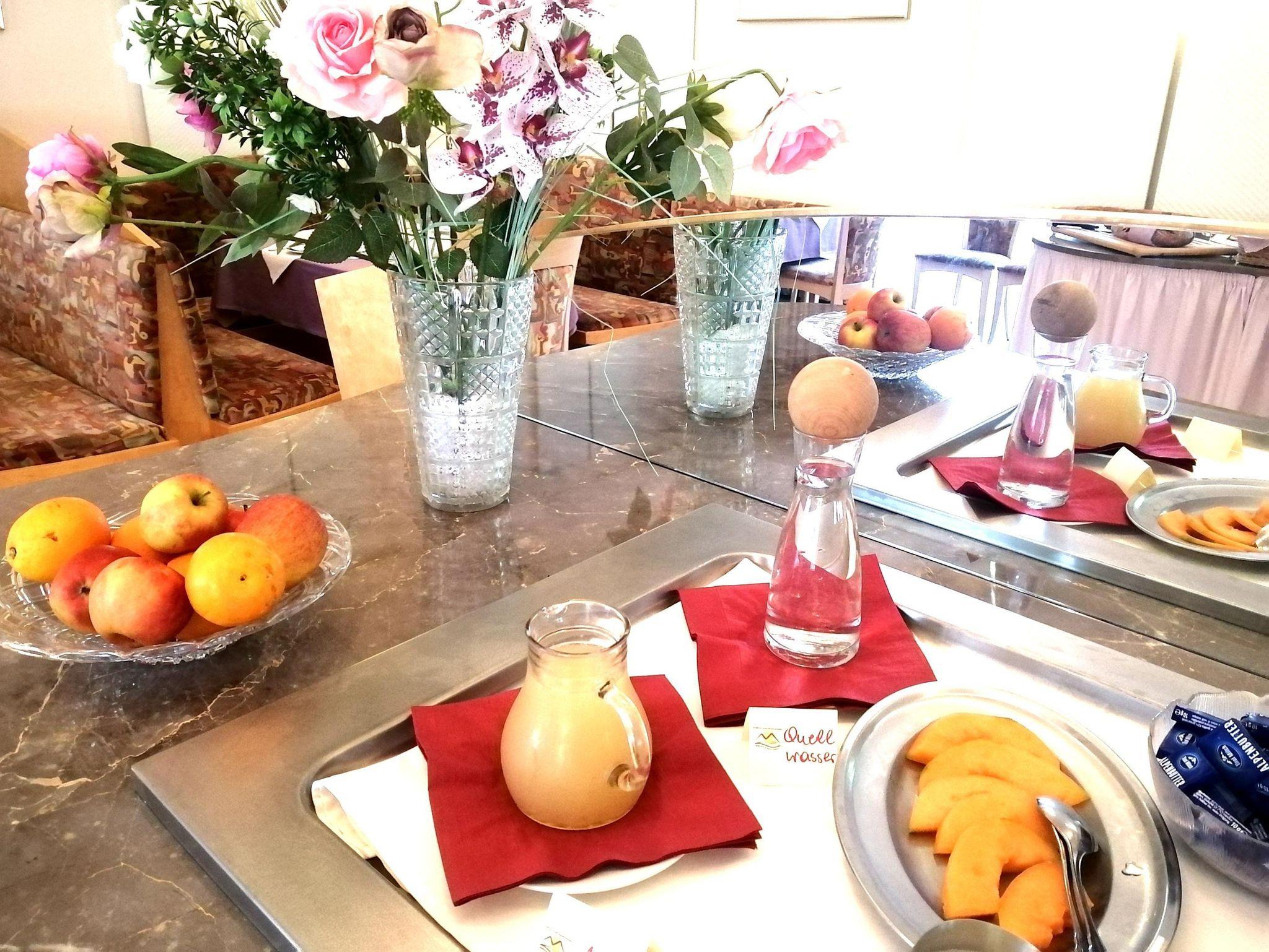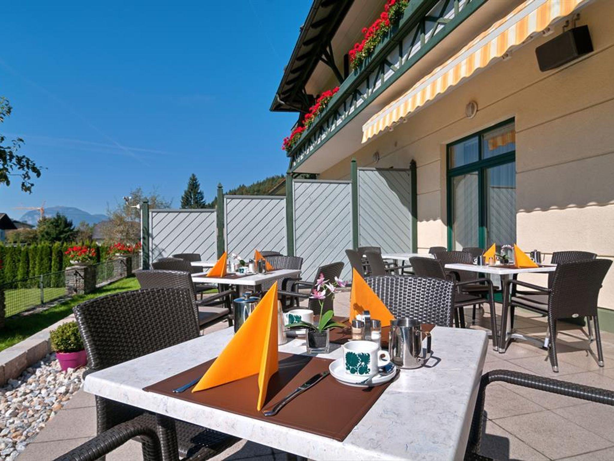 Lassen Sie sich verwöhnen! Unser Frühstücksbuffet lässt keine Wünsche offen. Sie genießen Ihr leckeres Frühstück im Speisesaal oder auf der Sonnenterrasse und sehen dabei zu, wie die Sonne langsam ihren Weg über den Mittagskogel findet. Am Nachmittag und Abend, nach einem aktiven und erlebnisreichen Tag, laden wir auf unserer Terrasse zu Kaffee, Kuchen oder schmackhaften Eiskreationen.