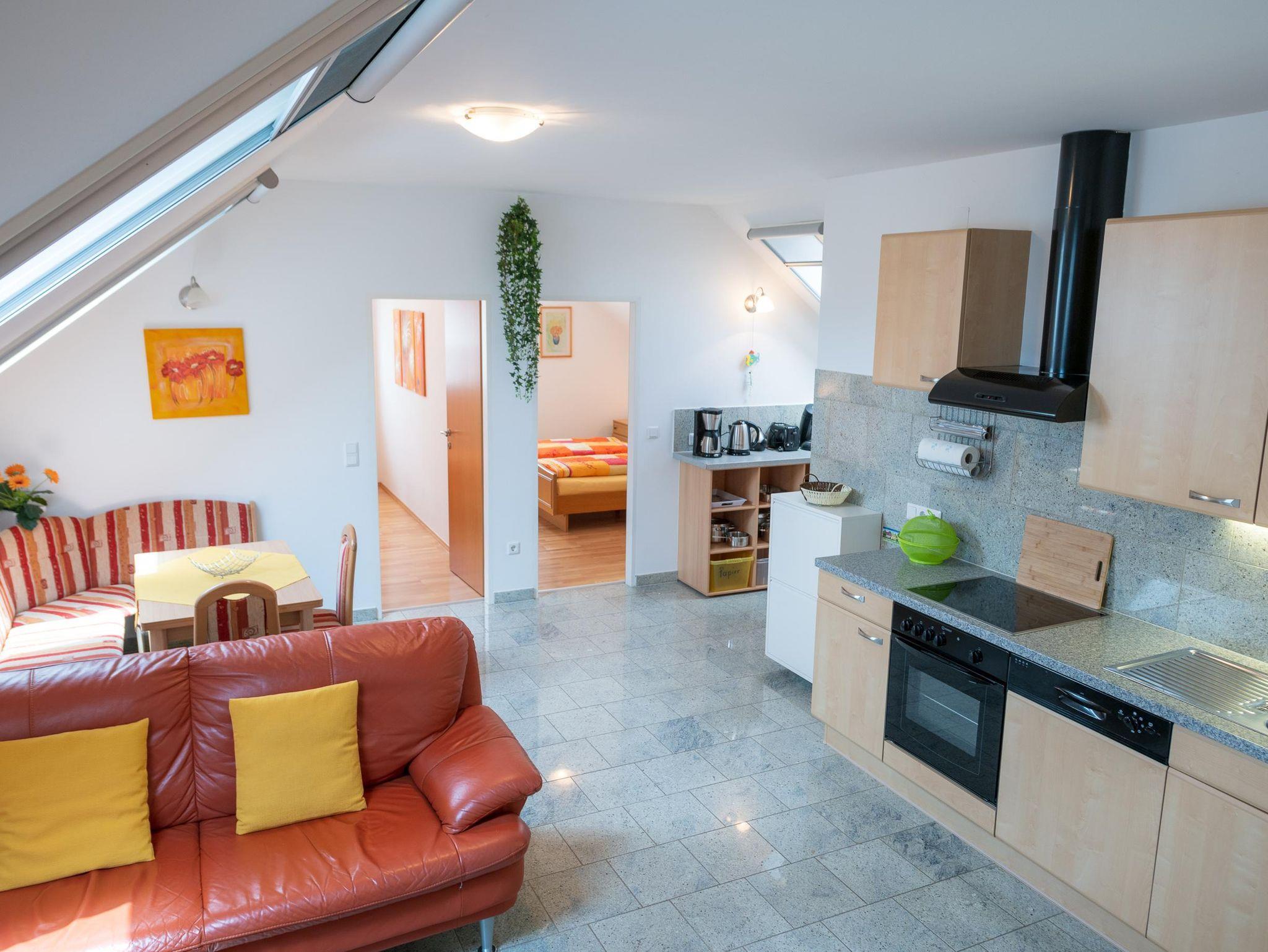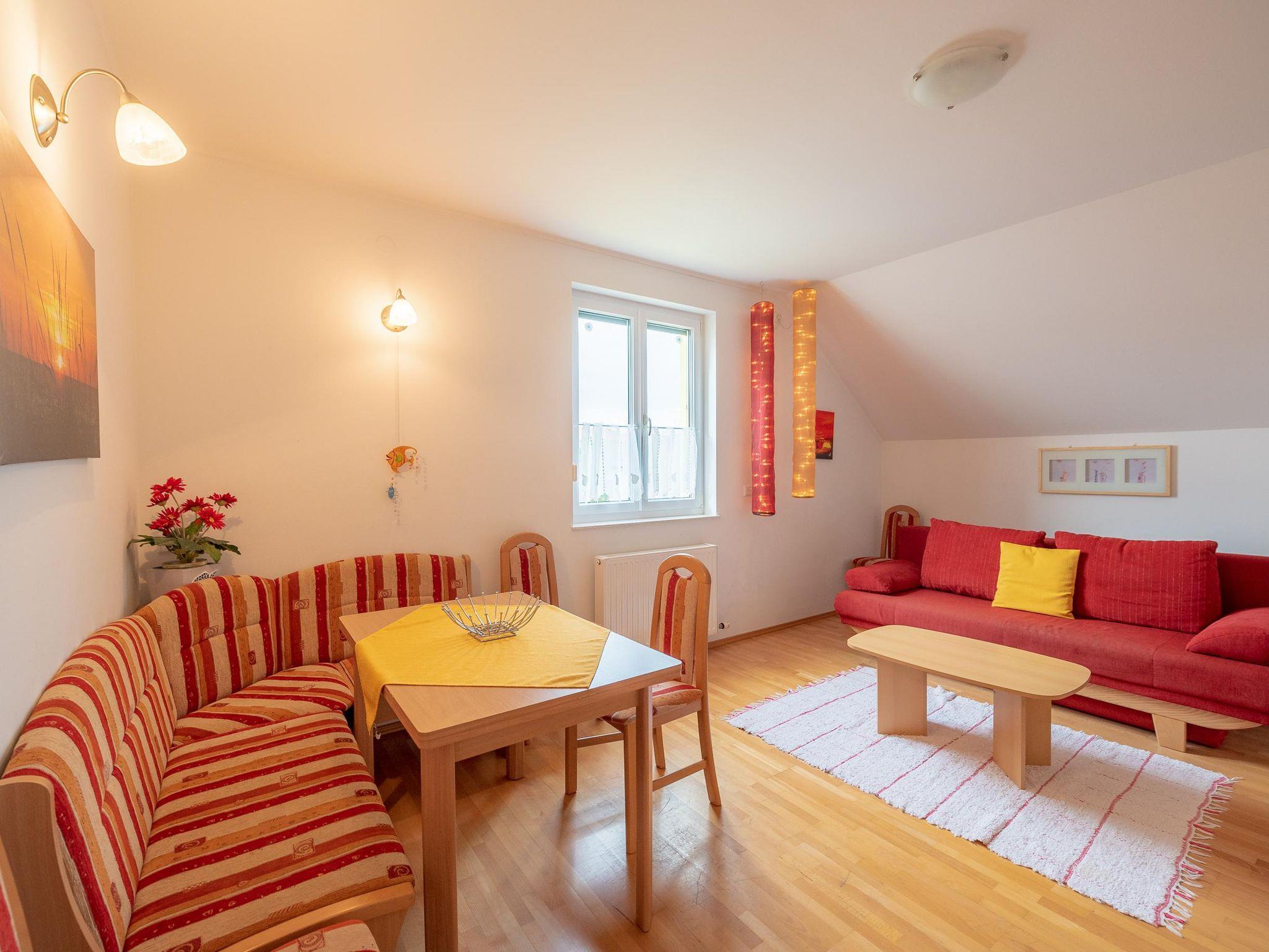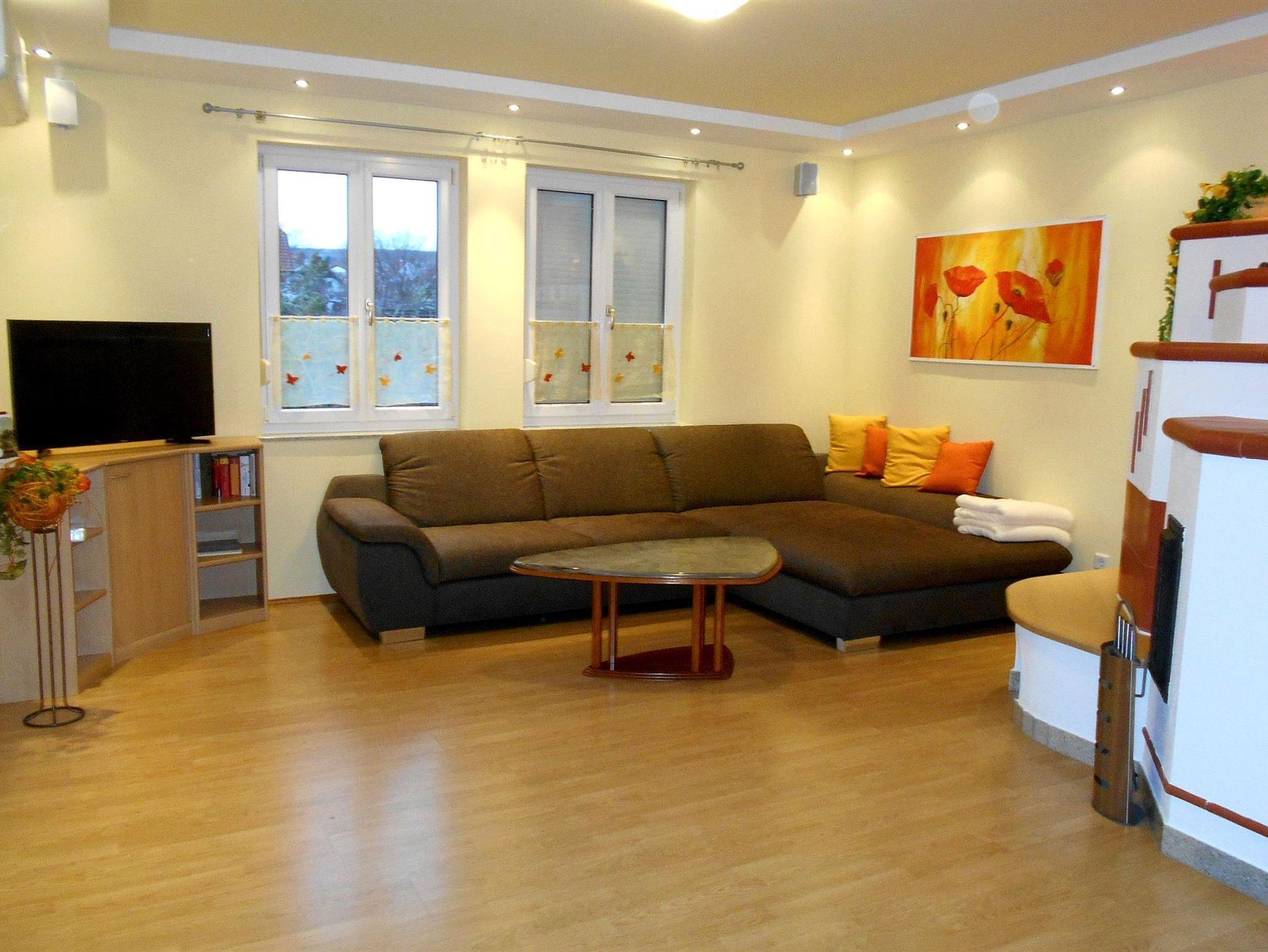 Die Wohnung ist 72 m² groß, hat 1 Schlafzimmer. Das Appartement ist voll ausgestattet: Föhn, Hand- u. Badetücher, Bettwäsche sowie Geschirr, 4-Plattenherd, Geschirrspühler, Gefrierschrank, Kaffeemaschine, sowie eine Kaffeepadmaschine, Toaster, Wasserkocher, Mikrowelle, Kabel-TV und Internetanschluß in der Wohnung, WLAN im ganzen Haus und Garten gratis. Auch Parkplätze stehen gratis zur verfügung