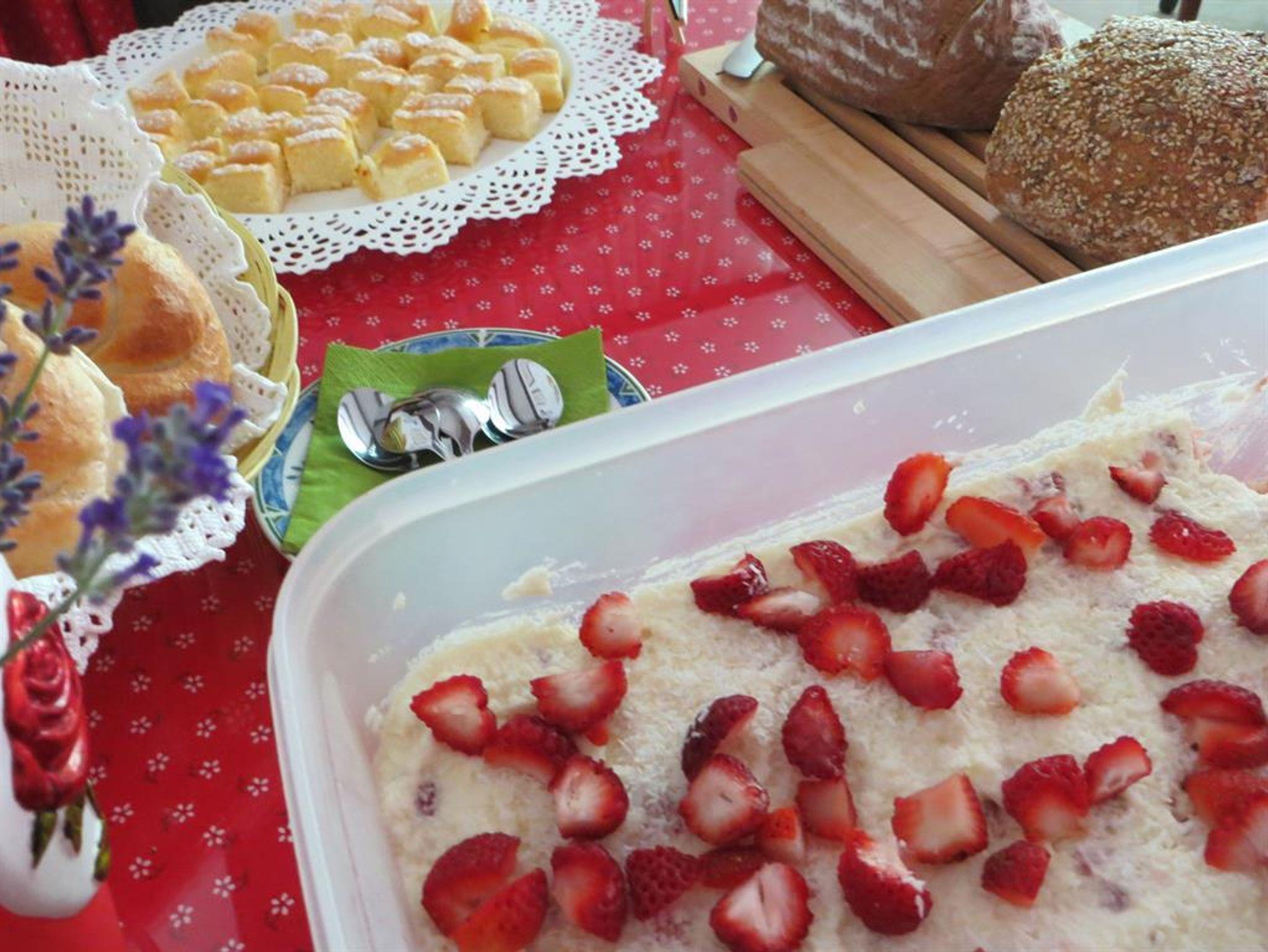 reichlich und gut(selbstgemachte Marmeladen und Kuchen).
