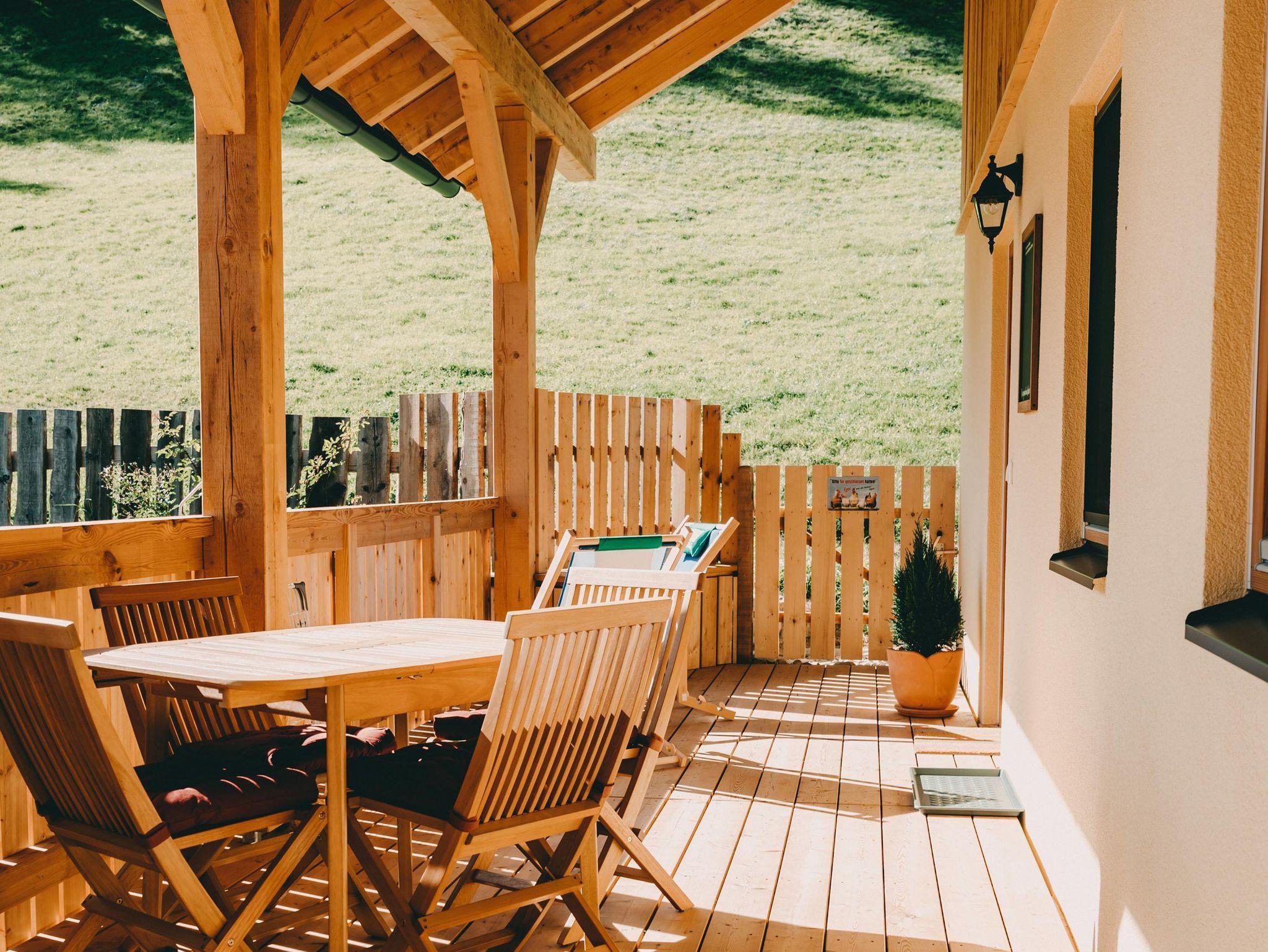 Die Ferienwohnung befindet sich im 2021 neu errichteten Holzgebäude oberhalb des Stalles, angrenzend an die Scheune. Die einzigen Nachbarn sind die Stallbewohner, die Tiere ringsum in der Natur und natürlich die Schotthoffamilie, die im alten Bauernhaus gegenüber wohnt. Schlafen in sanft duftenden Zirbenbetten, gemütliches Beisammensein in der geräumigen Wohnküche mit Holzofen, der Blick auf die weidenden Schafe ringsum oder den Sonnenuntergang auf der Terrasse erleben: ein Urlaub hier bringt Ruhe und Erholung.