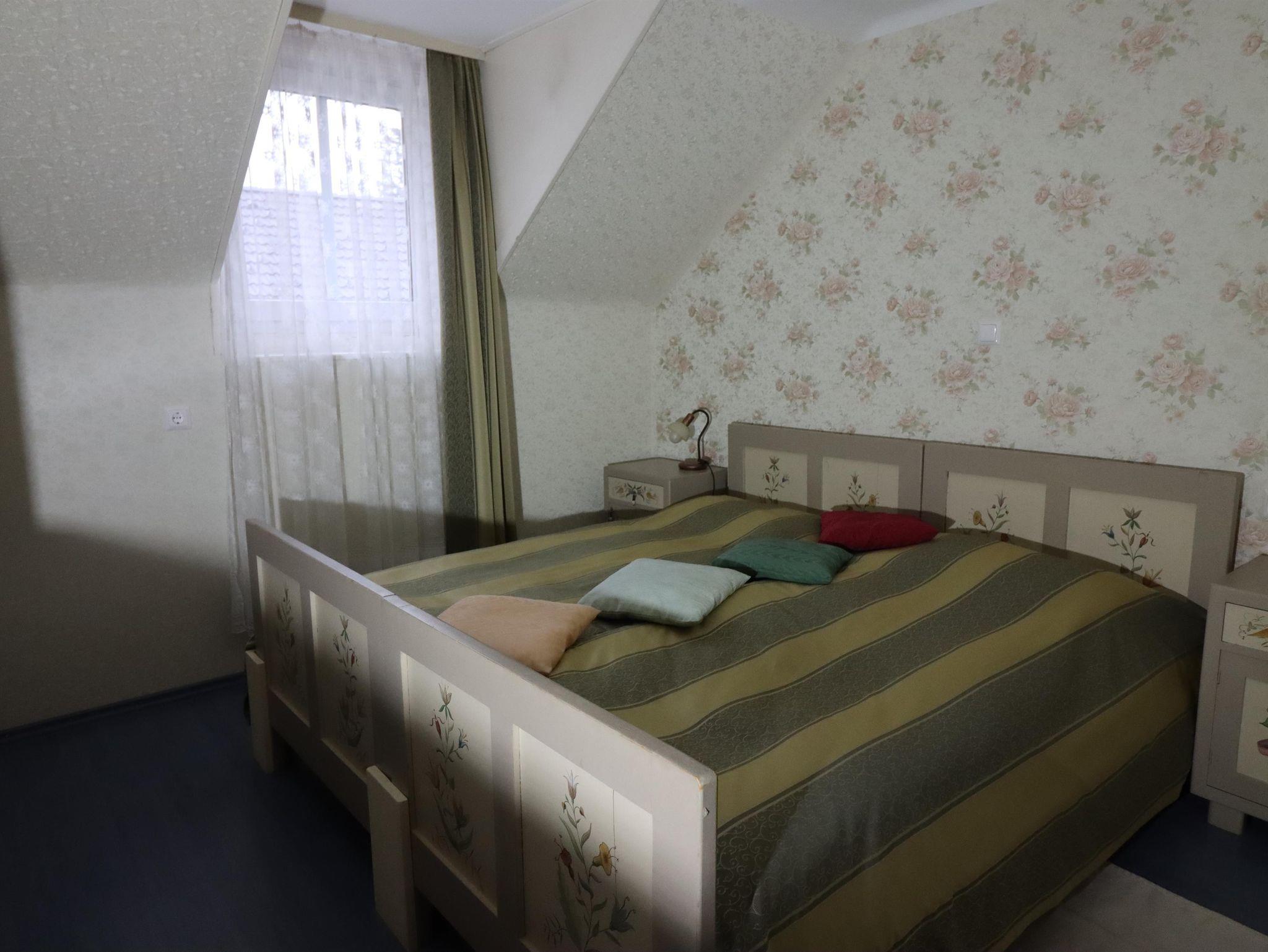 Erdgeschoß: 100 qm, 1 Doppelzimmer, 1 Dreibettzimmer, Küche (Mikrowelle, Geschirrspüler) mit Bar, Wohnzimmer, SAT-TV, CD-/DVD-Player, neues Bad (Dusche,Bidet, WC), separates WC, Waschmaschine, Kaminofen, Tischfußballtisch, WLAN