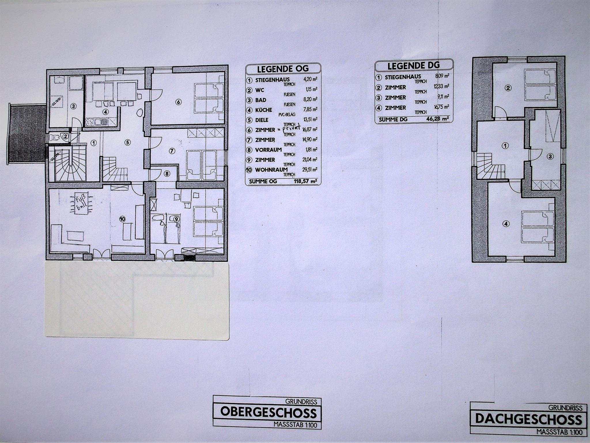 Dachgeschoß: 35 qm, 2 Doppelzimmer