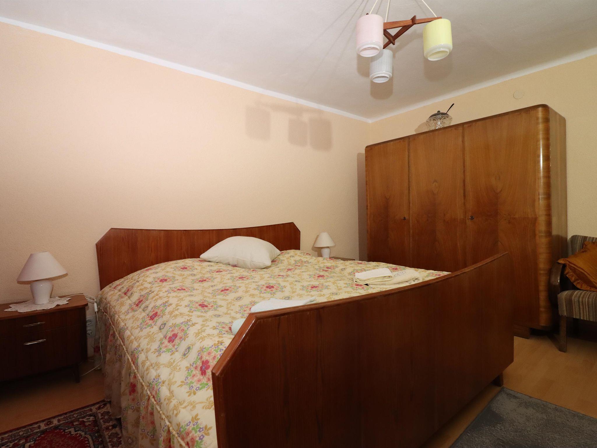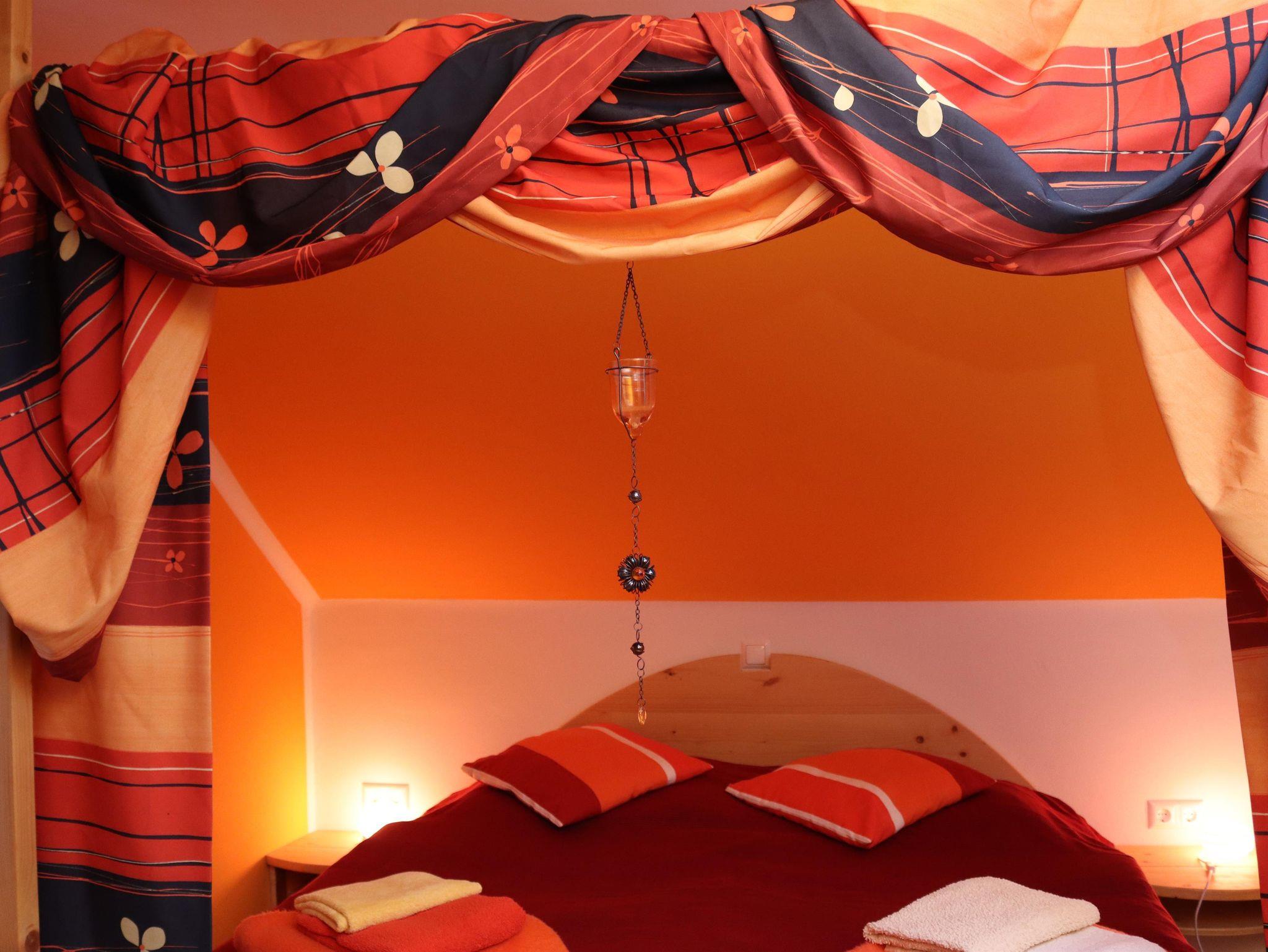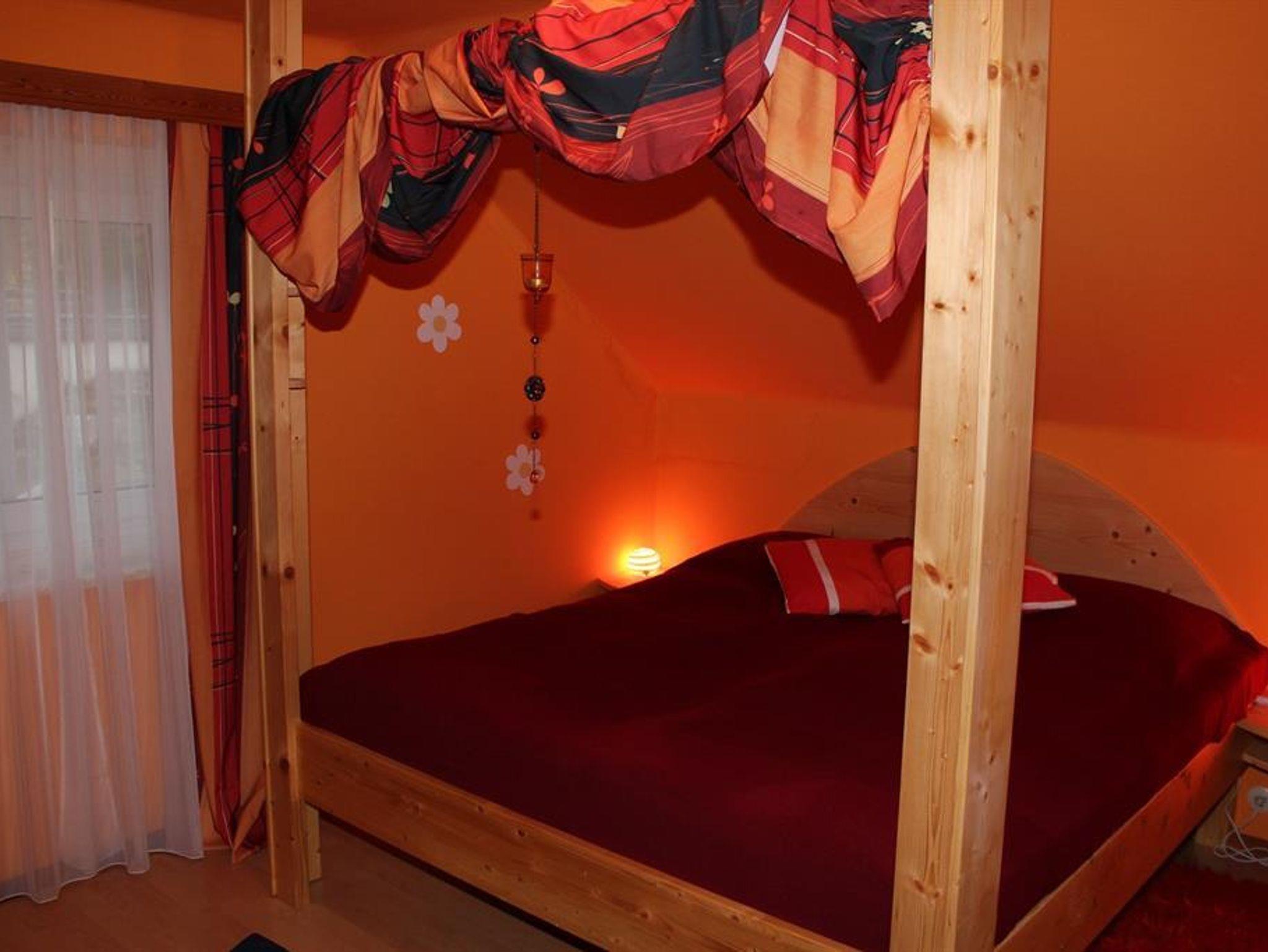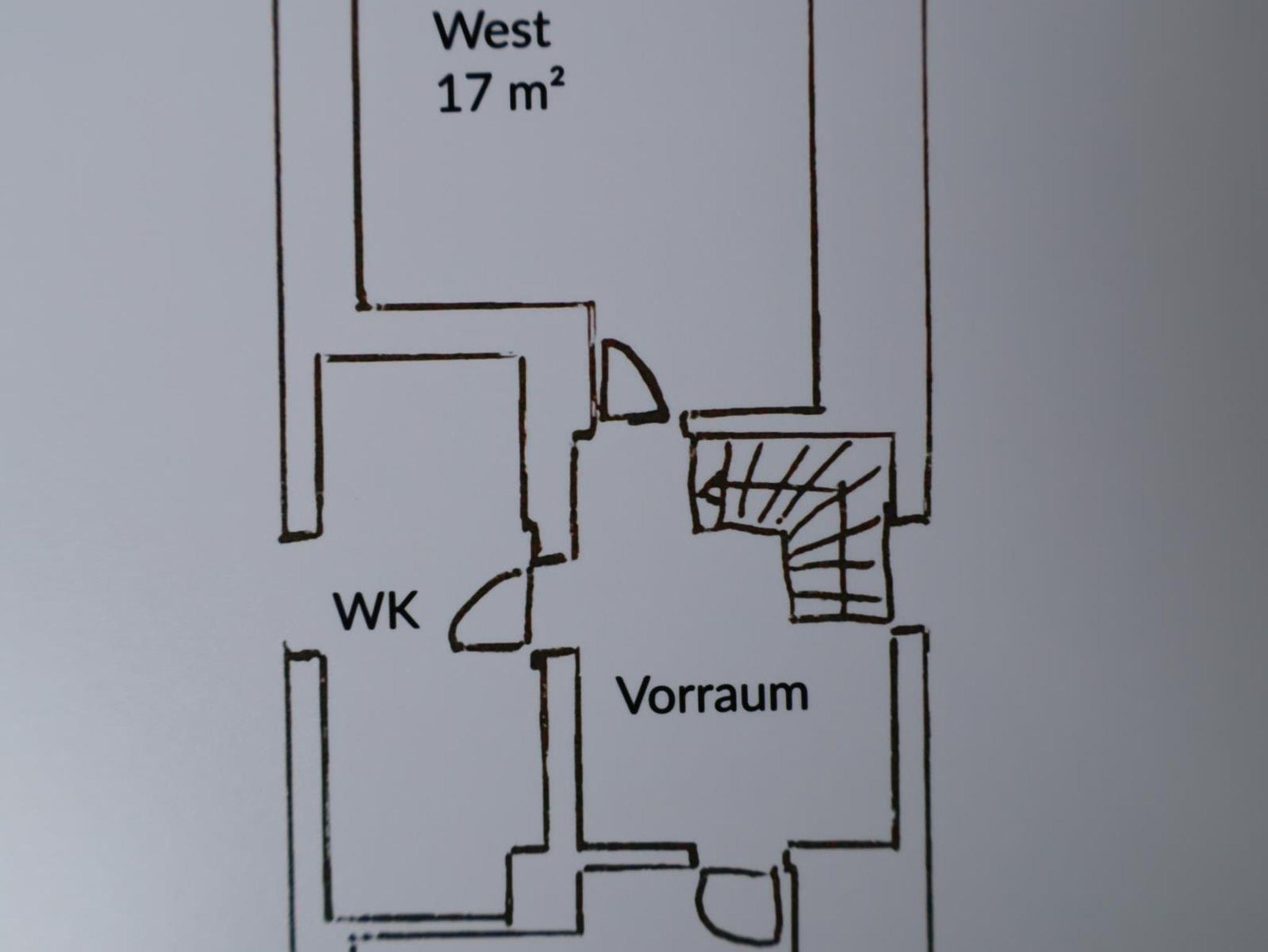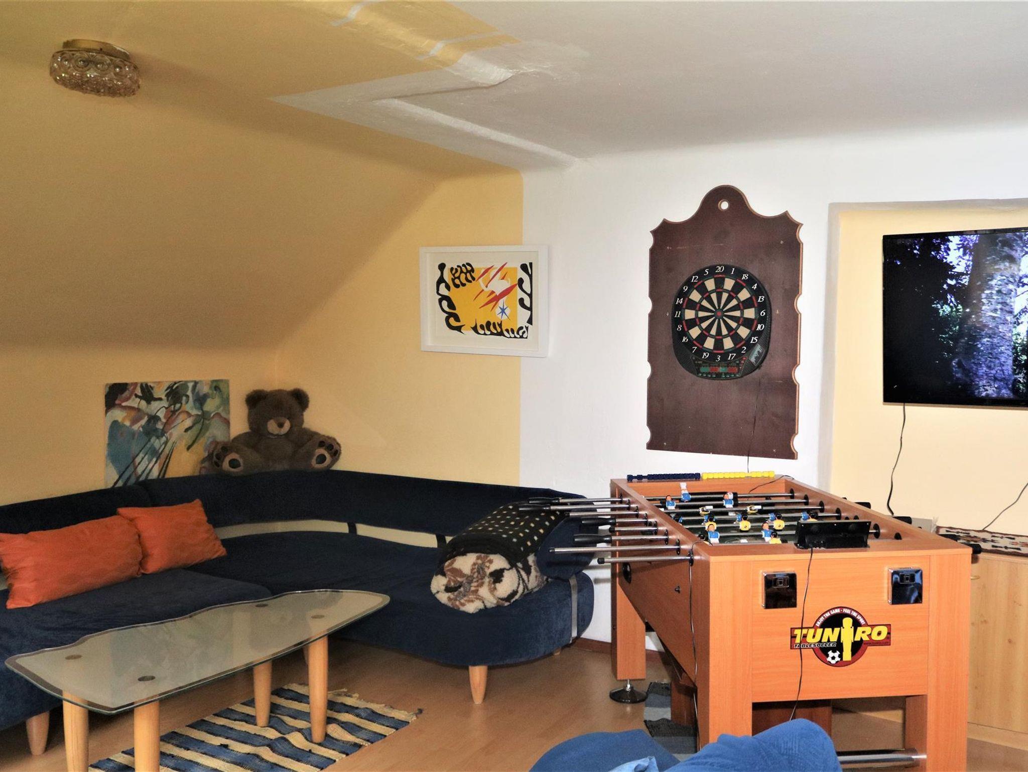 1. Obergeschoß: 100 qm, 2 Doppelzimmer, 1 Dreibettzimmer, Küche (Mikrowelle, Geschirrspüler, Esstisch für 14 Personen), großes Wohnzimmer, Tischfußballtisch, SAT-TV, CD-/DVD-Player, Bad (Dusche, WC), separates WC, Kaminofen, WLAN