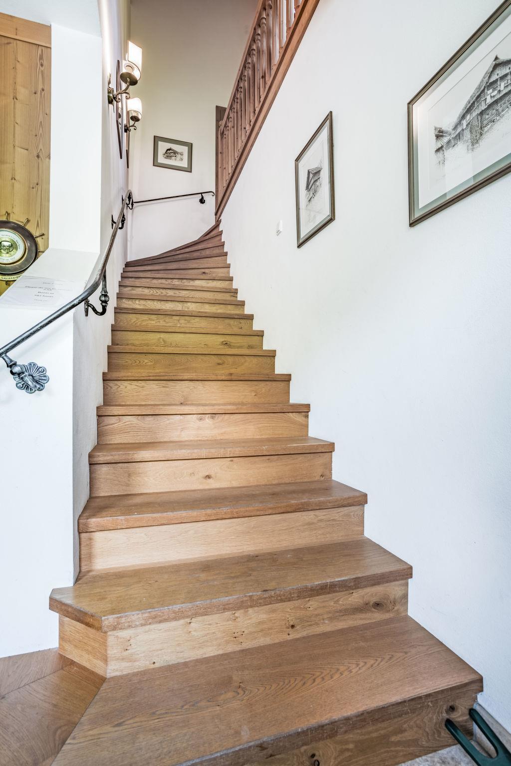 "Orleans 1", 5-room apartment 147 m2 on 1st floor. Spacious and bright, very comfortable and tasteful furnishings: entrance hall. On the lower ground floor: shower, sep. WC, Sauna. Upper floor: open large living/dining room with Scandinavian wood stove, dining nook, satellite TV, international TV channels and flat screen. Exit to the balcony. 2 double bedrooms, each room with shower/WC. Exit to the balcony. 1 double bedroom with bath/shower/WC. Exit to the balcony. 1 room with 2 x 2 bunk beds. Large kitchen-/living room (oven, dishwasher, 4 ceramic glass hob hotplates, toaster, kettle, microwave, freezer, electric coffee machine). Parquet floors, natural stone floors. Comfortable furnishings in the country house style. Large balcony. Balcony furniture. Very beautiful panoramic view of the mountains and the countryside. Facilities: iron, children's high chair, baby cot for up to 2 year olds, hair dryer. Internet (WiFi, free). Please note: non-smoking house. Smoke alarm, fire extinguisher. The double beds are "king size beds. 50612-000971-2020