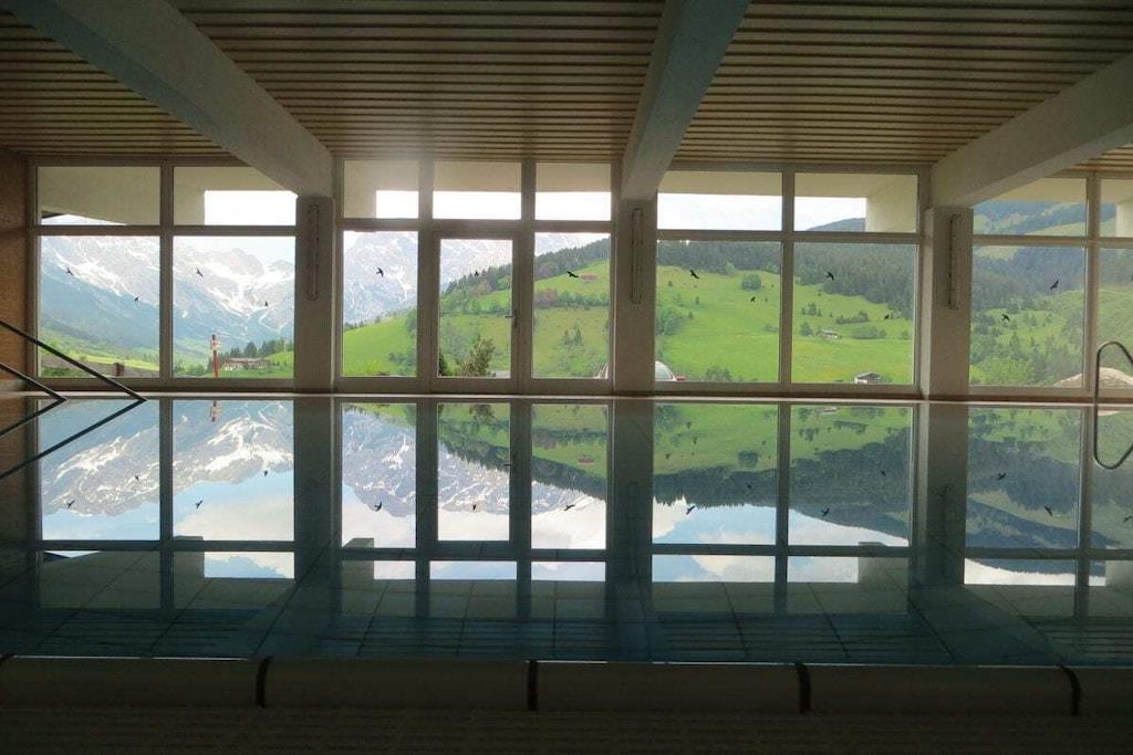 Enjoy the stunning view of the Steinernes Meer (Steinernes Meer) and relax in the on-site indoor pool after a strenuous skiing or hiking tour. The apartment was completely renovated in 2015. Equipped with parquet flooring, new furniture, and a modern bathroom, it offers a comfortable atmosphere. The apartment is divided into a large living/dining area with a separate sleeping alcove, hallway, kitchen, and bathroom. The sleeping alcove has two single beds. The living area also features a new, high-quality sofa bed (160 x 200 cm). Flat-screen TV, DVD, CD player, free Wi-Fi! Parking, elevator, ski storage, and table tennis, as well as an on-site washing machine and dryer. Delivery service for fresh bread and pastries daily during the season.