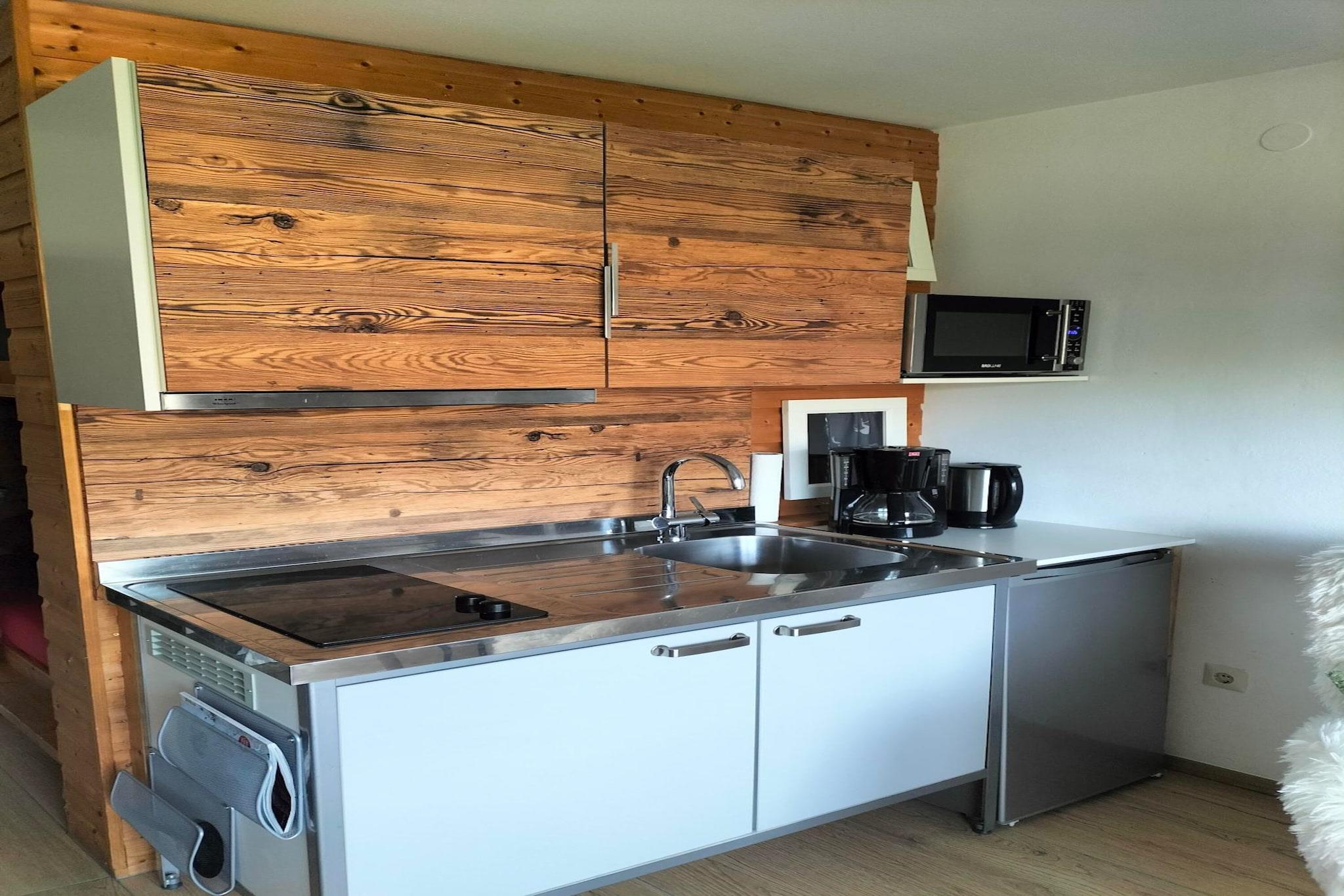 This apartment for a maximum of 4 people is located in an apartment complex right in the center of Maria Alm in Salzburgerland and offers direct access to the Hochkönig ski region. The apartment is on the third floor and offers a cozy kitchen-living room with open kitchen and seating, a seleepingcorner with loft bed and bunk bed, a spacious bathroom and a balcony. The apartment complex also has a ski storage room. Parking is available directly at the apartment complex. The balcony offers a wonderful view of the surrounding mountains and the village and the ski slopes are almost next to the apartment complex. The apartment complex is located in the middle of the Hochkönig ski region, which is part of the Ski Amade ski area. Against the backdrop of the Hochkönig, this ski area between the three towns of Maria Alm, Dienten and Mühlbach offers up to 120 spacious and wide kilometers of slopes, 3 fun parks and 34 lifts. The ski slopes can be reached on foot from the apartment complex. In summer, the Sommerstein adventure pool at the eastern end of Maria Alm, the Obsmarkt adventure pool in Saalfelden or the Zeller lido in Zell am See offer lots of bathing fun! The idyllic town of Maria Alm is a sports paradise and place of pilgrimage in the middle of the Salzburg mountains and offers many other leisure and activity options. You will find several restaurants, shops and the tourist office right in the town center. The state capital of Salzburg can be reached in about 1.5 hours by car. Please note: Arrival should be between 4 p.m. and 6 p.m. For arrivals after 6 p.m. there is a fee of EURO10.00 per hour. Arrivals after 8 p.m. are no longer possible.