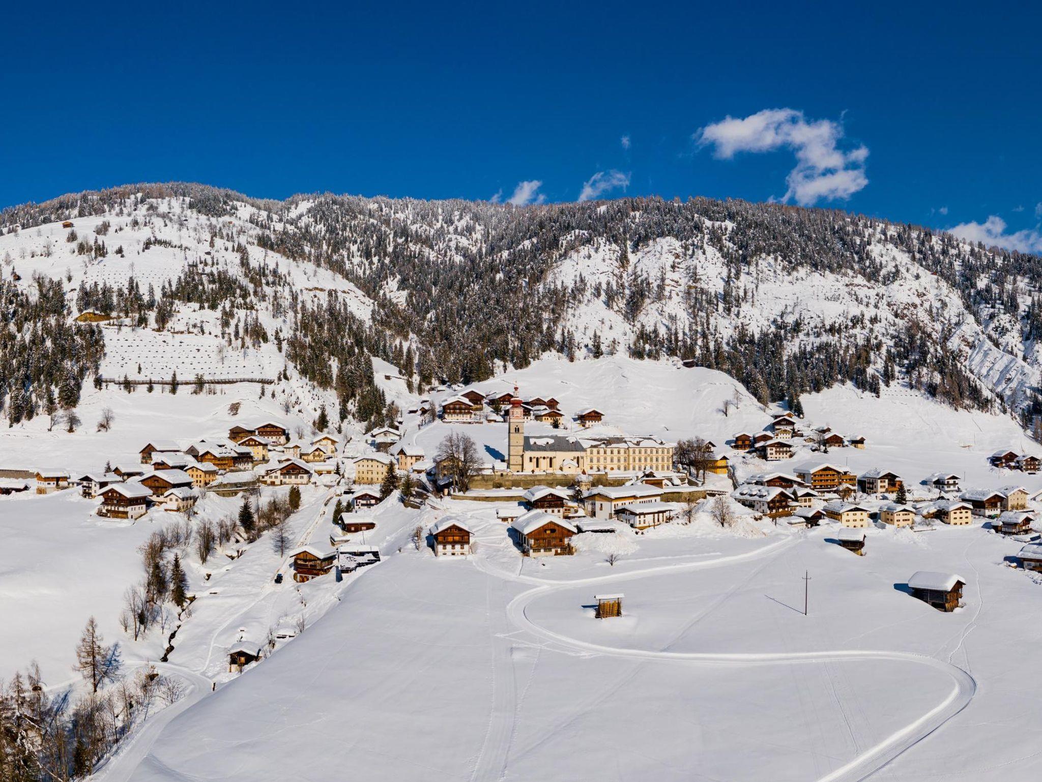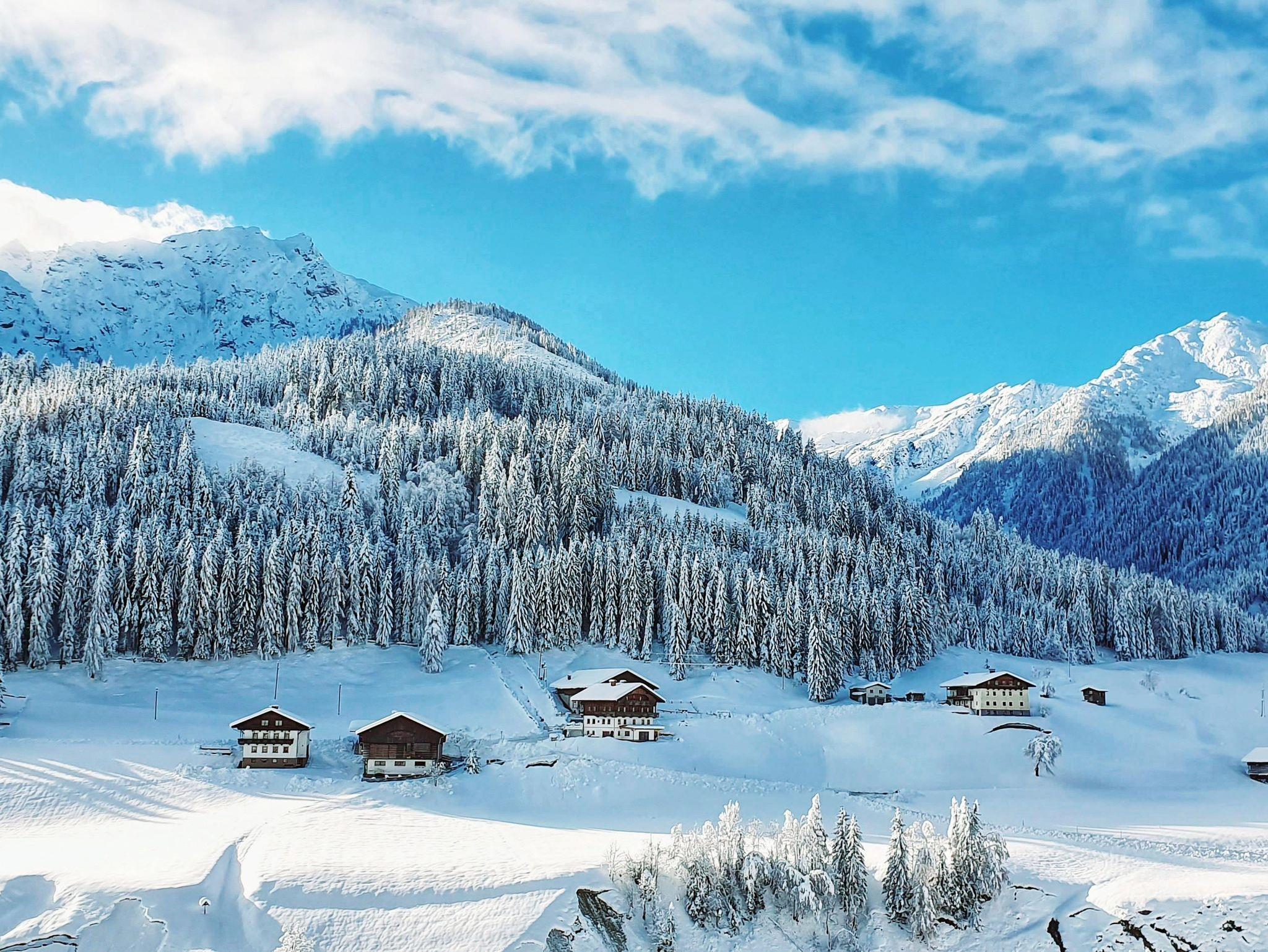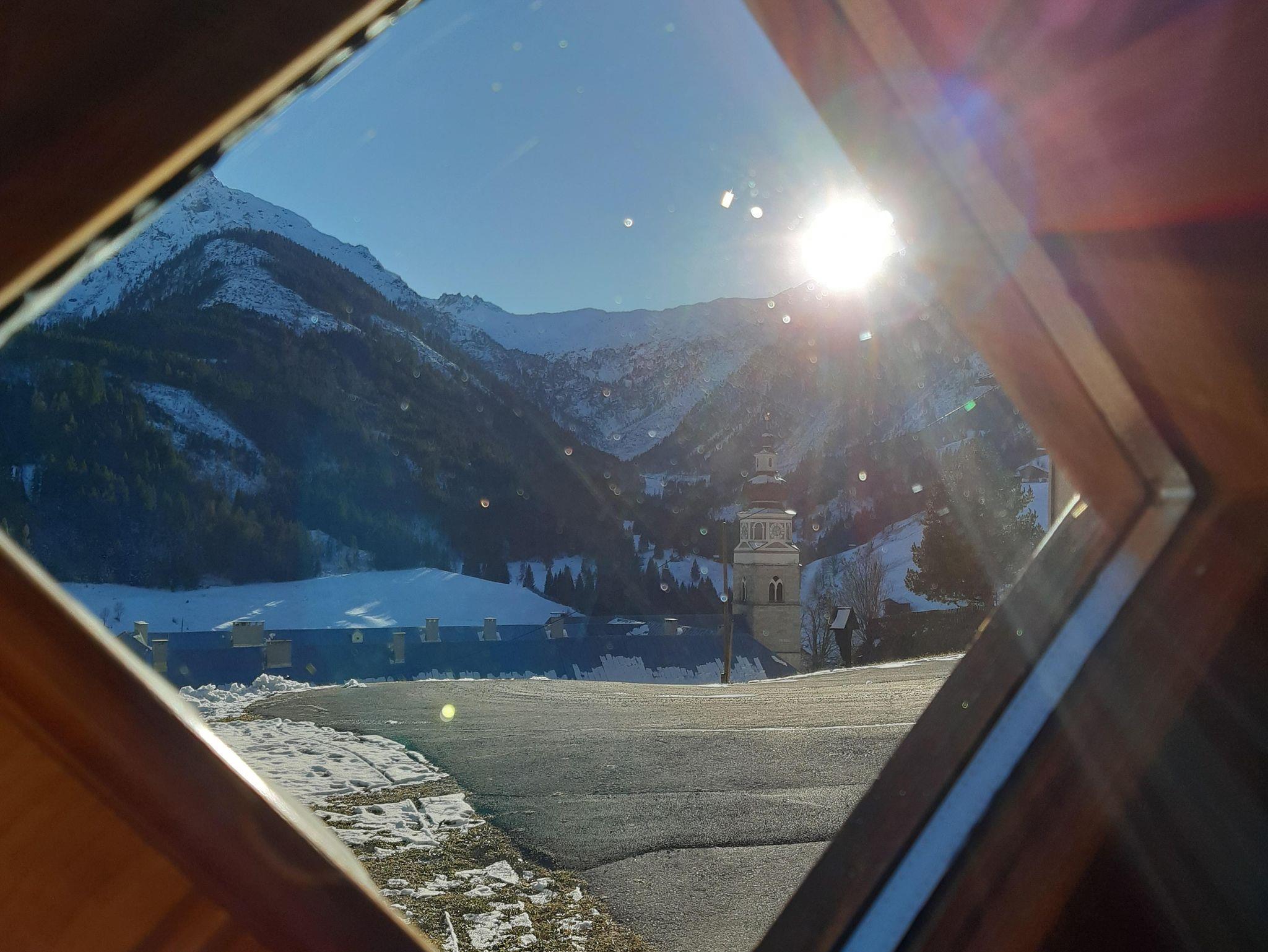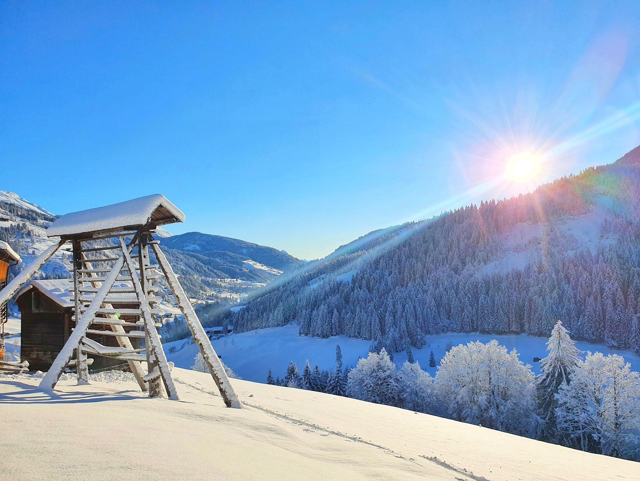 Genießen Sie die schneebedeckte Landschaft des Lesachtales. Unser Haus liegt etwas oberhalb vom Dorfzentrum und Sie haben eine wundervolle Übersicht über das Tal, in die mit Schnee bedeckten Karnischen Alpen und auf den blauen Himmel. In wenigen Schritten sind Sie im Ort, im kleinen Geschäft oder an der Bushaltestelle. Unser Haus fügt sich harmonisch in das Landschaftsbild des Naturbelassensten Tales Europas ein. Holz ist das gestaltgebende Material unseres Hauses, innen wie außen.