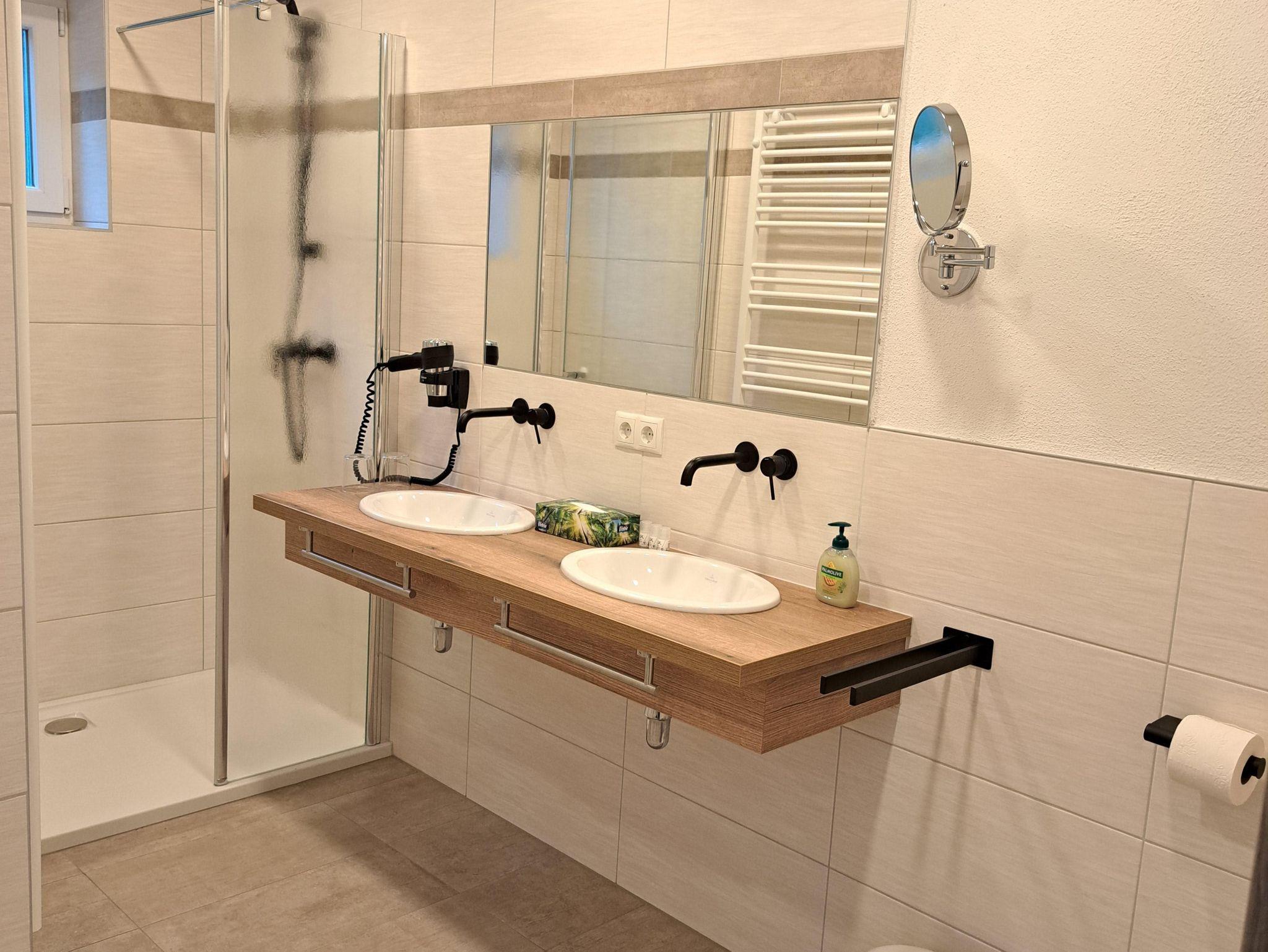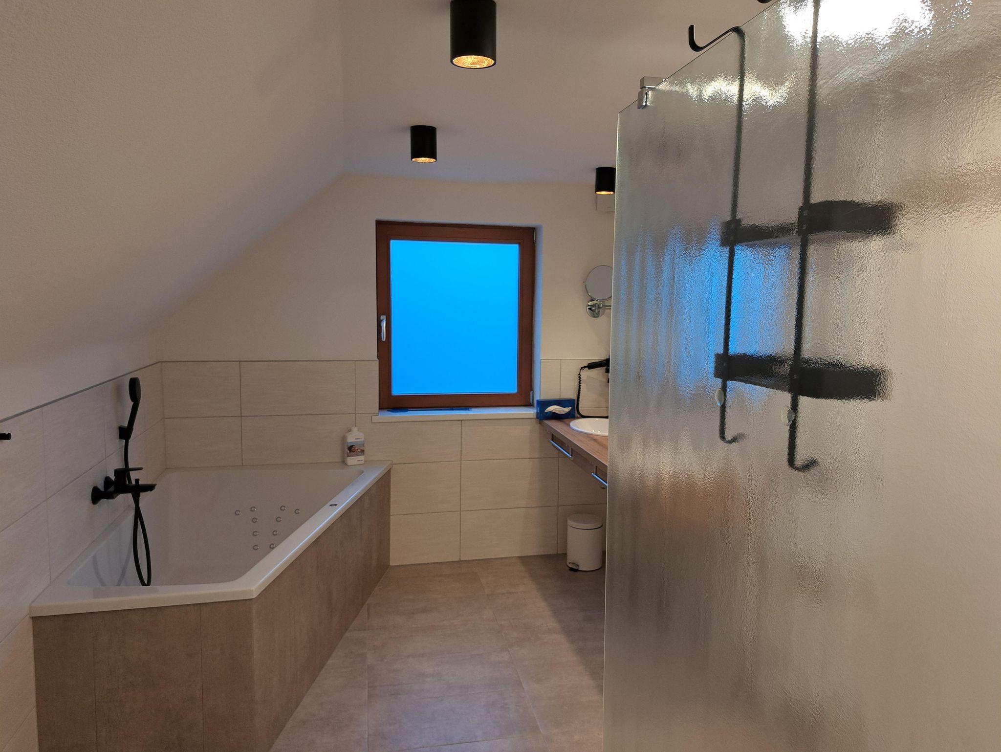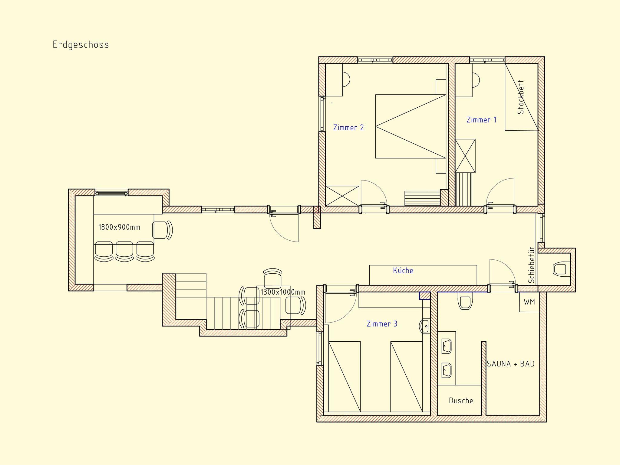 Auf einer Fläche von 186 m² bietet das Landhaus Platz für insgesamt 14 Personen und ist ausgestattet mit 6 Doppelzimmern (Doppel- und Einzelbetten, Stockbett und Schlafsofas), einer Küche, Essbereich, 3 WC, 3 Duschen, Whirlwanne und ab Herbst 2023 einer Sauna für 4 Personen. Die 30 m² große, überdachte Terrasse mit Grillstation lädt zum Wohlfühlen und Entspannen ein.