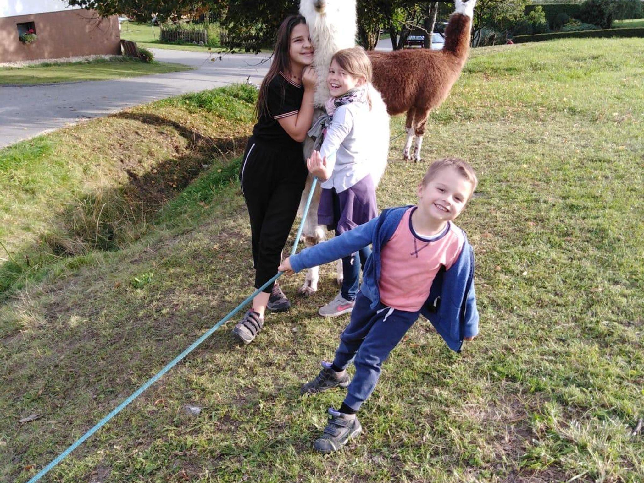 Unsere Gäste lieben unsere Tiervielfalt, Alpakas, Katzen, Hunde, Kälber, Milchkühe.... Über Mithilfe im Stall freuen wir uns immer! Die Tiere genießen die Streicheleinheiten. Am Bauernhof gibt es viel zu tun. Die Kühe wollen gemolken werden, die Hühner wollen gefüttert werden, die Kälber wollen ihre Milch trinken und überall kann mitgeholfen werden. Unser Haus liegt in verkehrsarmer Lage und man kann sich frei und sicher bewegen.